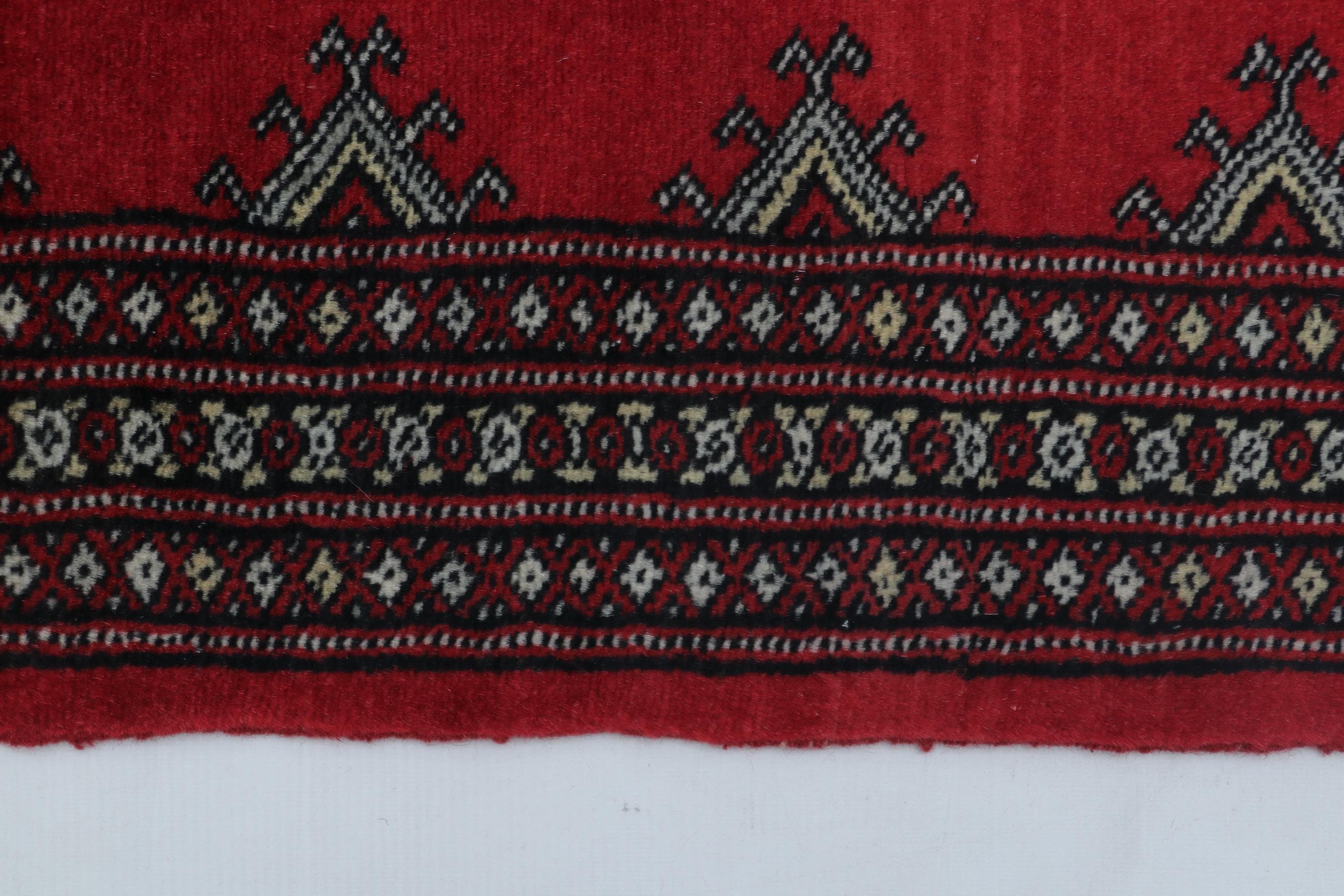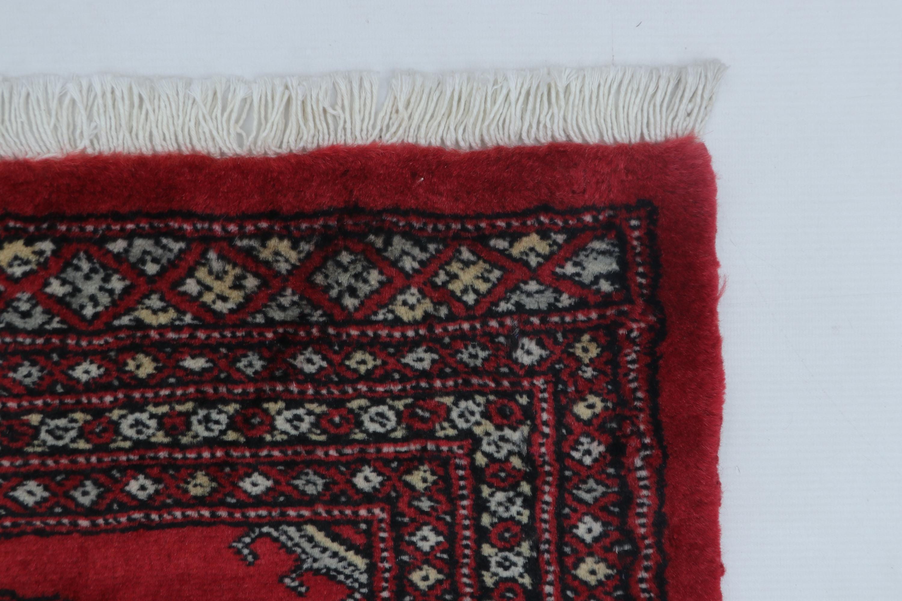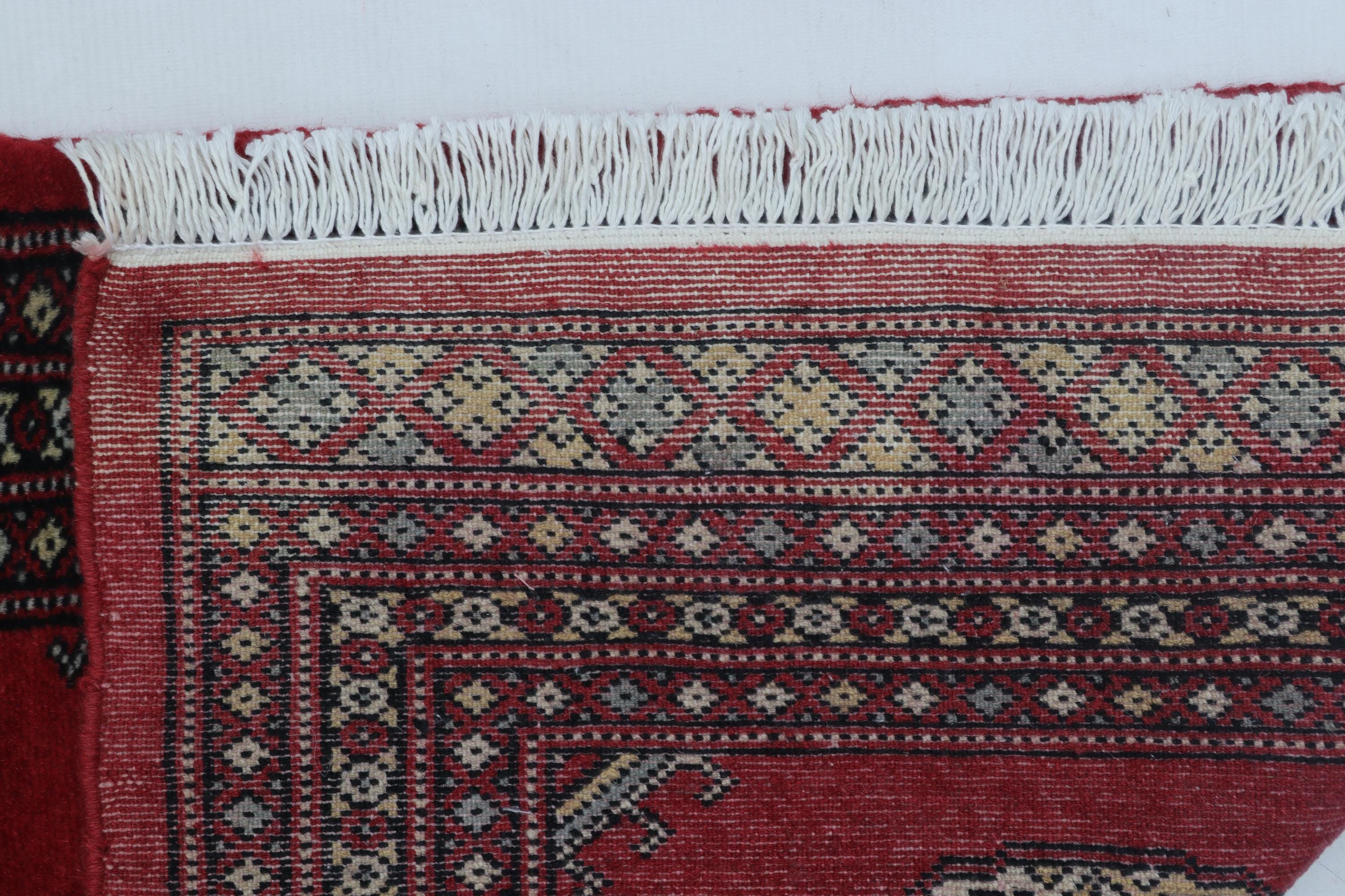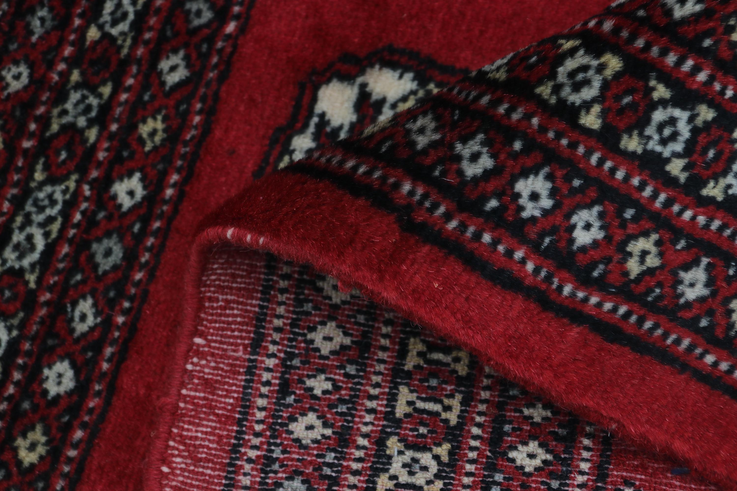2.1 X 3.2 ft Red Geomatrical Handmade ,Mori Bokhara Cotton and Wool
