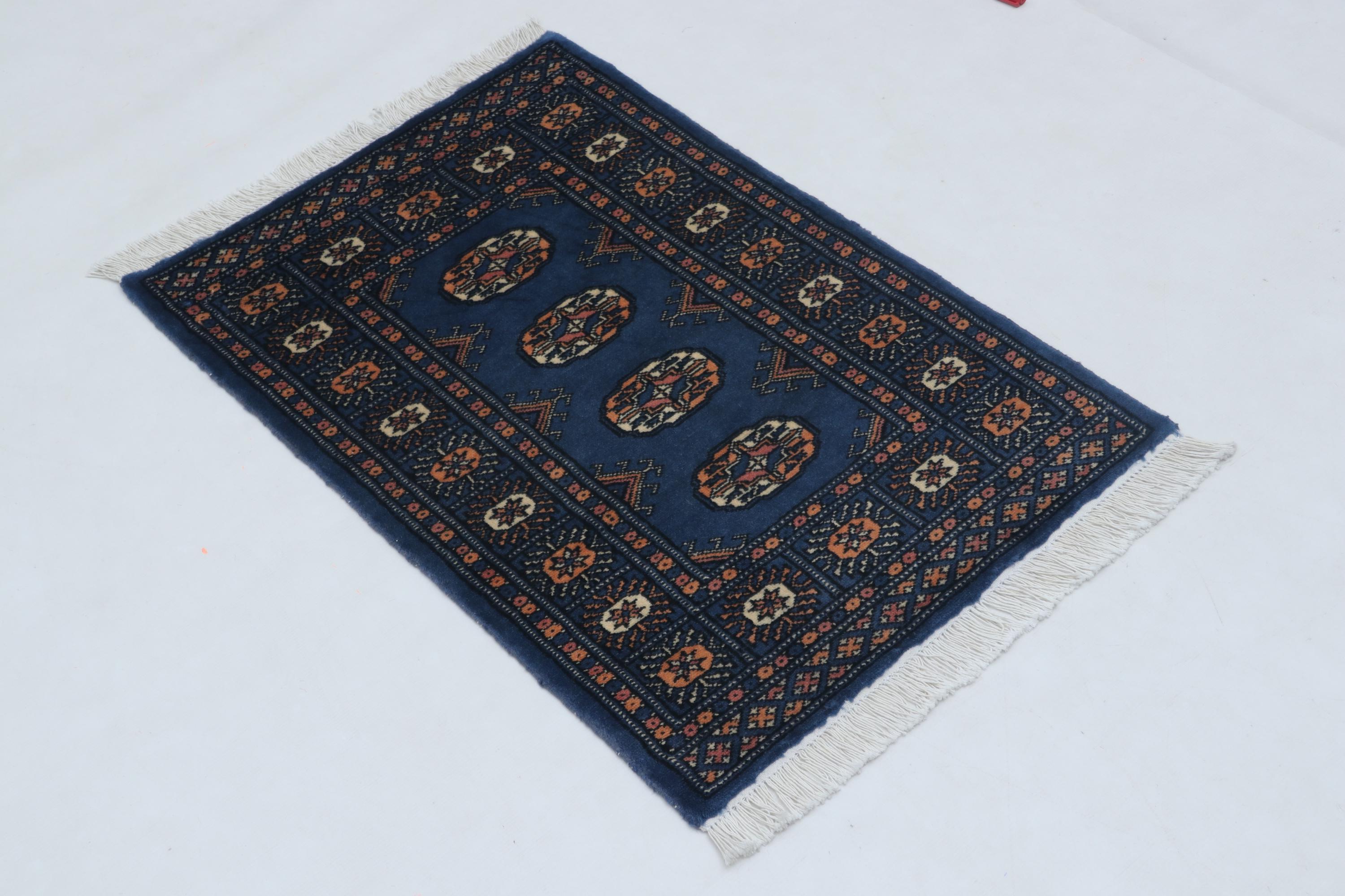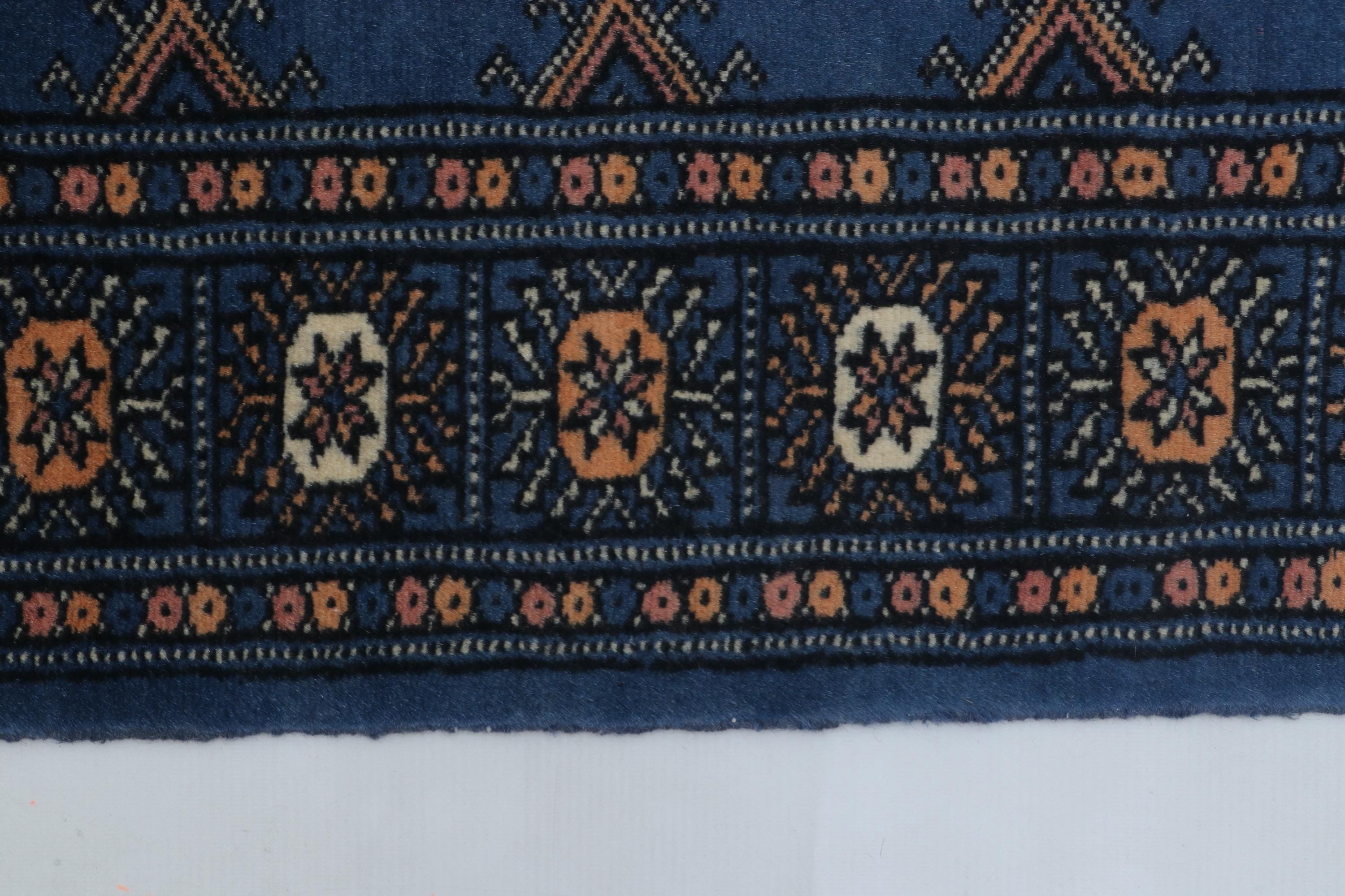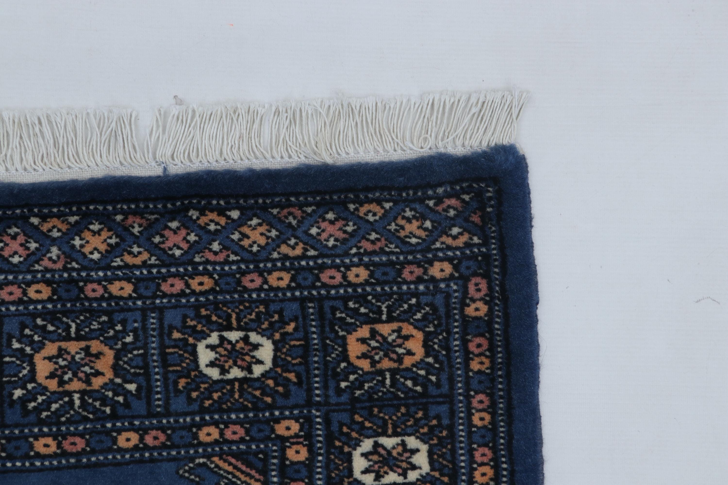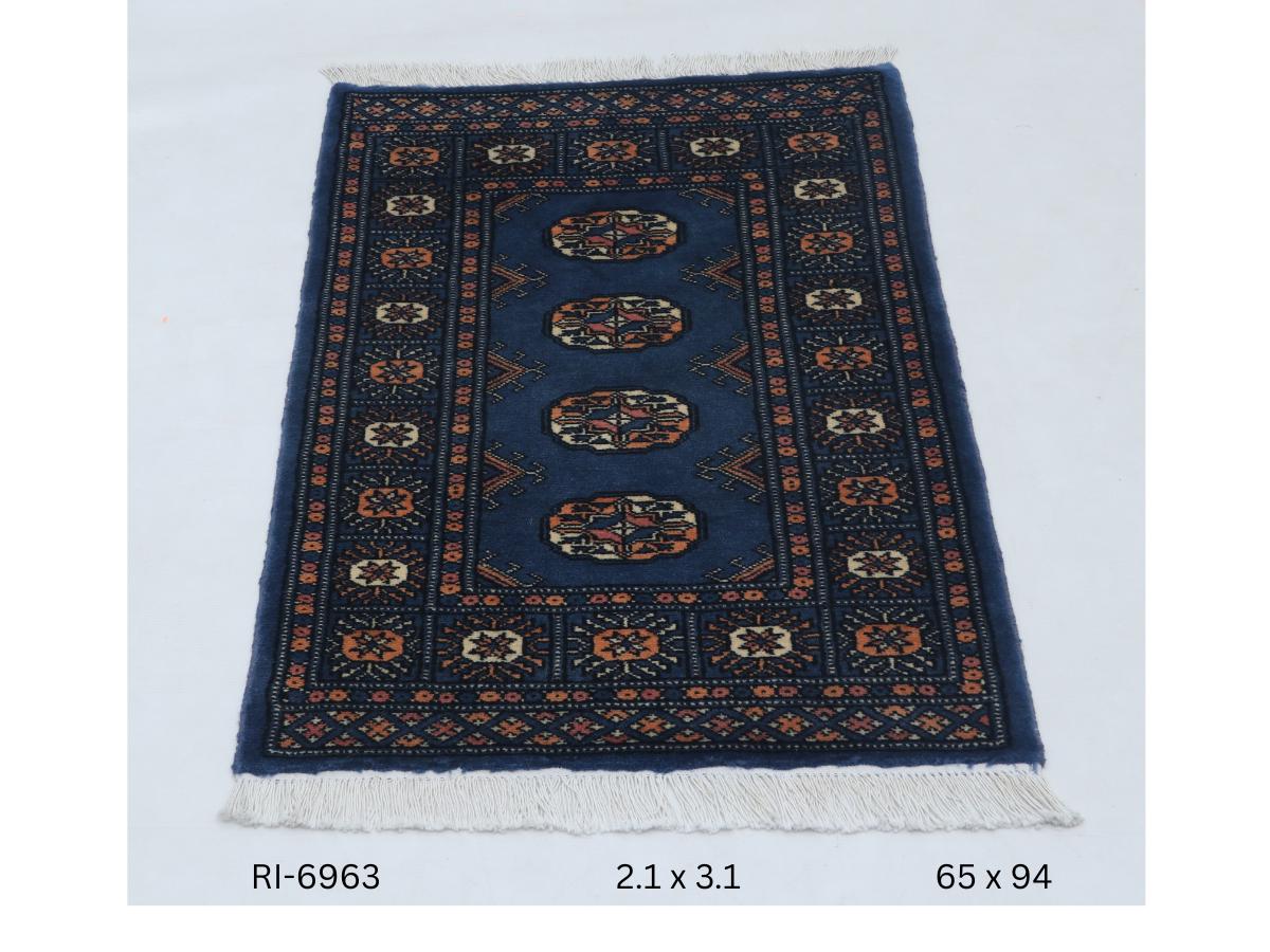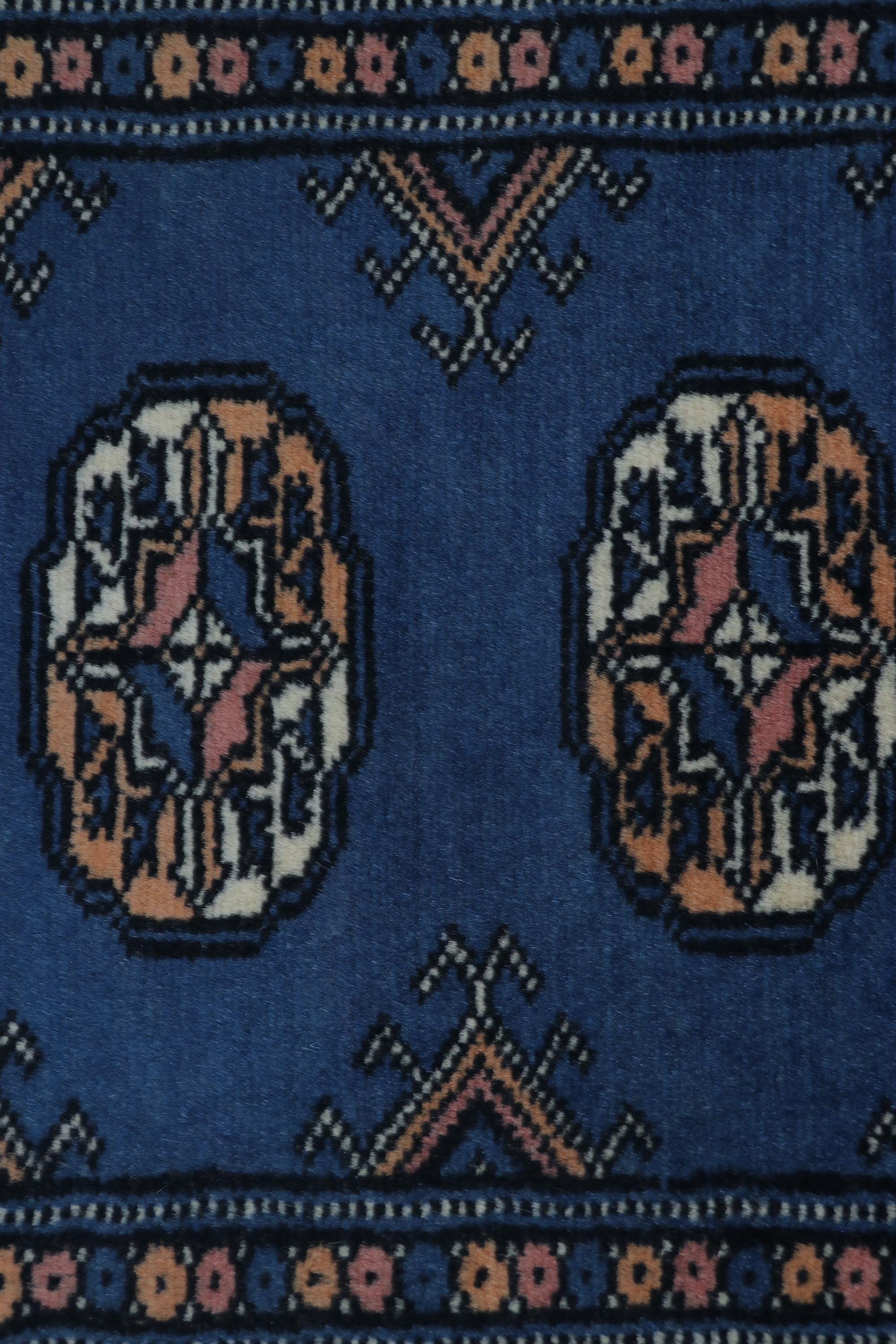 2.1 X 3.1 ft Blue Geomatrical Handmade ,Mori Bokhara Cotton and Wool