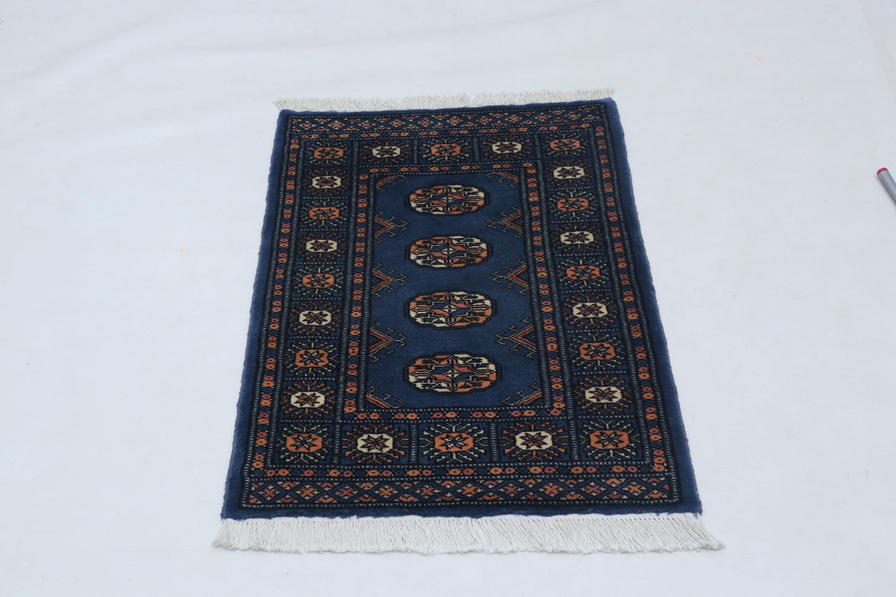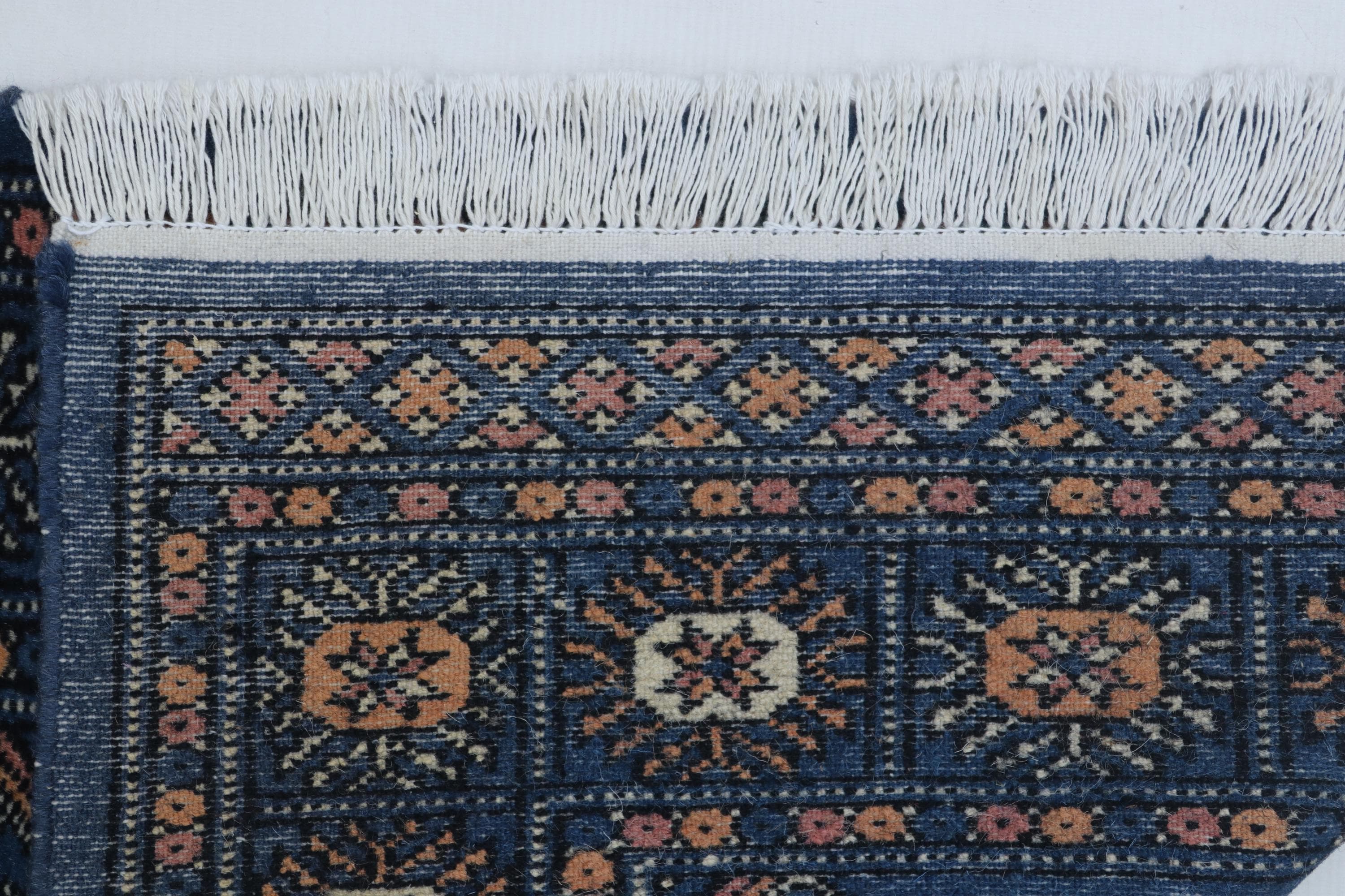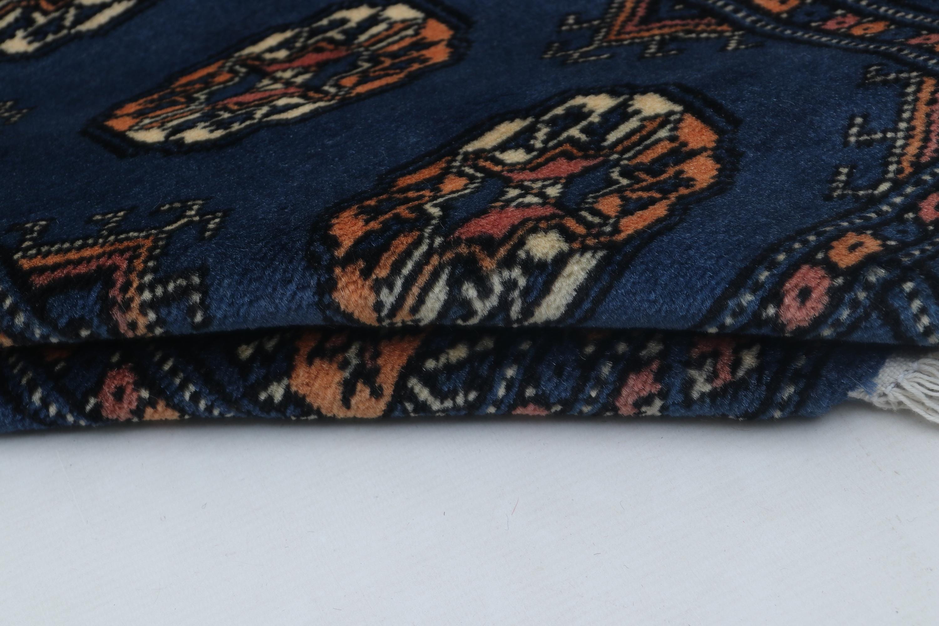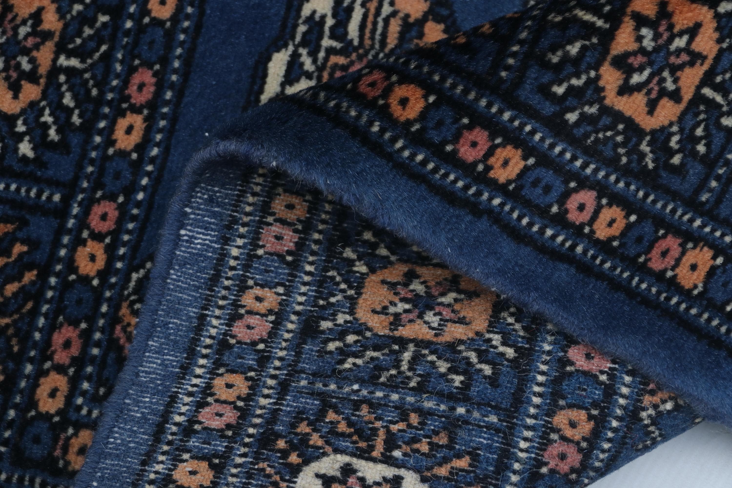 2.1 X 3.1 ft Blue Geomatrical Handmade ,Mori Bokhara Cotton and Wool
