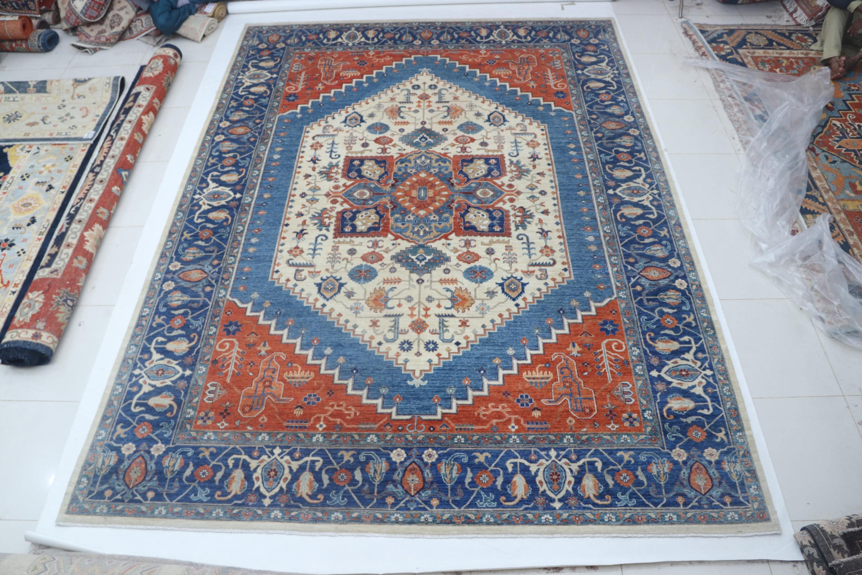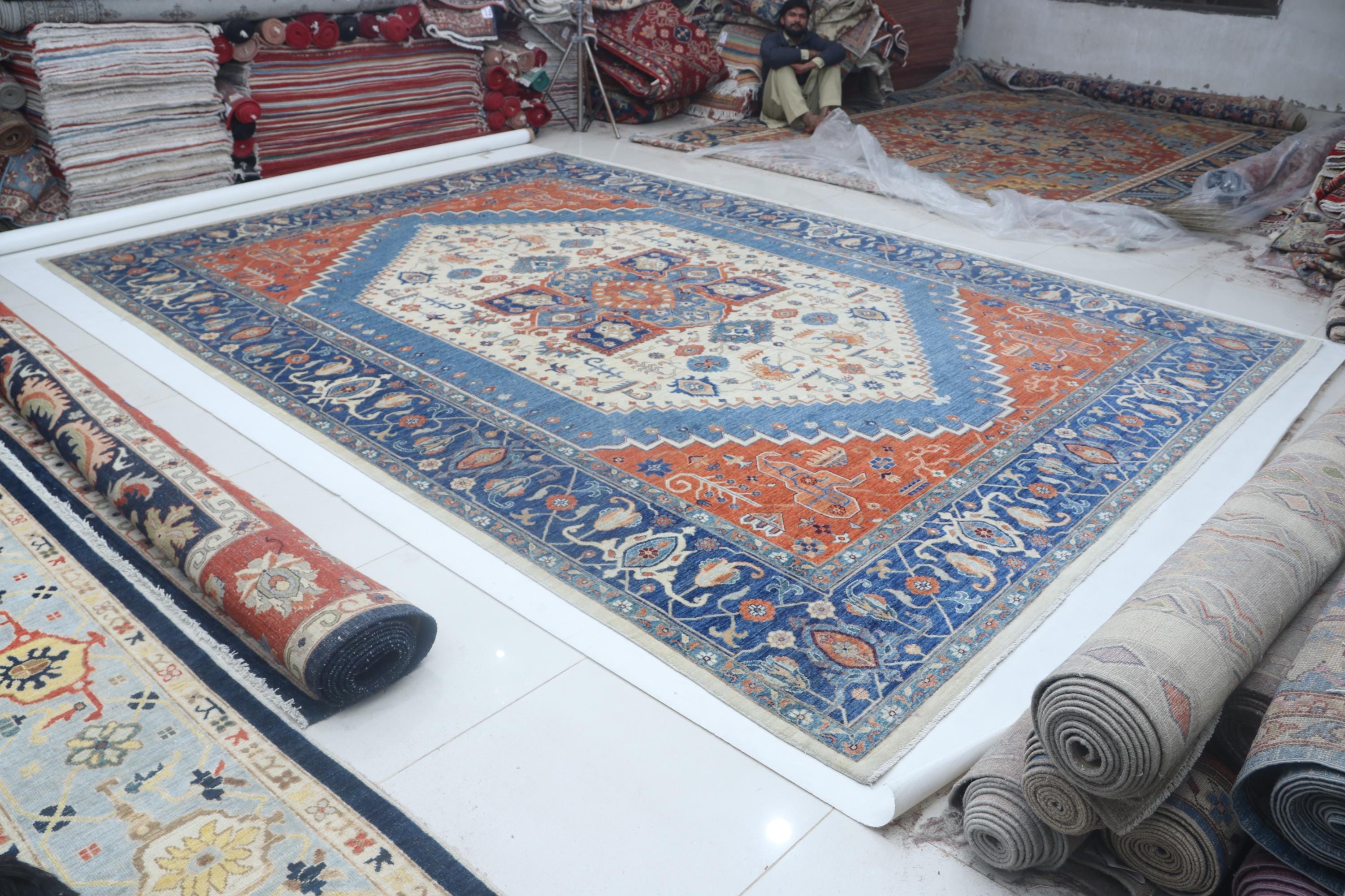 this rug in Blue and Beige brings elegance to any room.