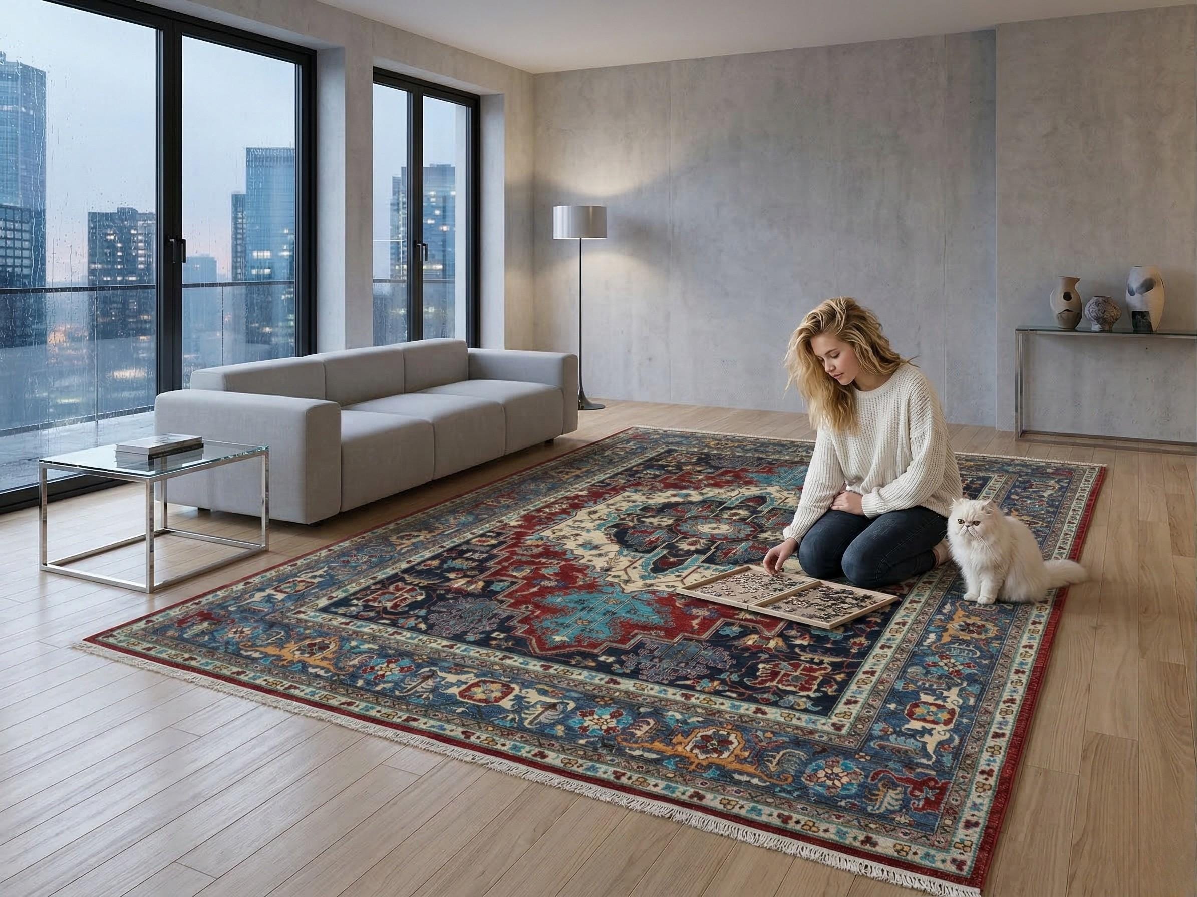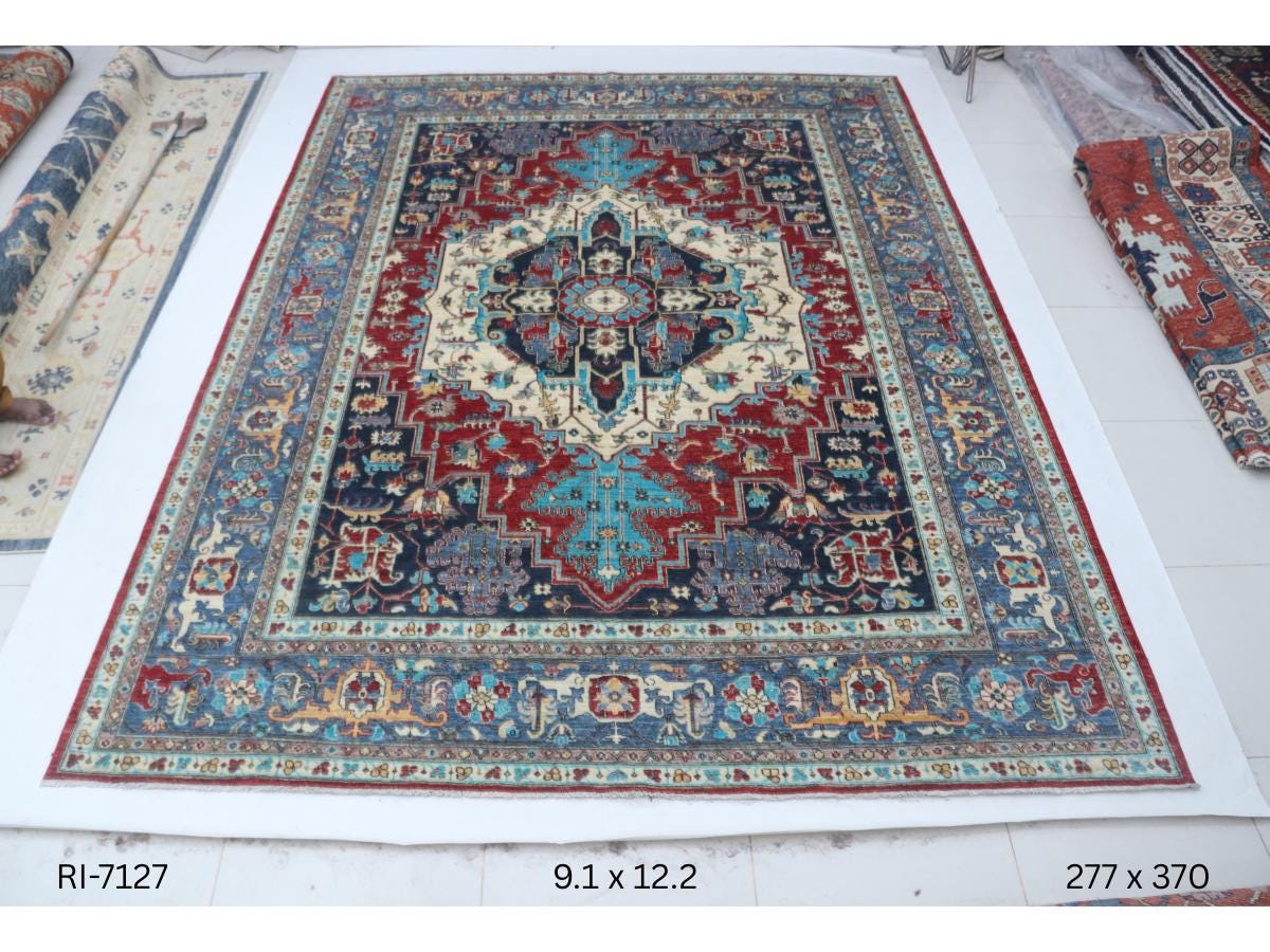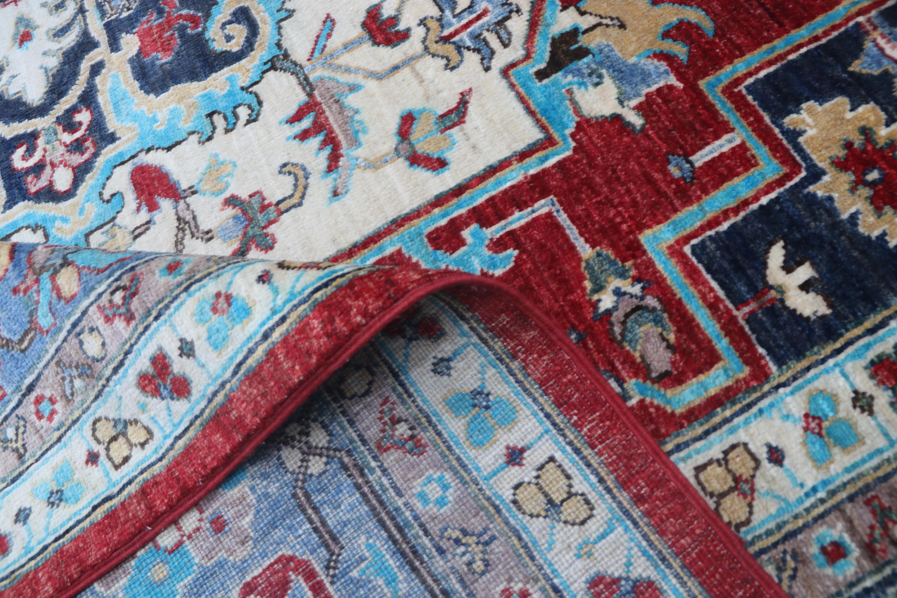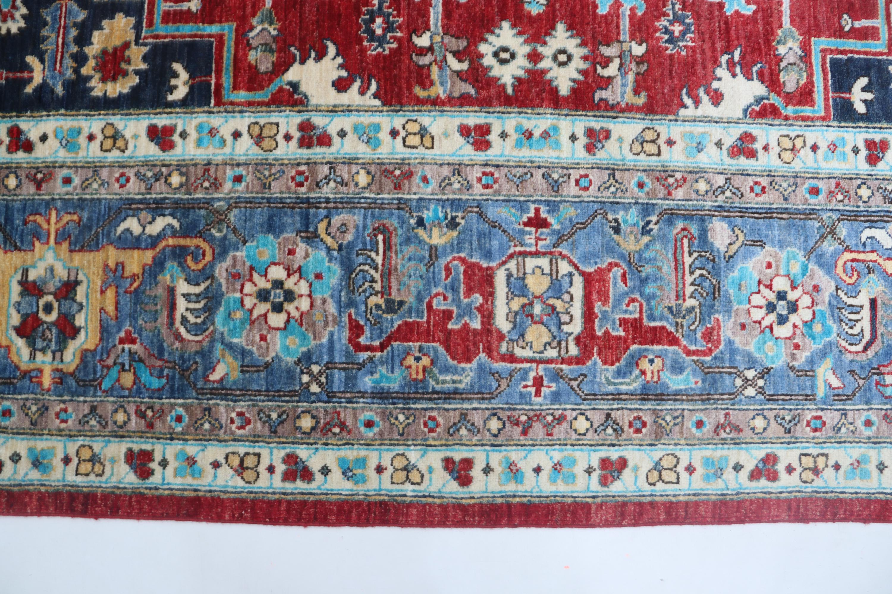 this rug in red and Blue brings elegance to any room.