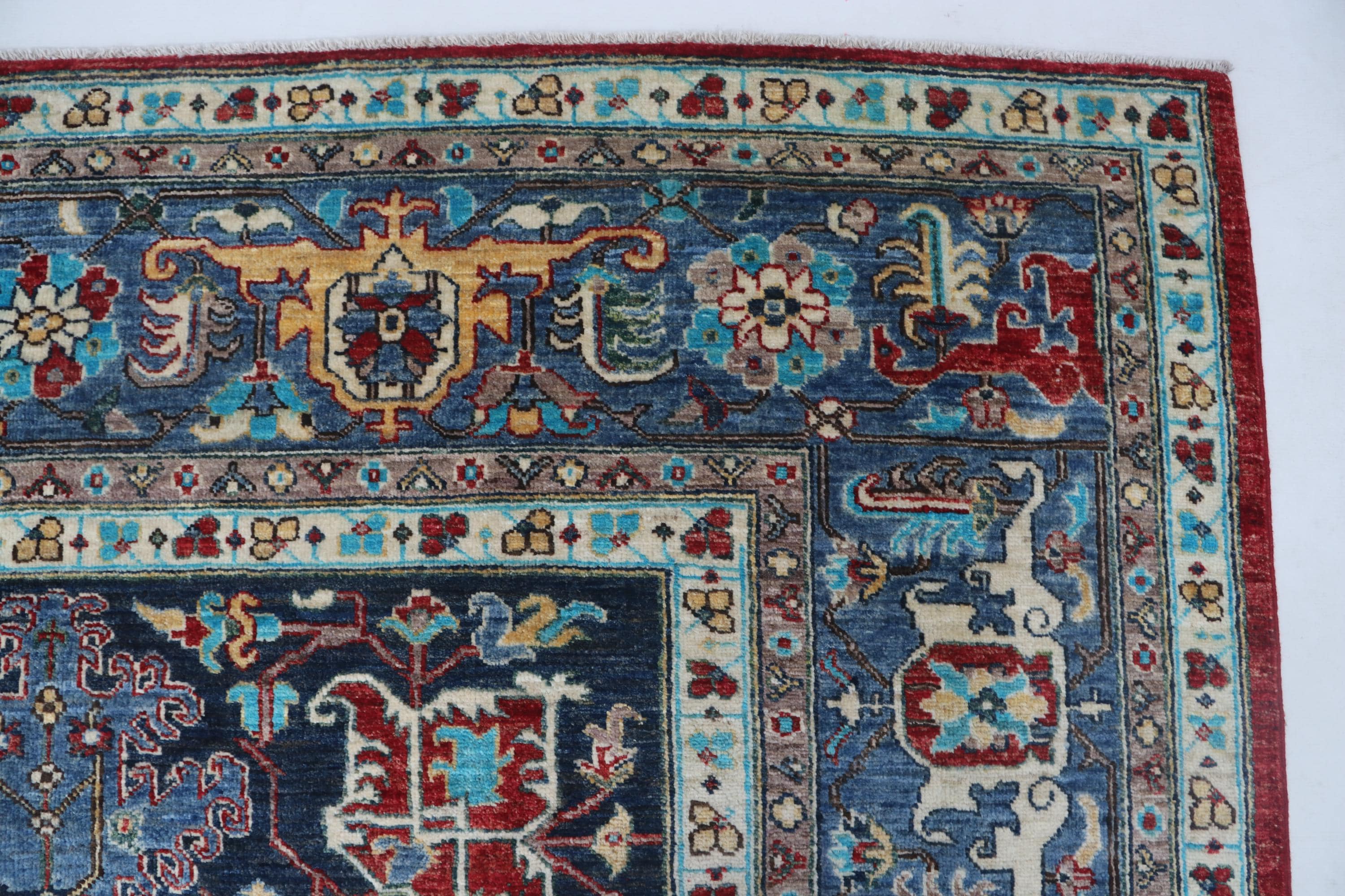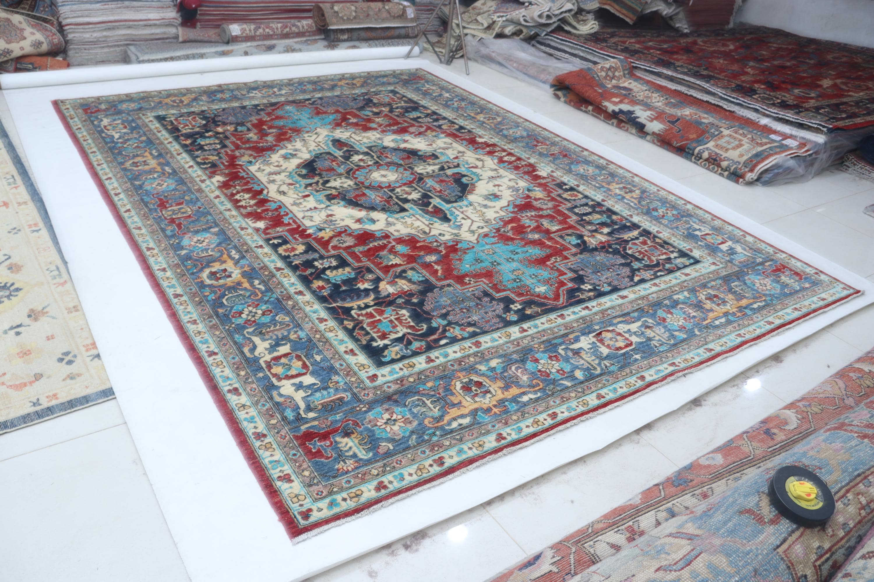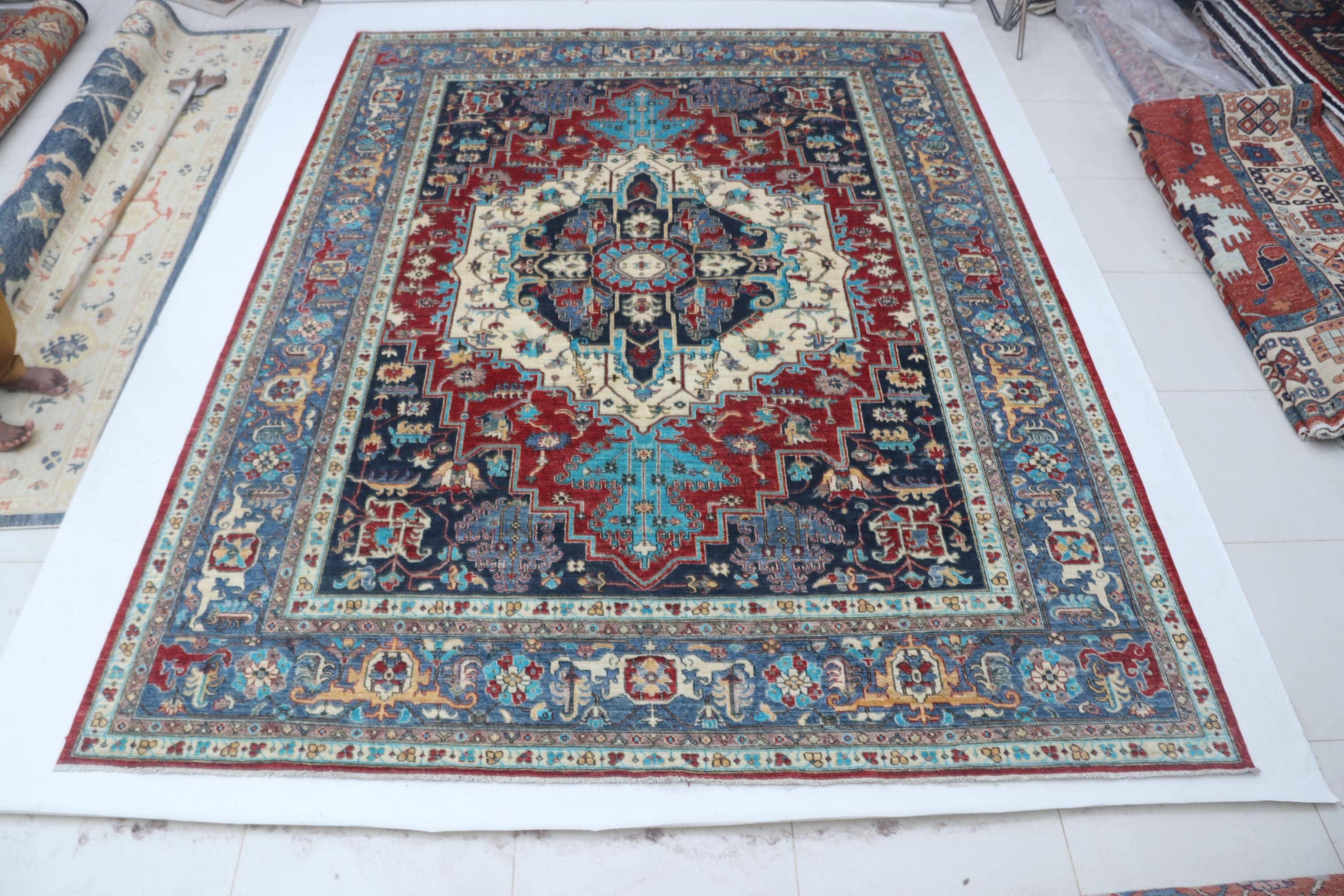 this rug in red and Blue brings elegance to any room.