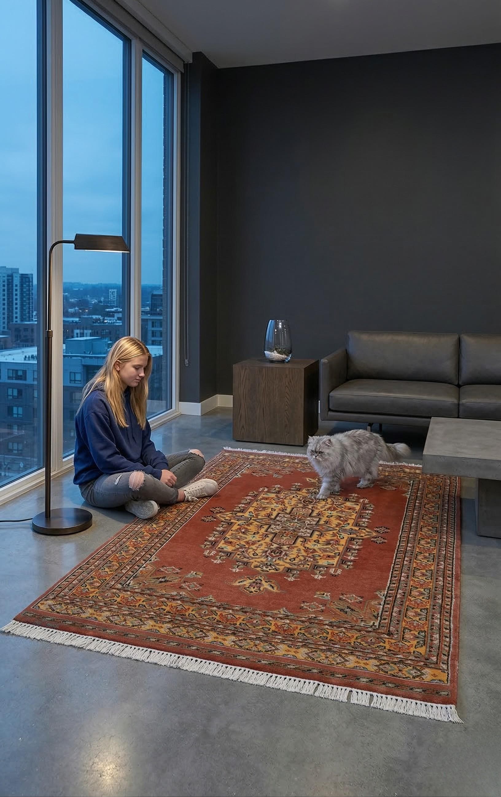 Expertly crafted with Cotton foundation and Wool and silk touch pile,