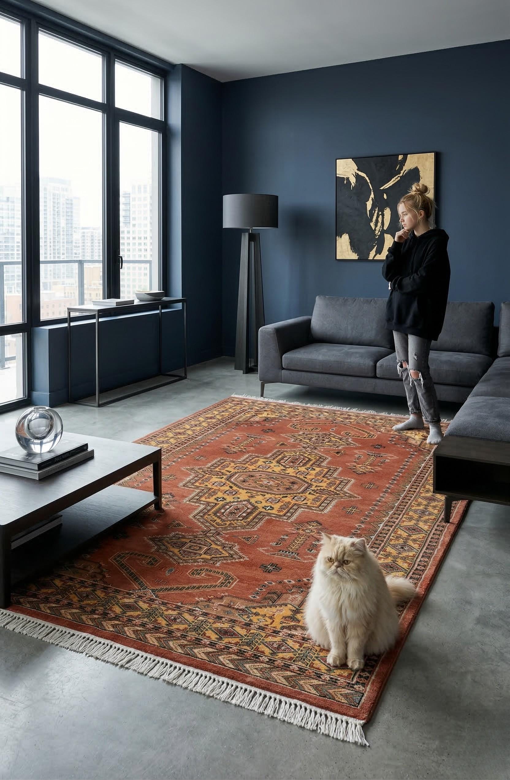 Add timeless charm to your home with this handmade Geomatrical rug.