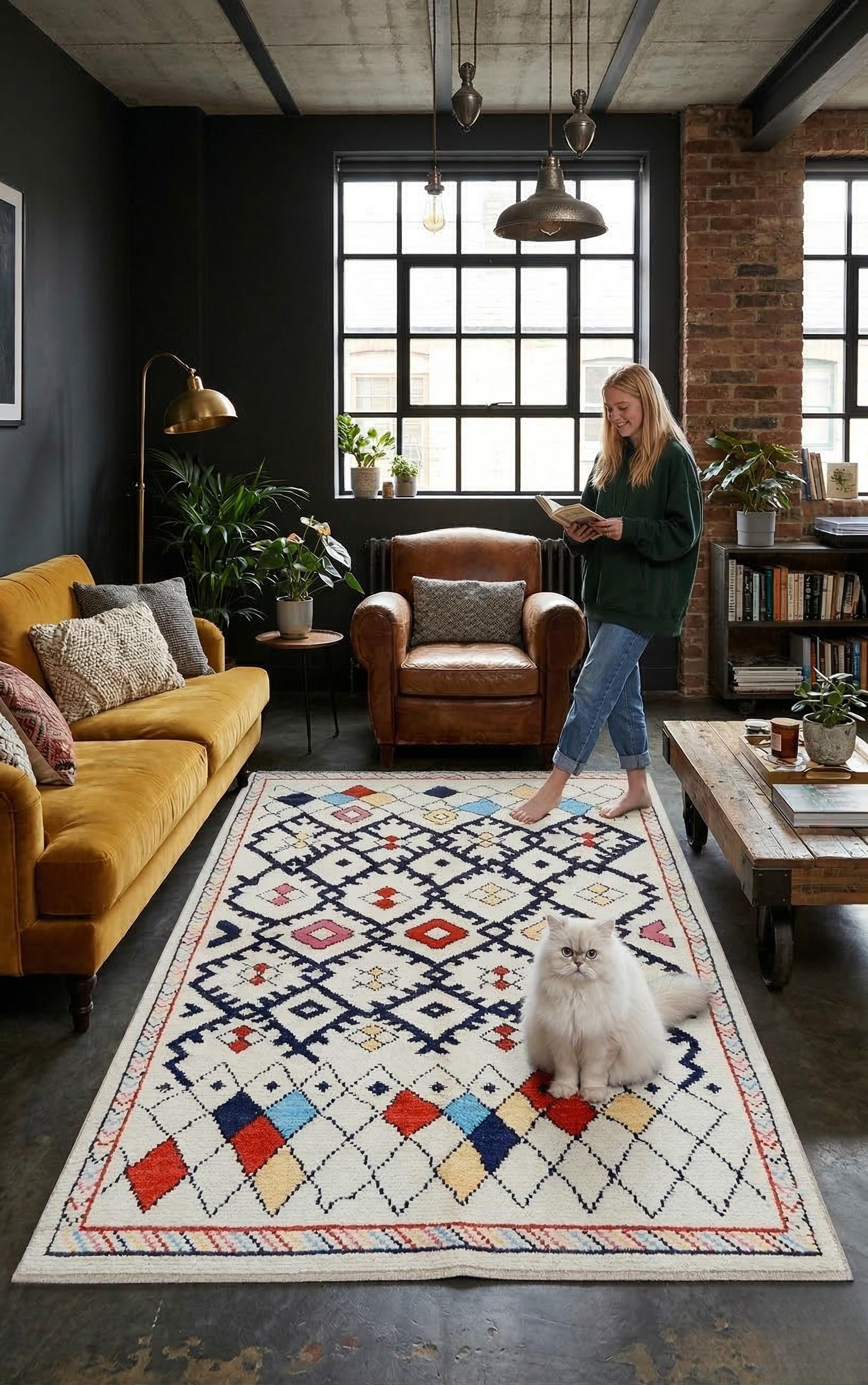Add timeless charm to your home with this handmade Geomatrical rug.