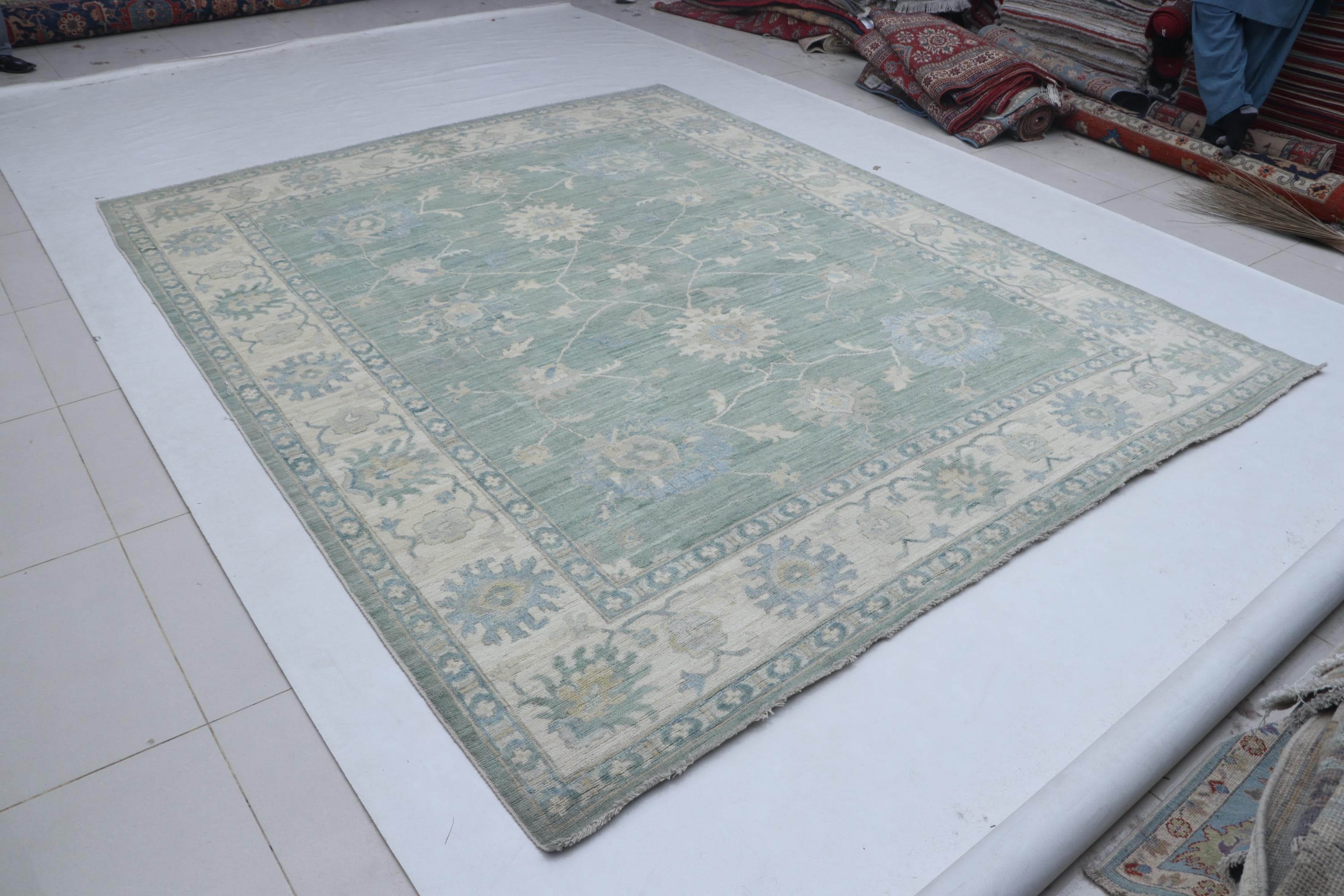 this rug in Green and Beige brings elegance to any room.