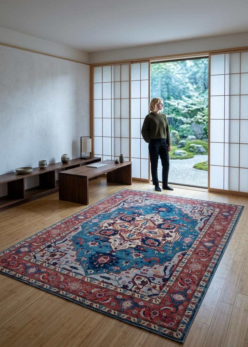 this rug in Blue and Copper brings elegance to any room.
