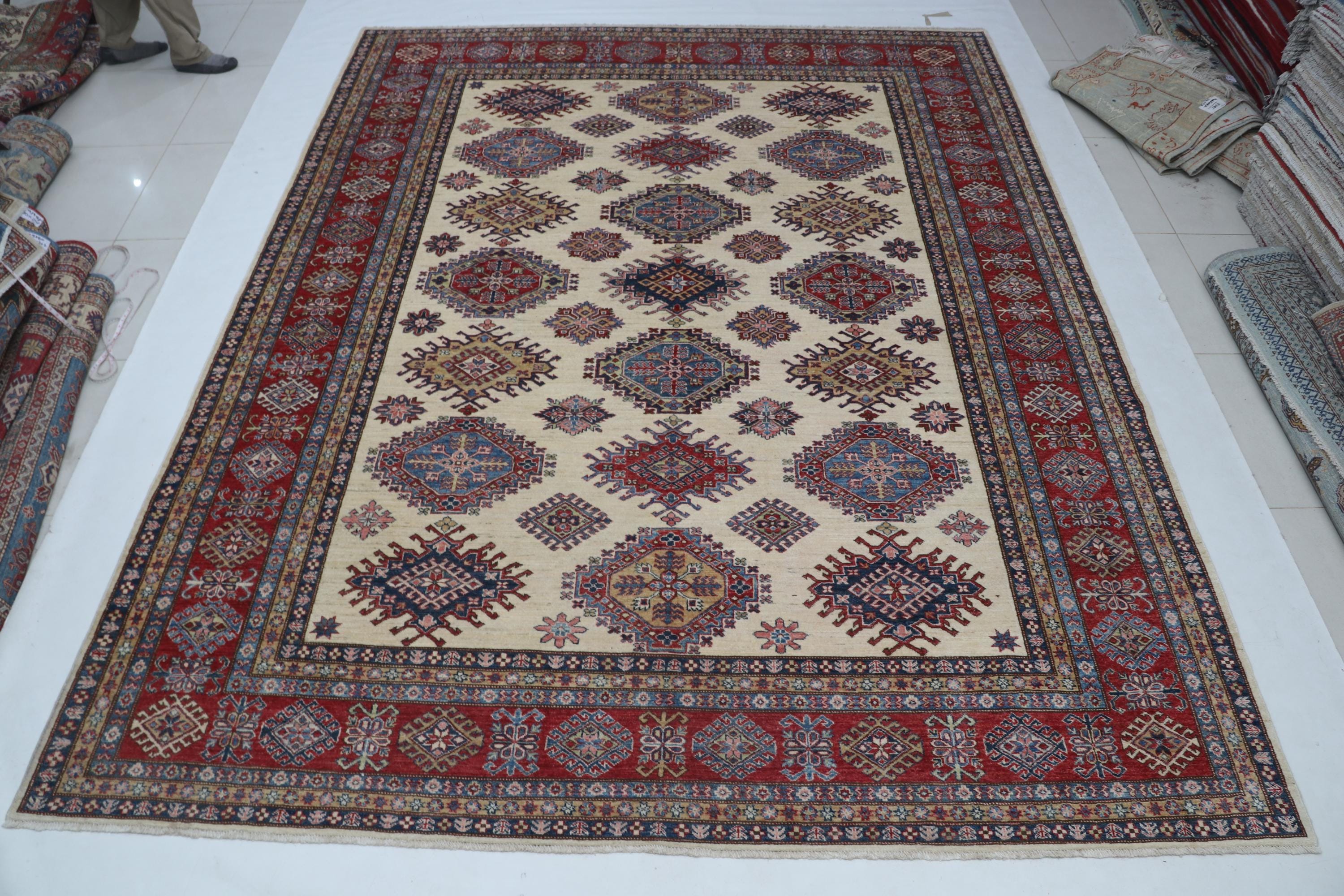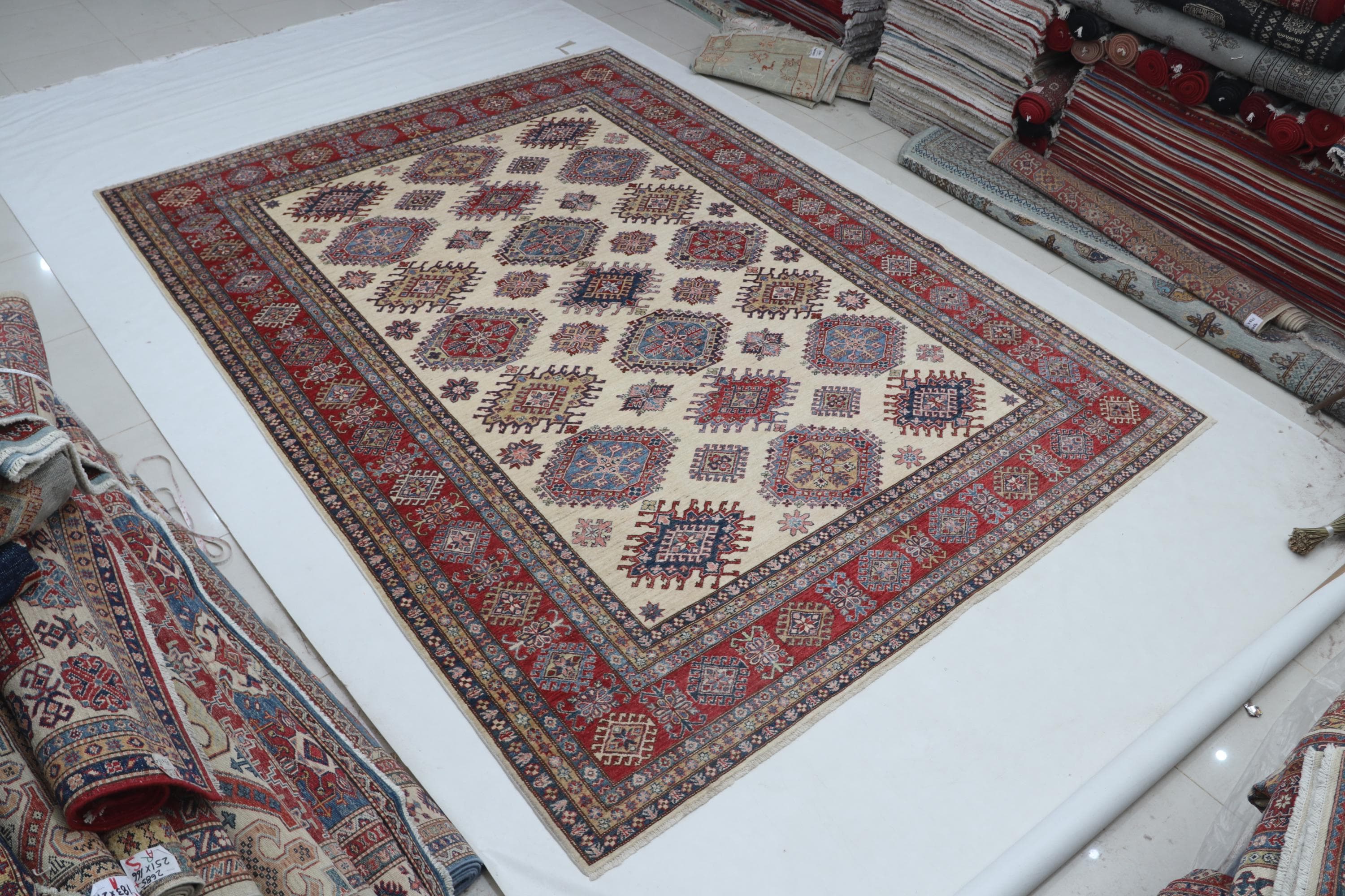 Designed in a Geomatrical style, it showcases Vegetable Dyeing tones for a unique look.