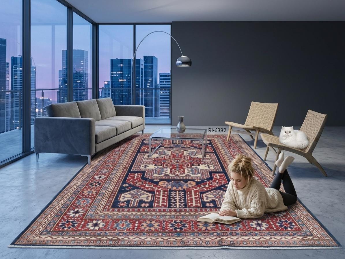 Designed in a Geomatrical style, it showcases Vegetable Dyeing tones for a unique look.