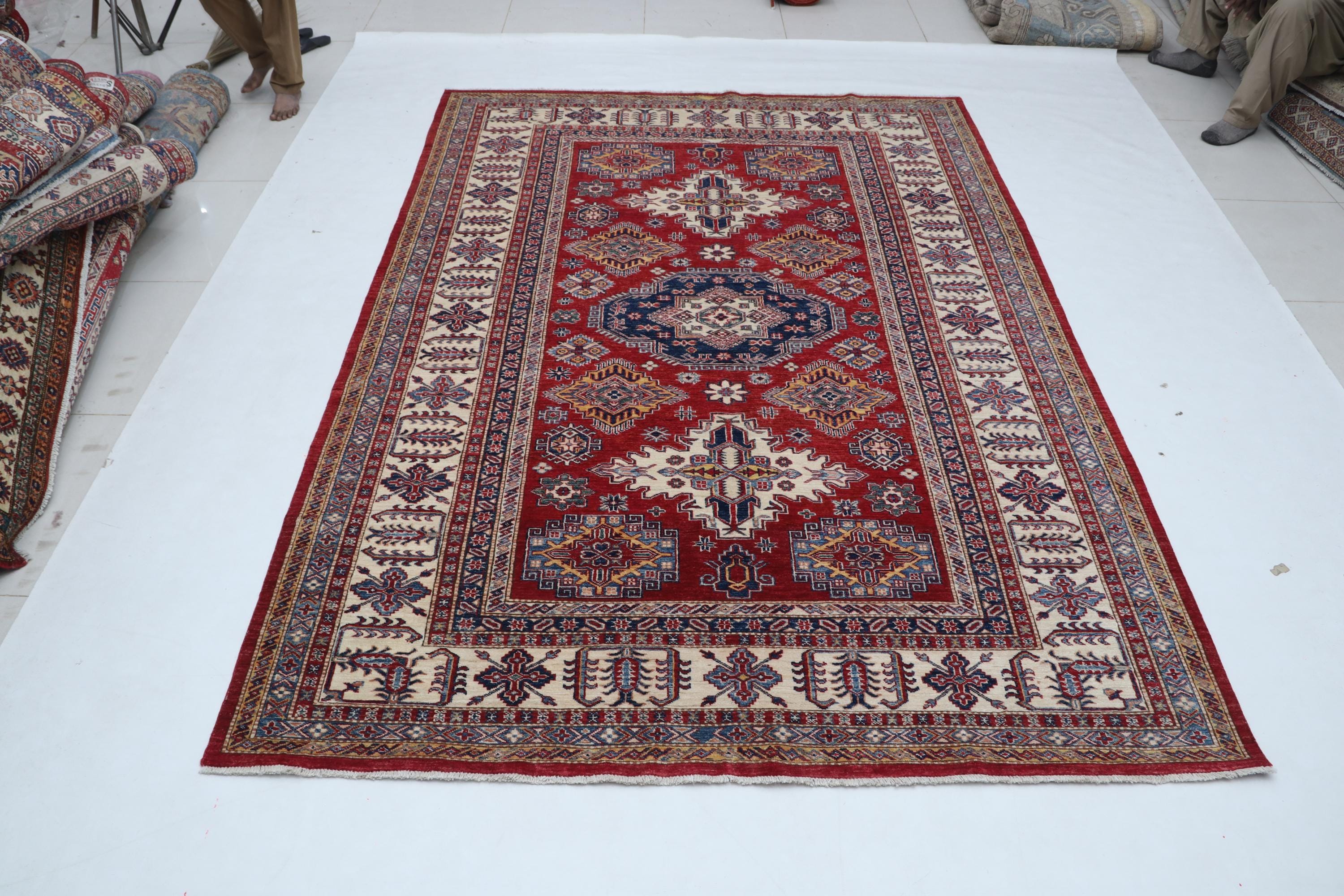 Designed in a Geomatrical style, it showcases Vegetable Dyeing tones for a unique look.