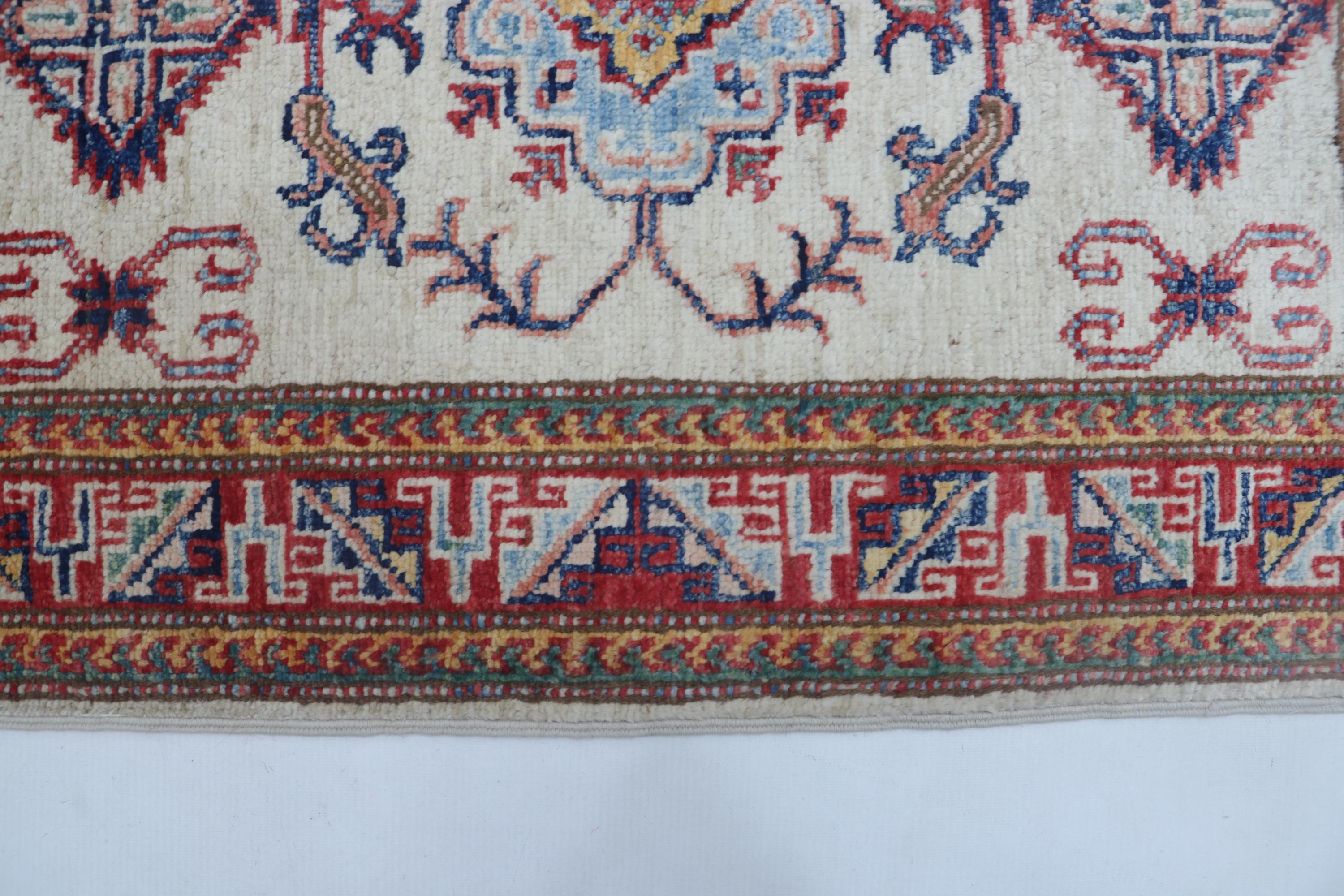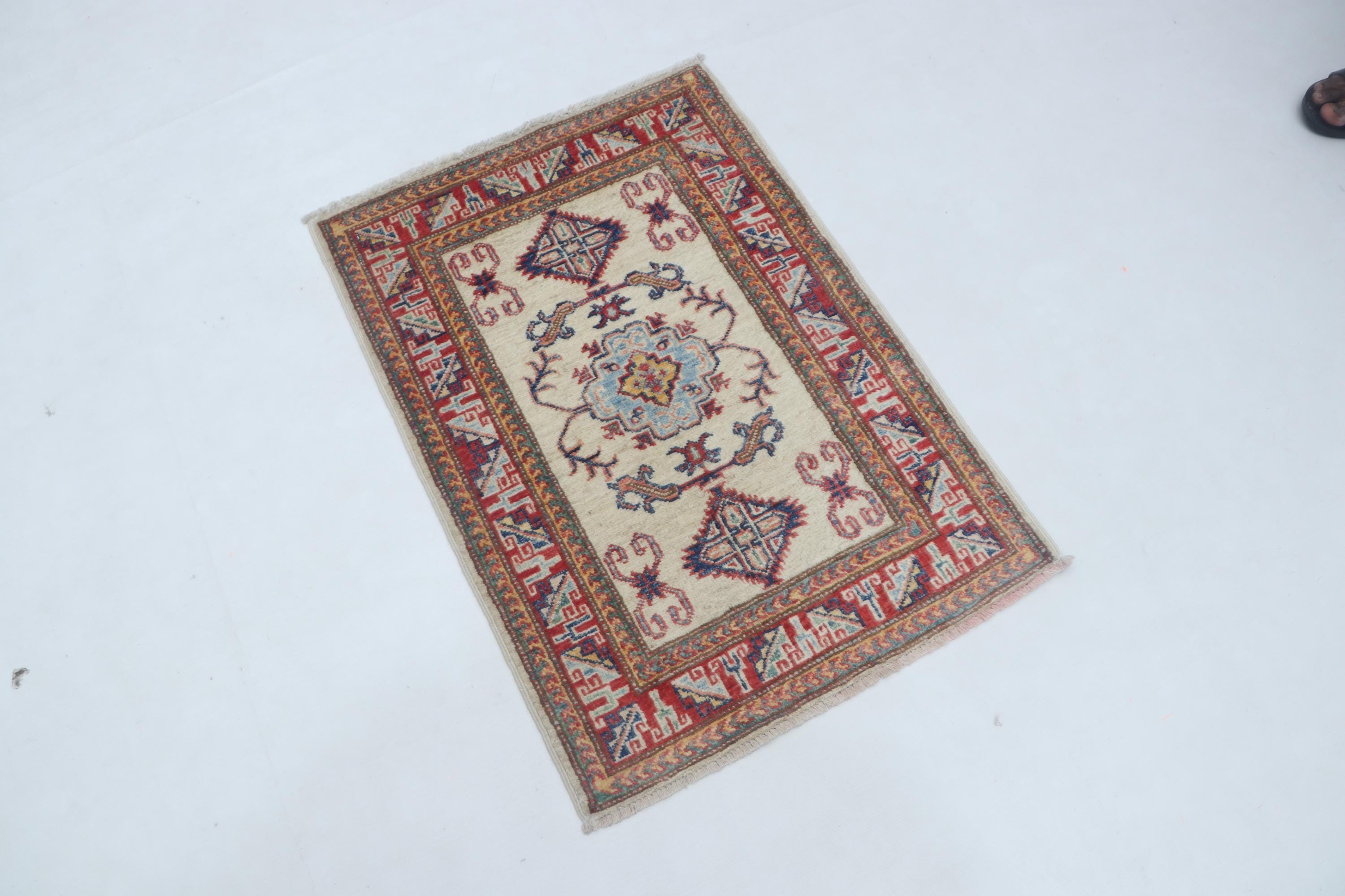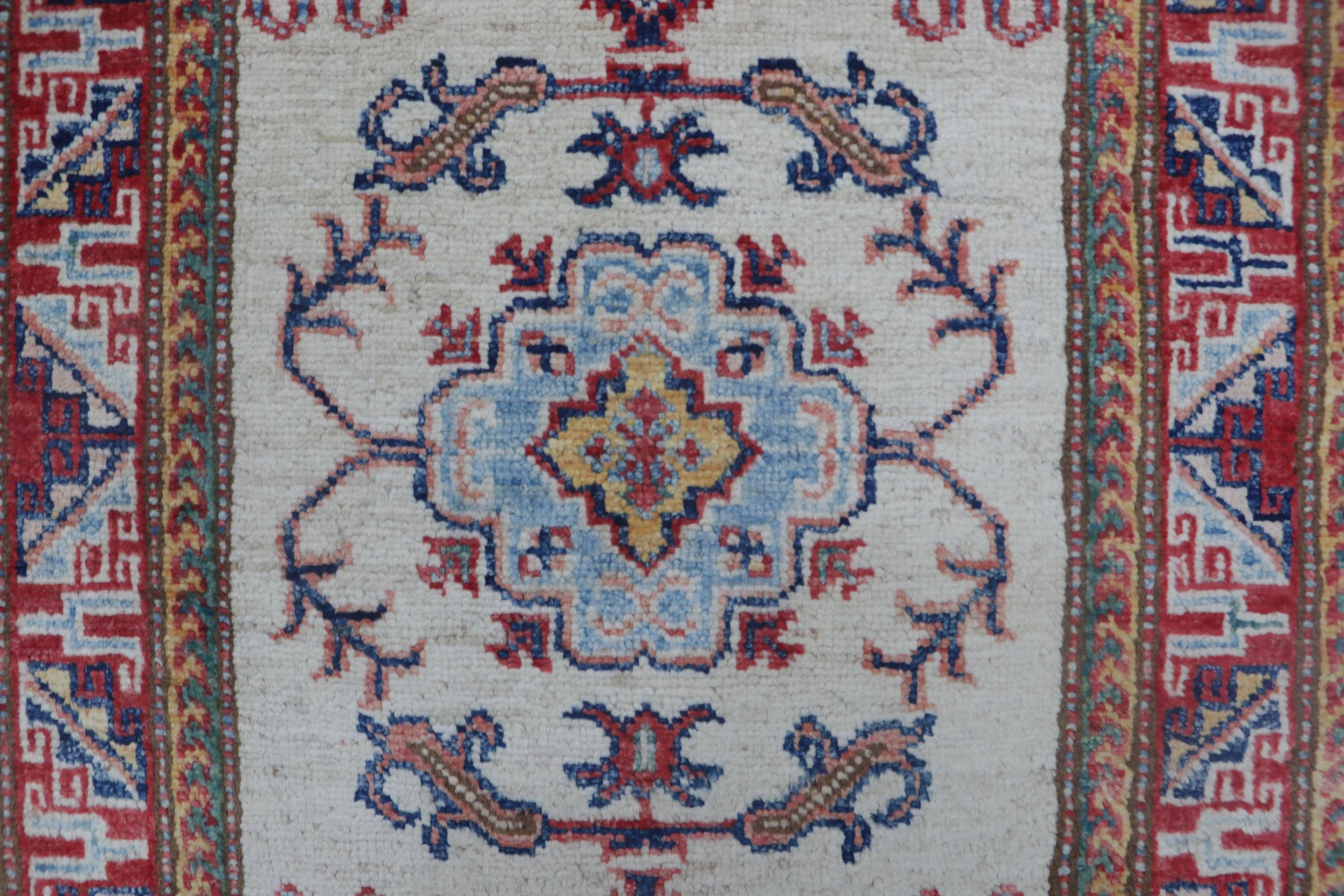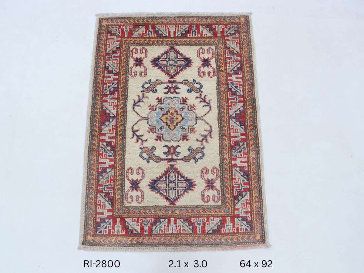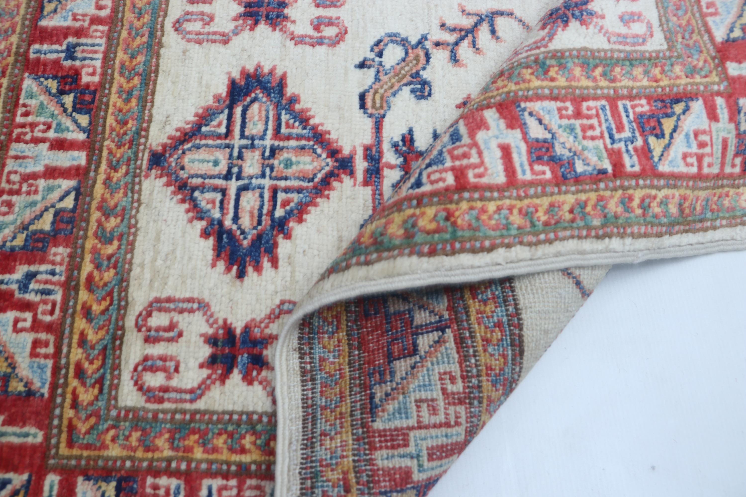 2.1 X 3.0 ft Red and Beige Geomatrical Handmade , Super Kazak Cotton and Wool