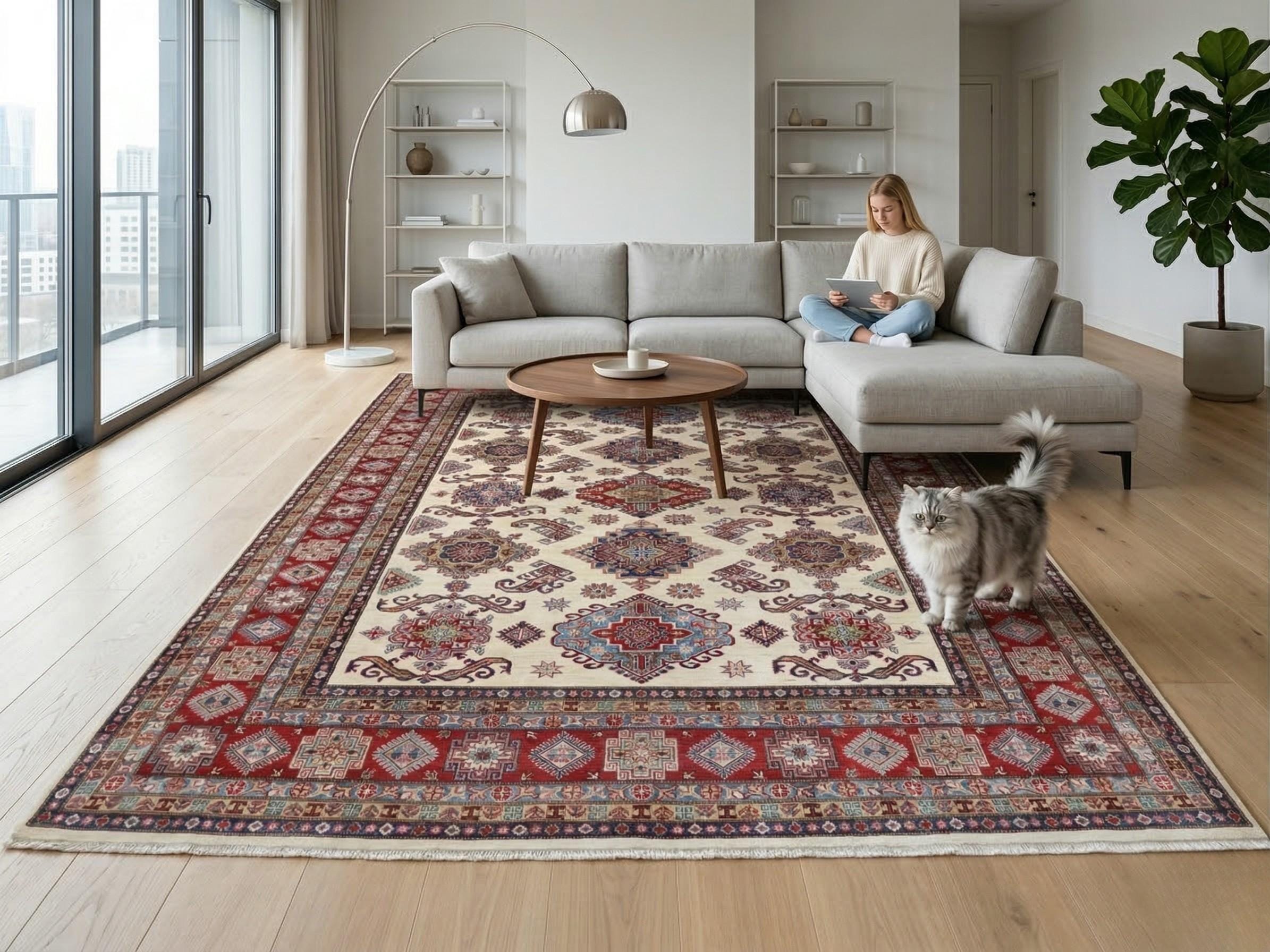 Bring craftsmanship into your living space with this authentic handmade rug.
