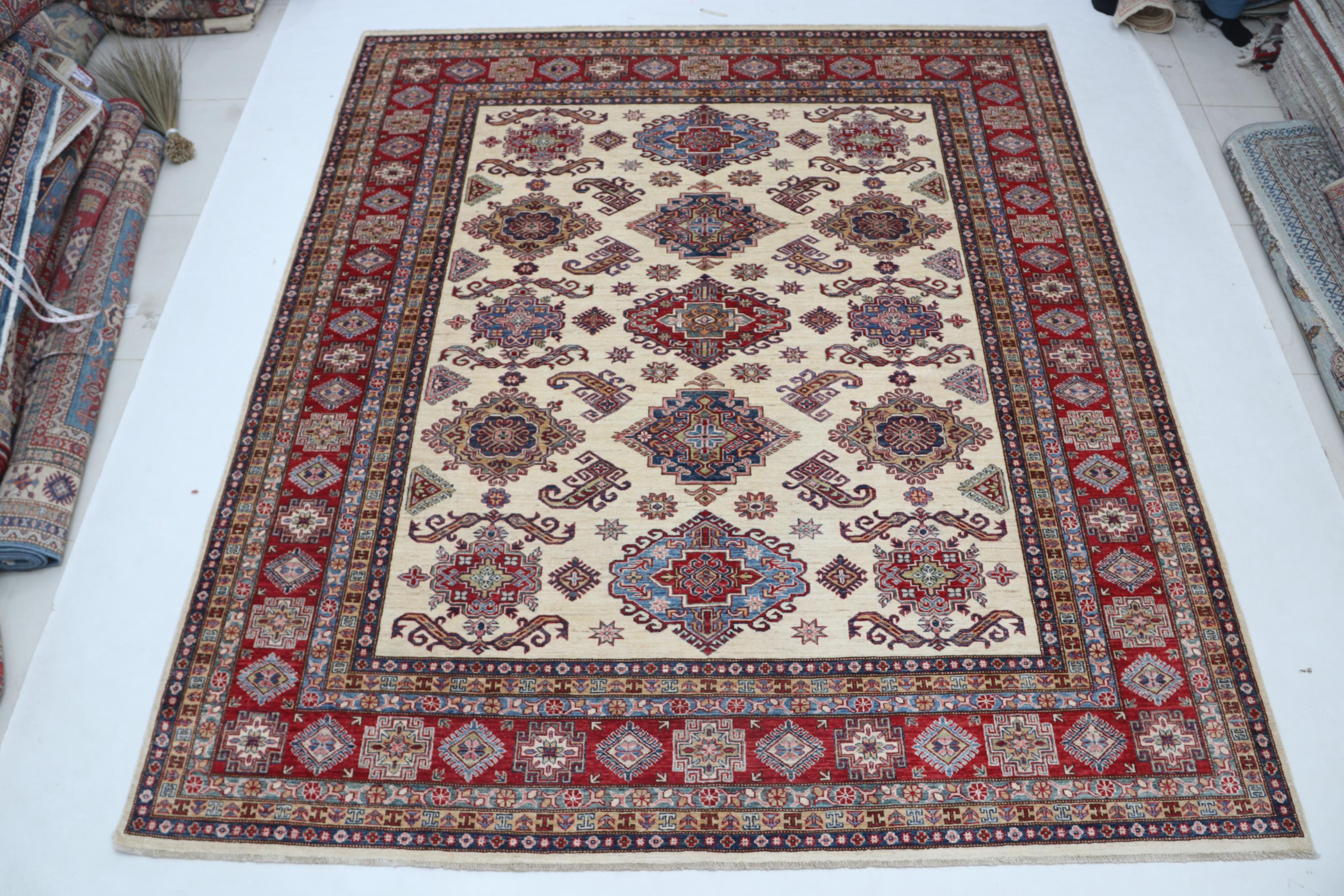 Designed in a Geomatrical style, it showcases Vegetable Dyeing tones for a unique look.