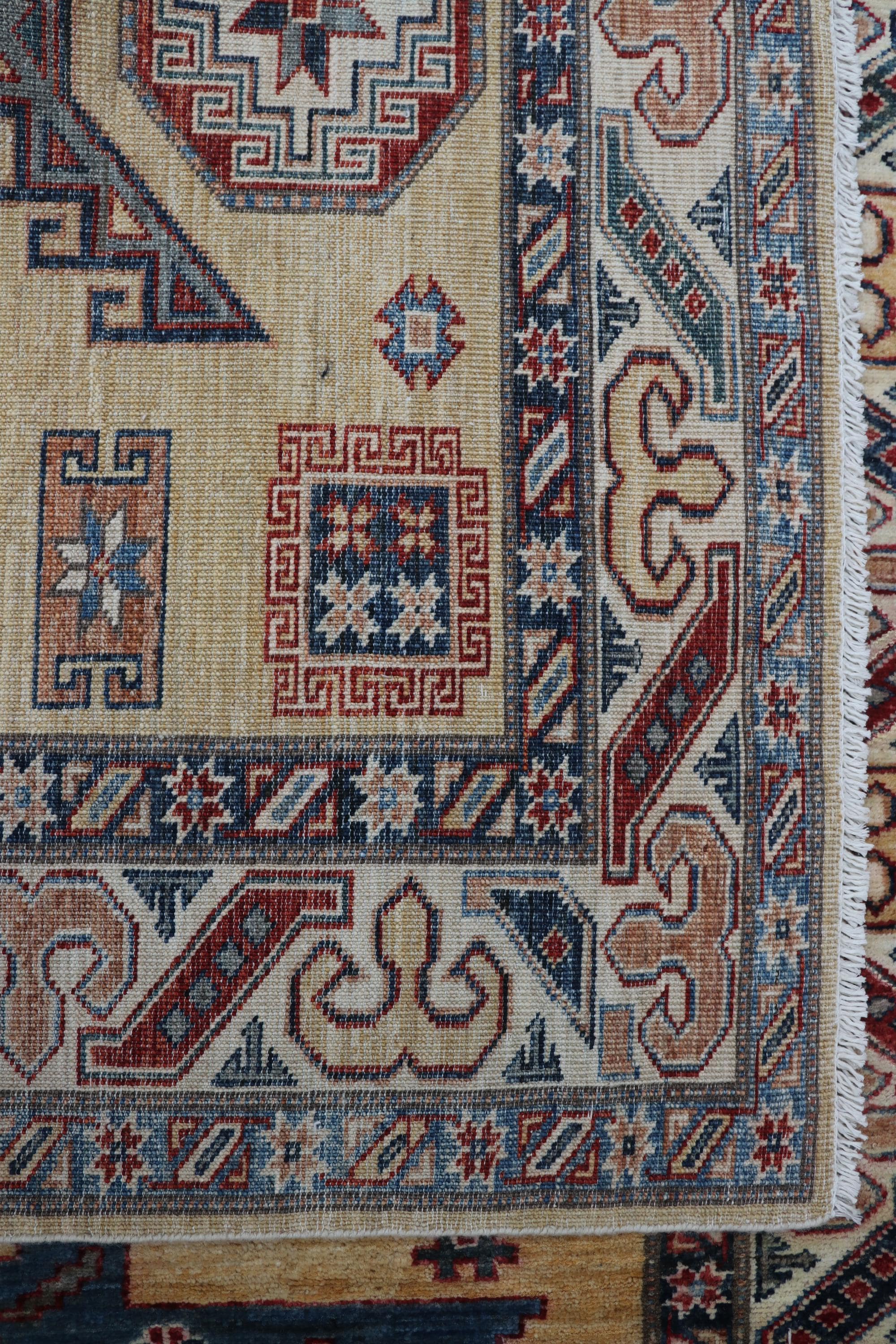 Designed in a Geomatrical style, it showcases Vegetable Dyeing tones for a unique look.