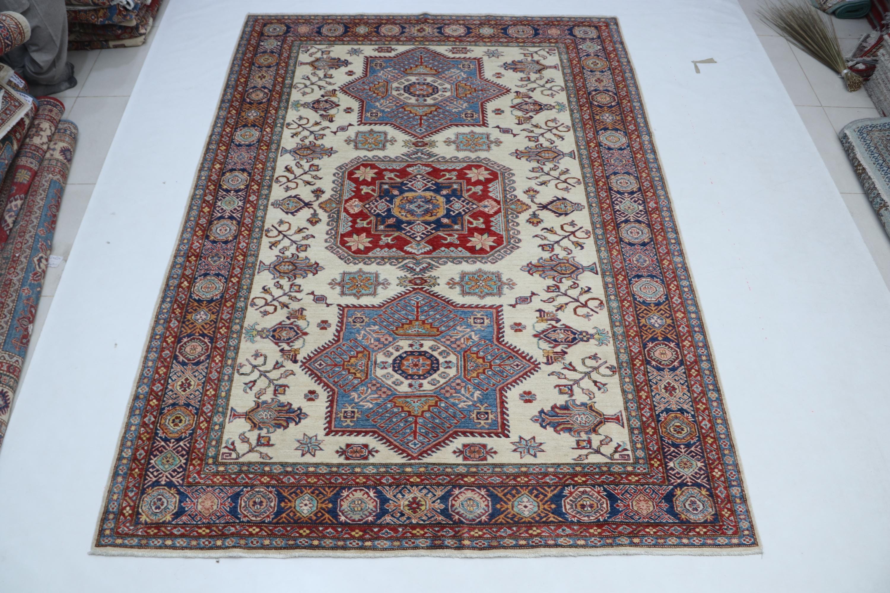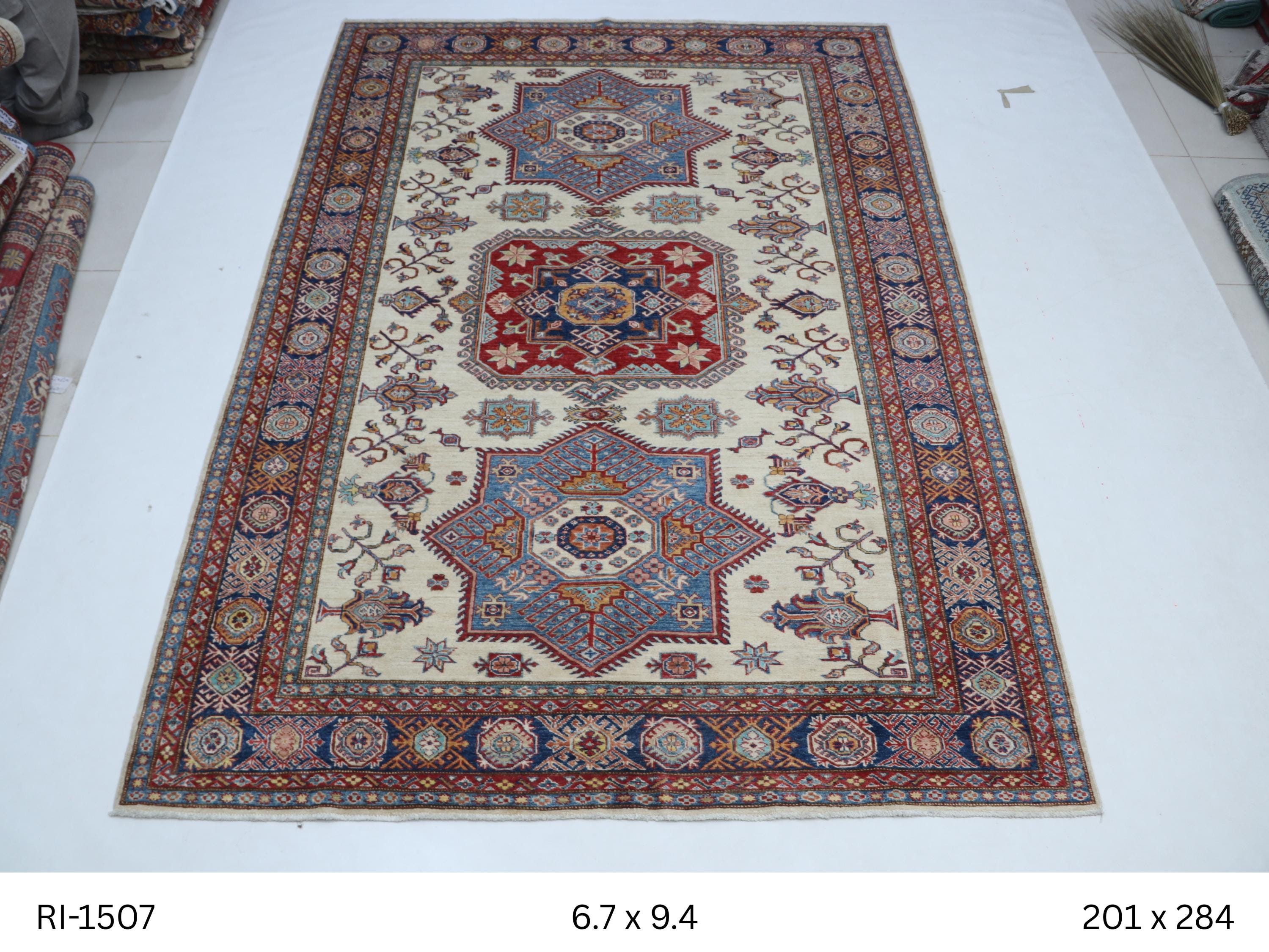 Designed in a Geomatrical style, it showcases Vegetable Dyeing tones for a unique look.