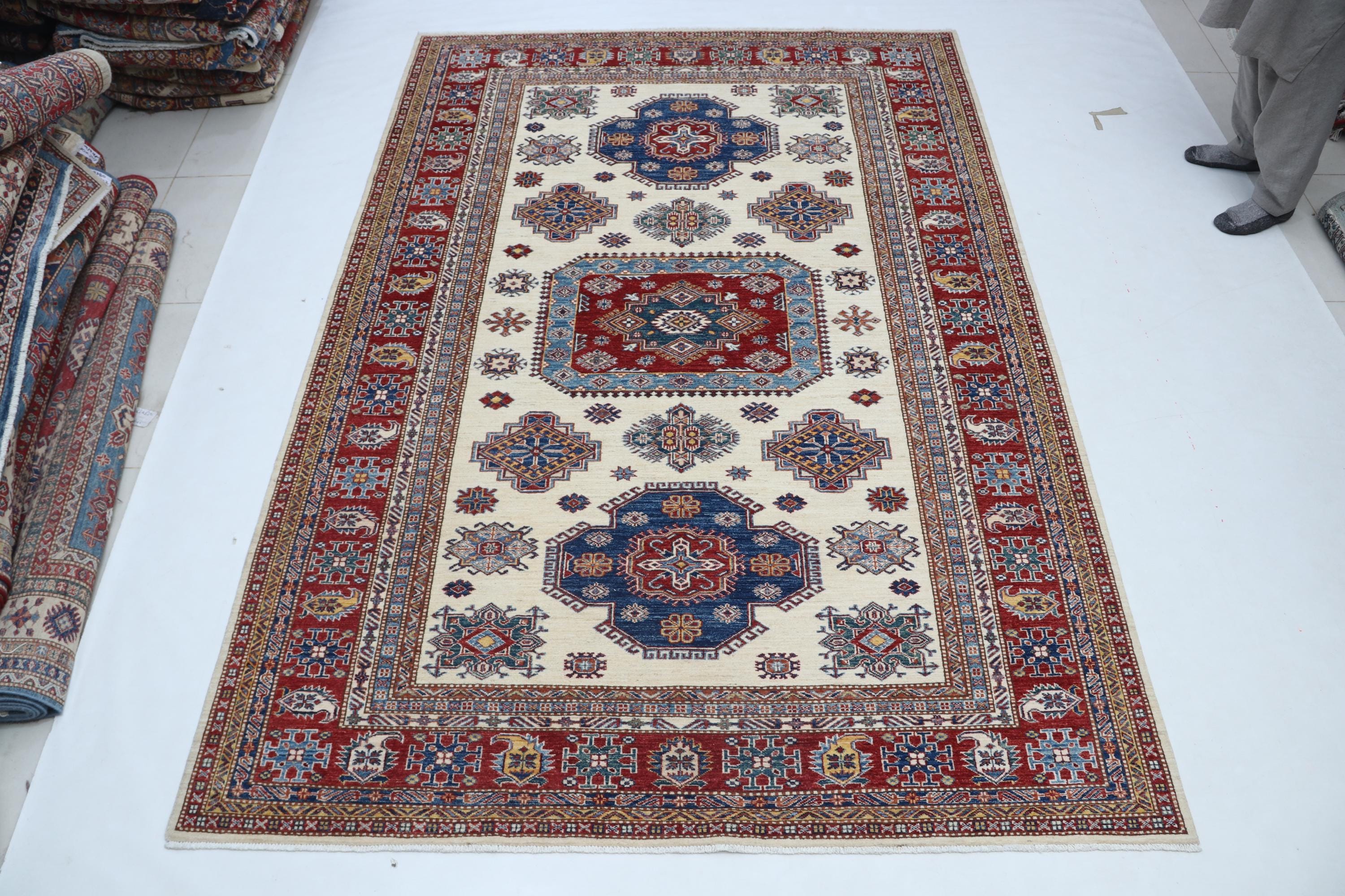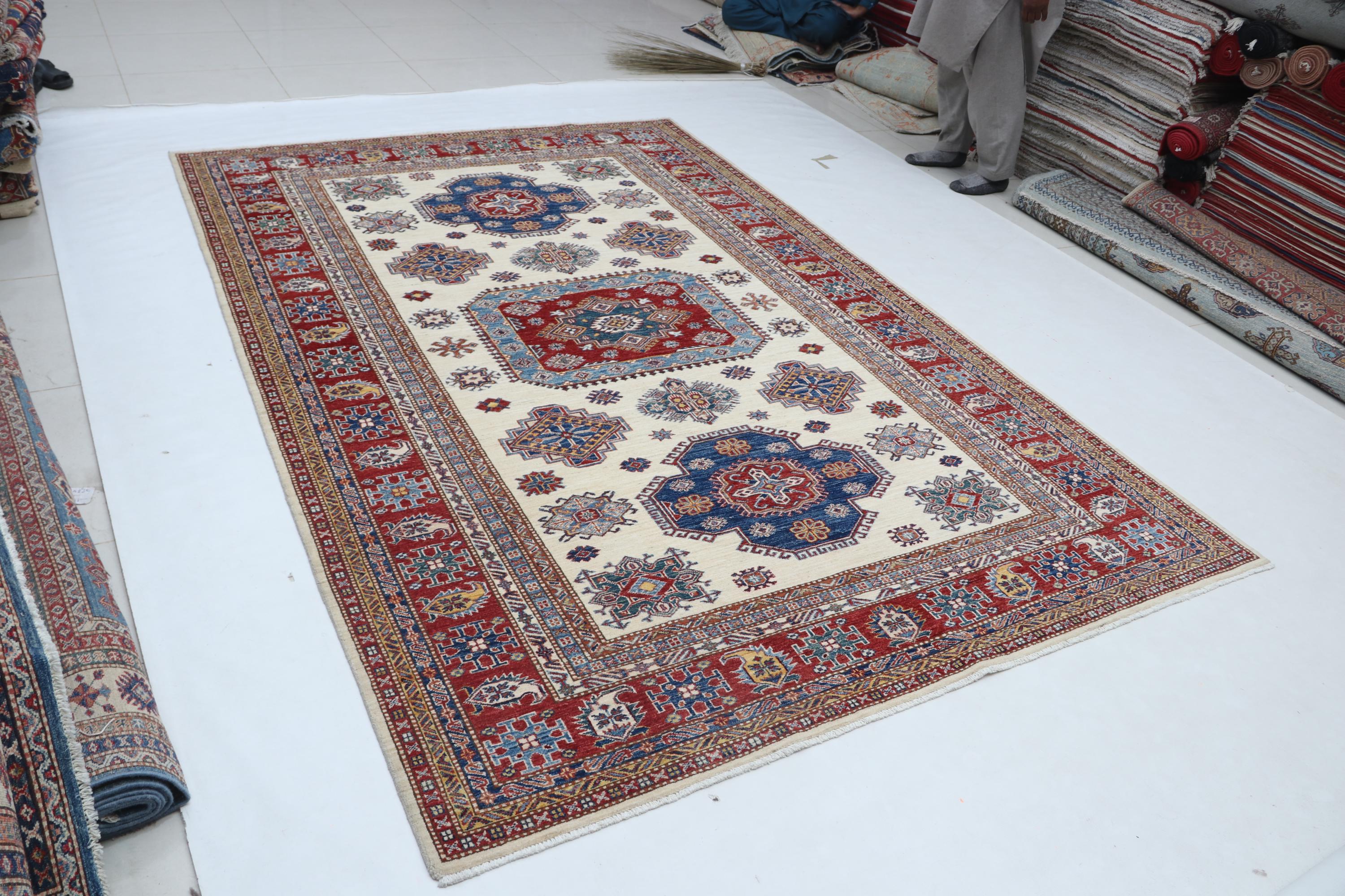 Designed in a Geomatrical style, it showcases Vegetable Dyeing tones for a unique look.