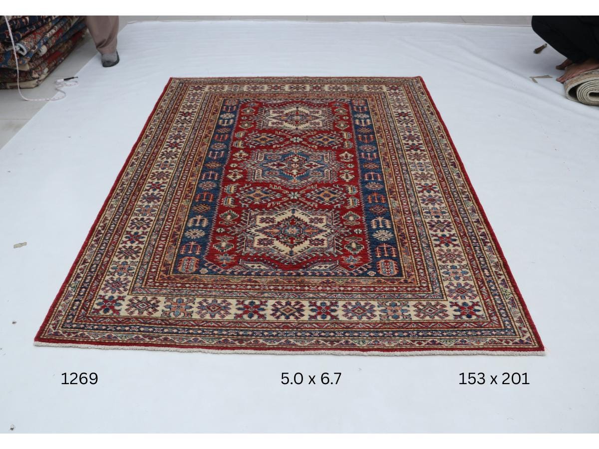 Designed in a Geomatrical style, it showcases Vegetable Dyeing tones for a unique look.