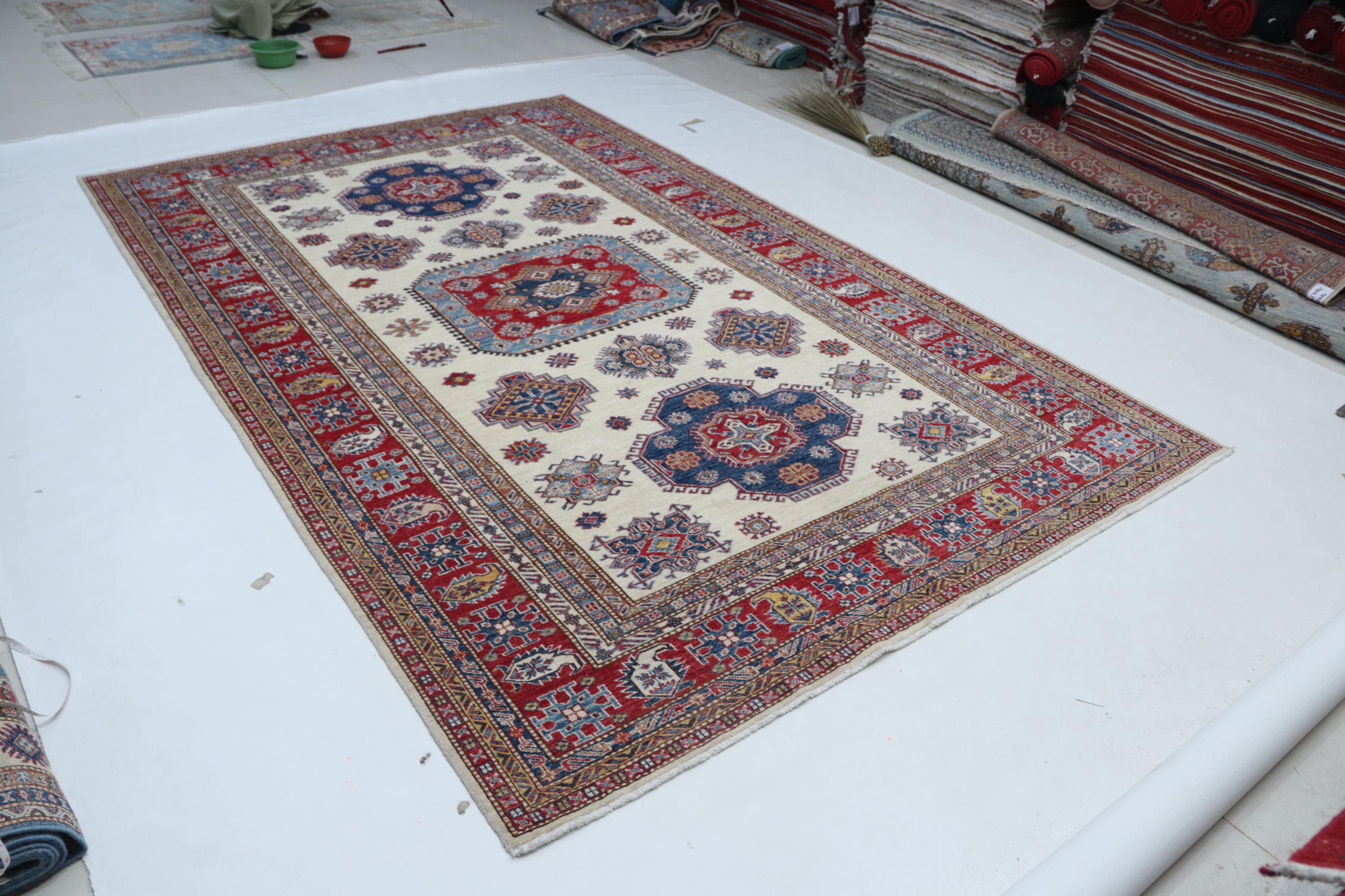 Designed in a Geomatrical style, it showcases Vegetable Dyeing tones for a unique look.