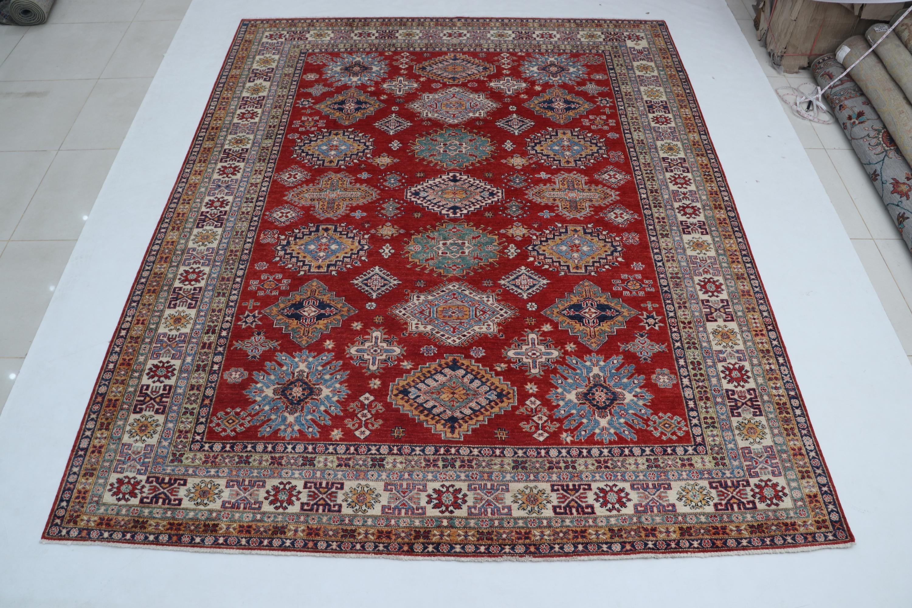 Designed in a Geomatrical style, it showcases Vegetable Dyeing tones for a unique look.