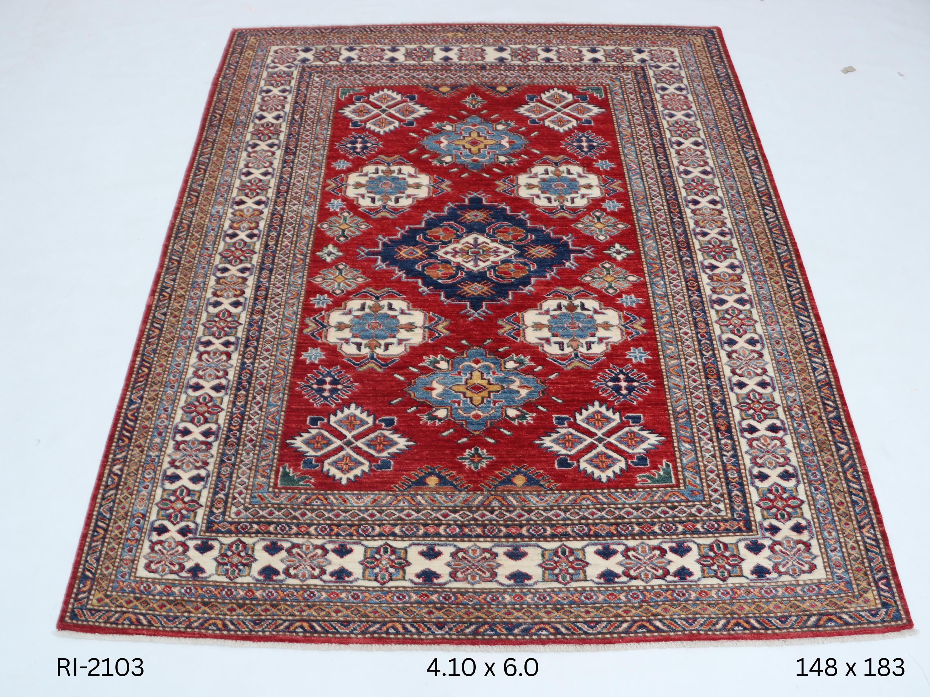 Designed in a Geomatrical style, it showcases Vegetable Dyeing tones for a unique look.