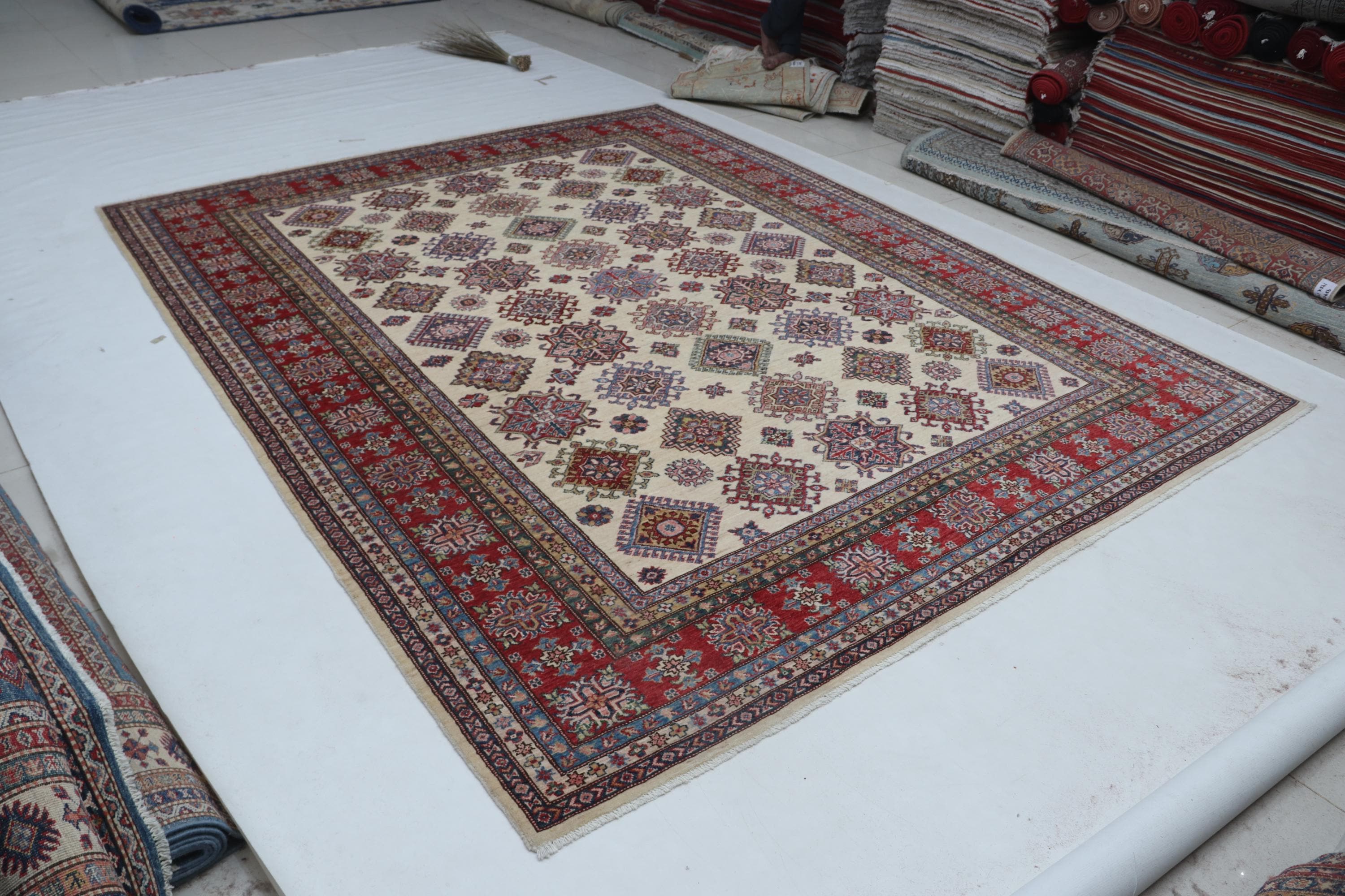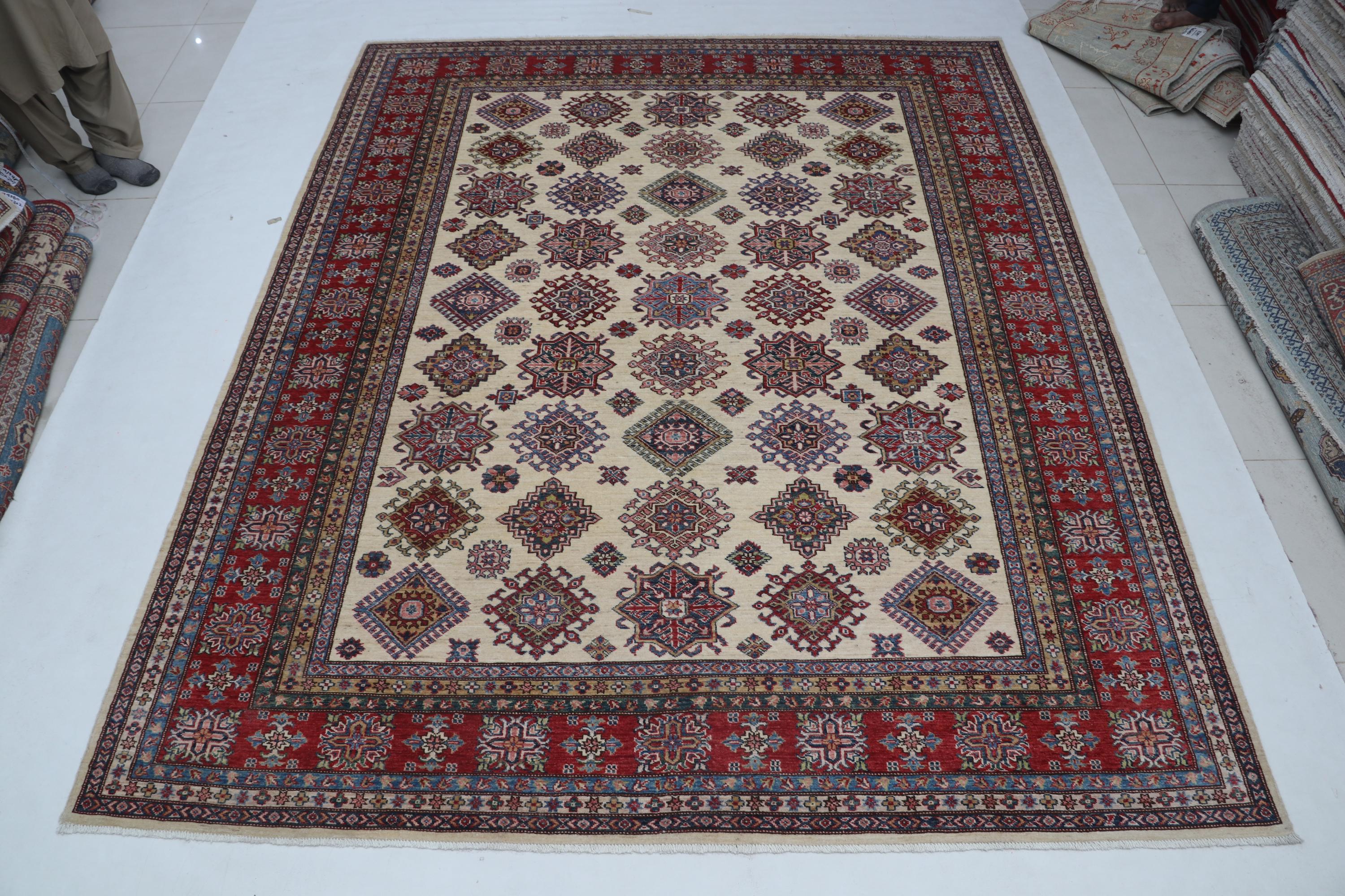 Designed in a Geomatrical style, it showcases Vegetable Dyeing tones for a unique look.