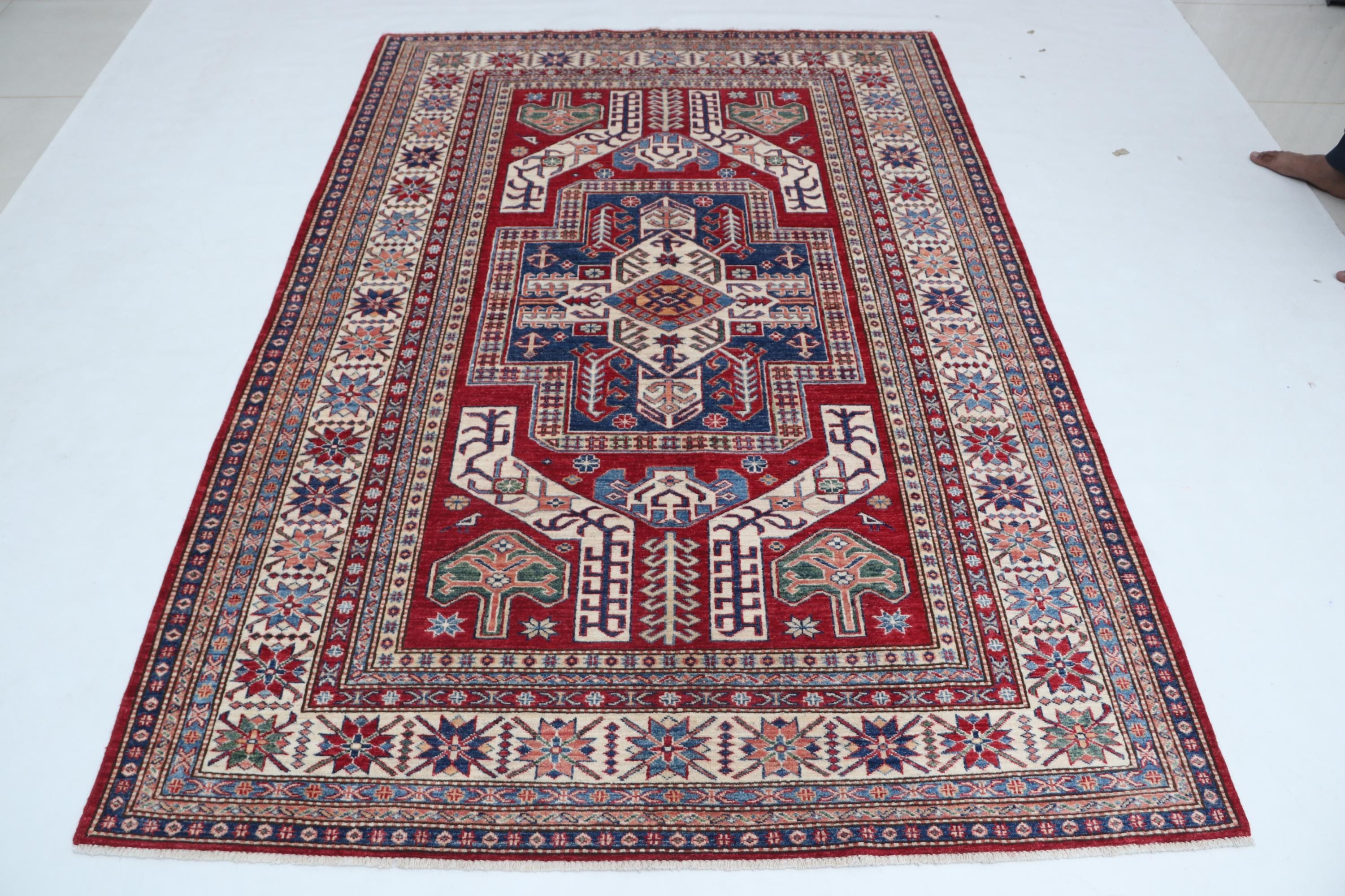 Designed in a Geomatrical style, it showcases Vegetable Dyeing tones for a unique look.