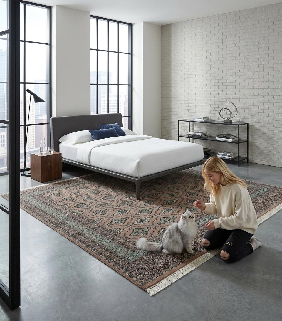 Expertly crafted with Cotton foundation and Worsted Wool pile,