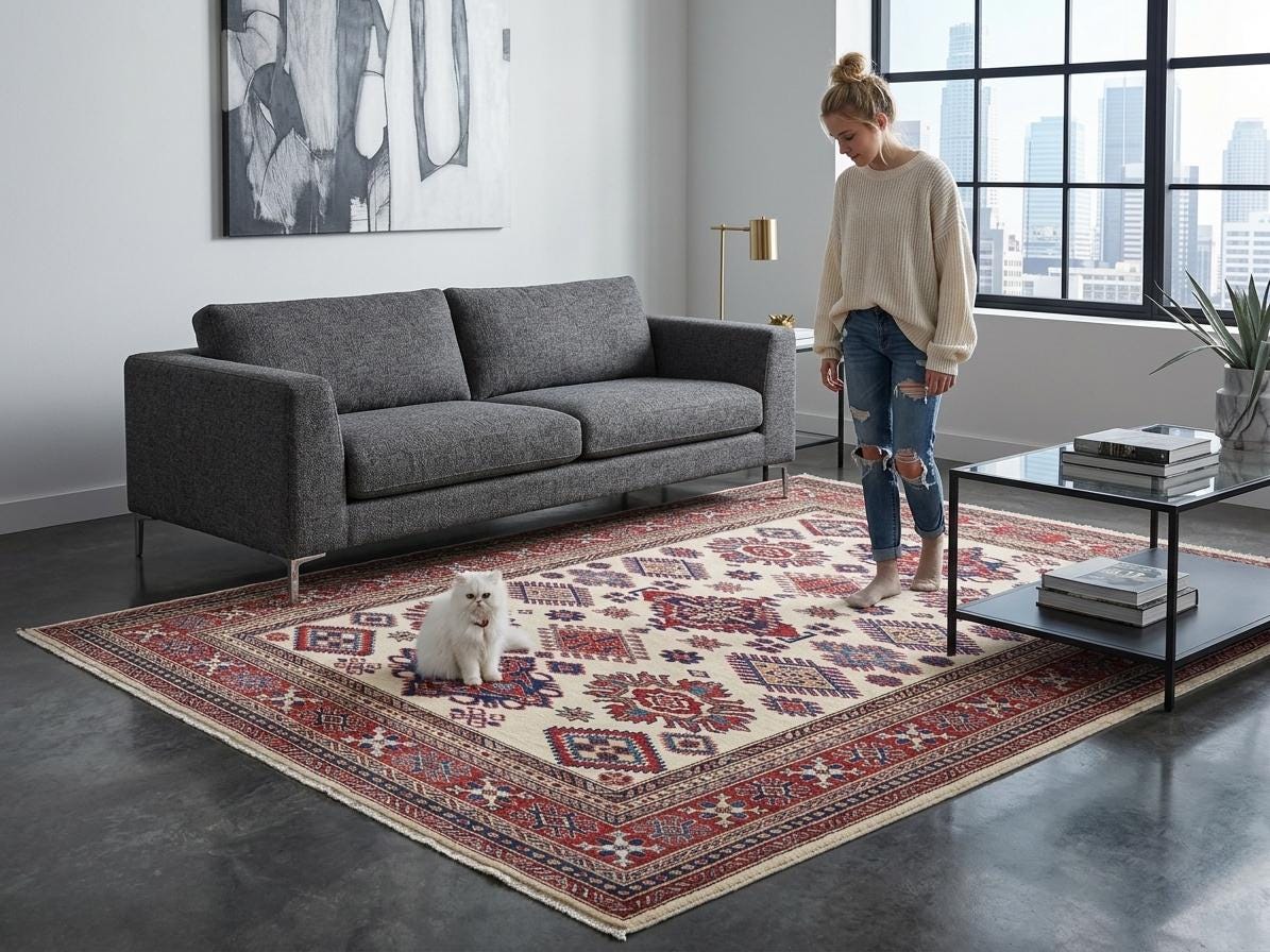 Add timeless charm to your home with this handmade Geomatrical rug.