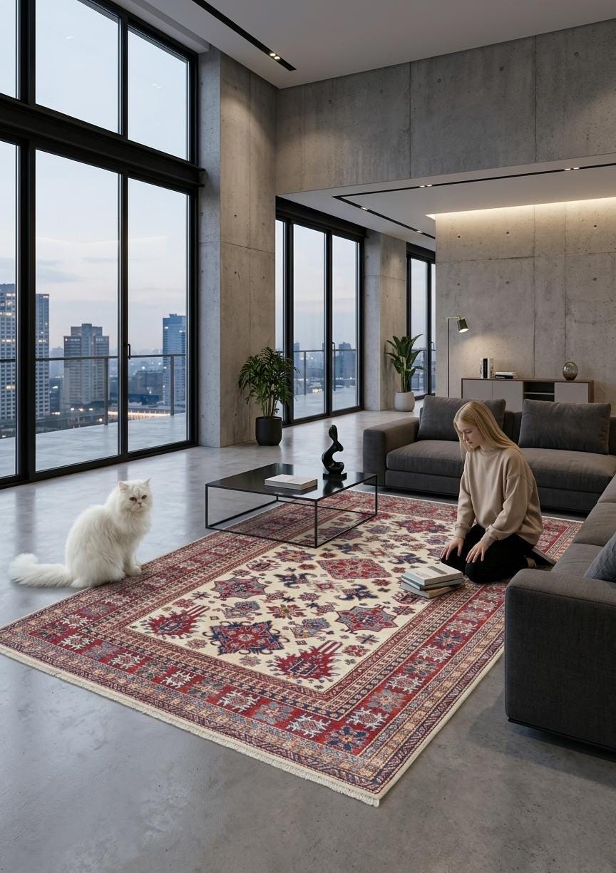 Add timeless charm to your home with this handmade Geomatrical rug.