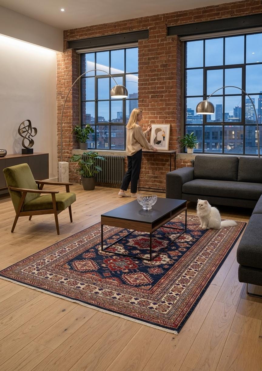 Add timeless charm to your home with this handmade Geomatrical rug.