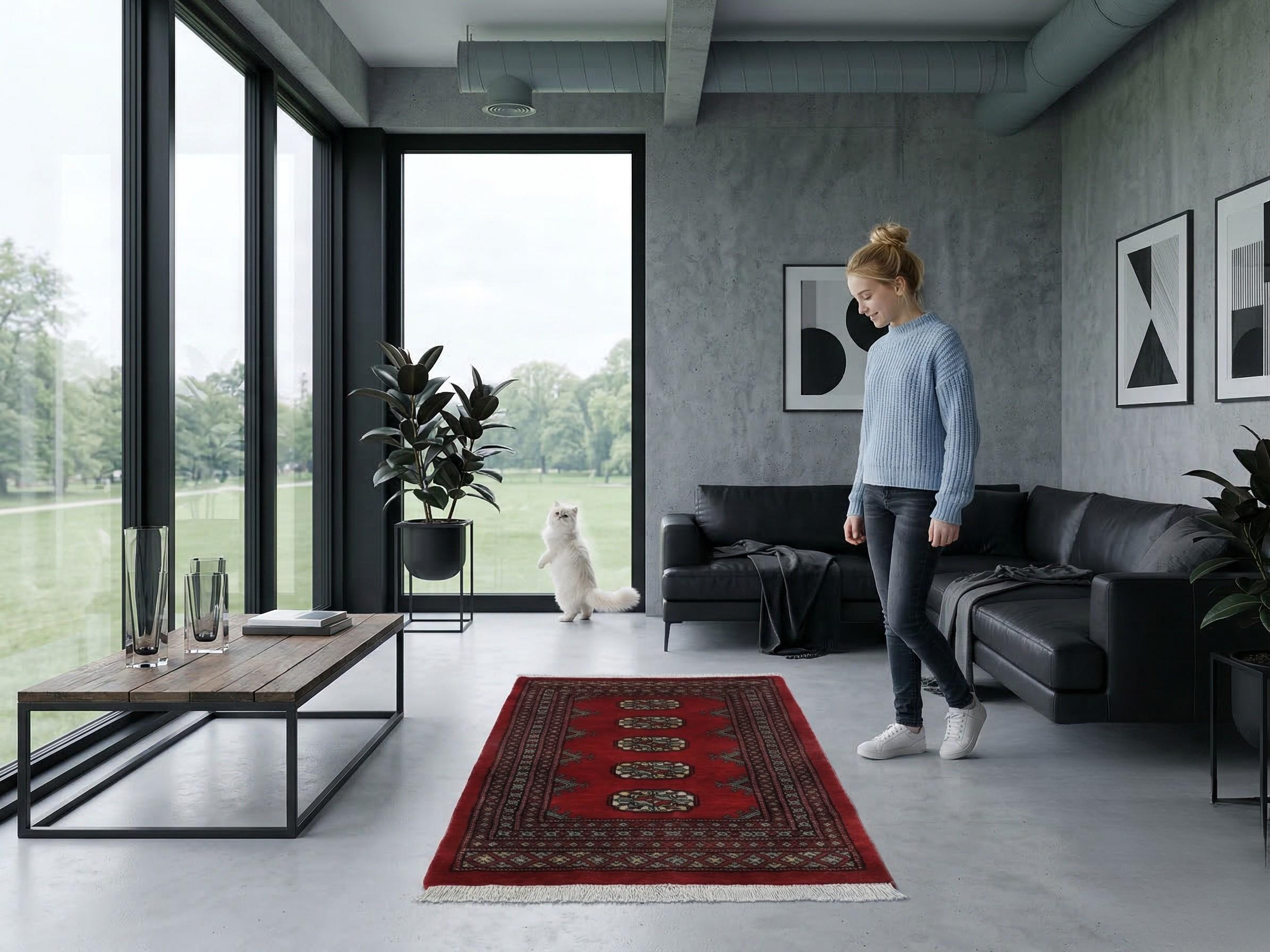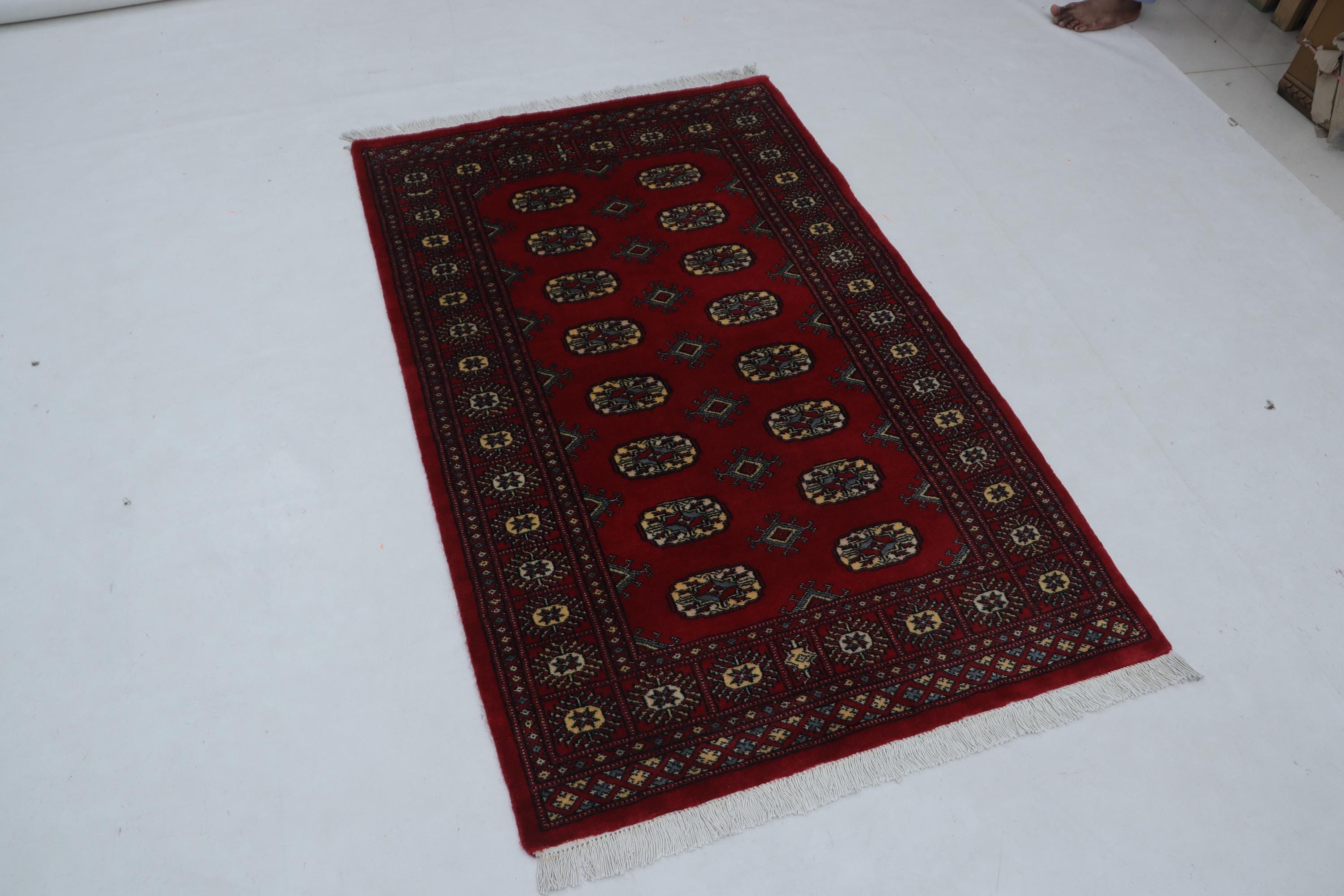 3.2 X 5.1 ft large Mori Bokhara rug, handmade veg dyes Cotton and Wool Rug, Pakhtaun Tribal rug in Red - Rugs for Living Room