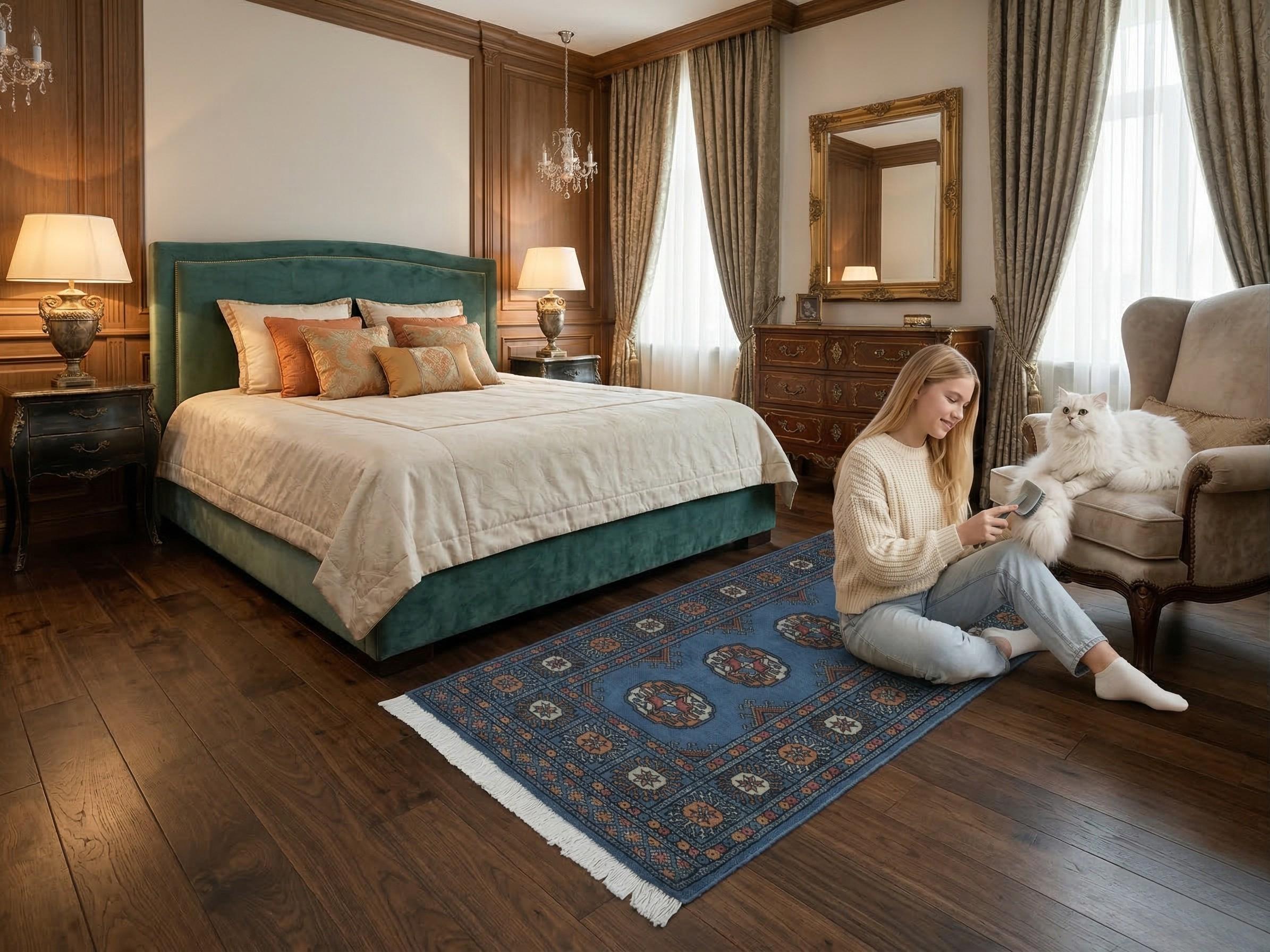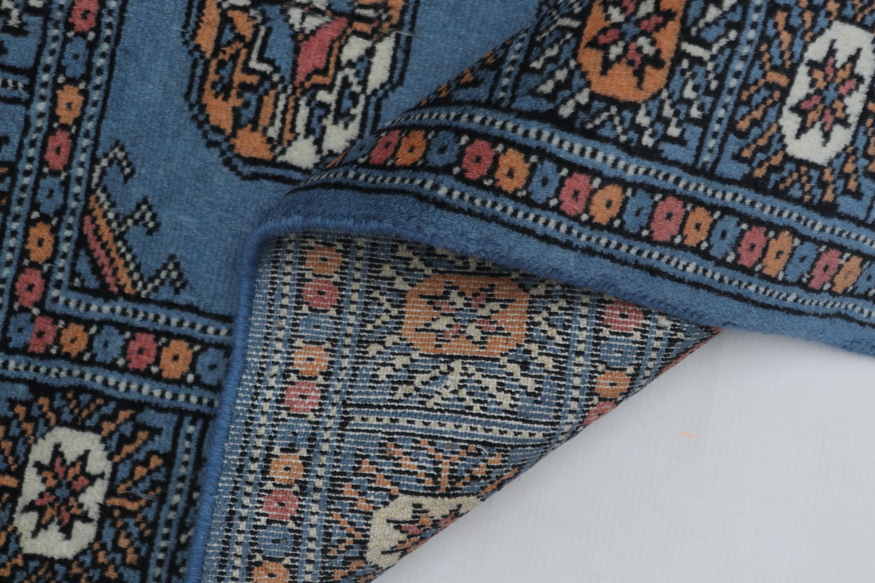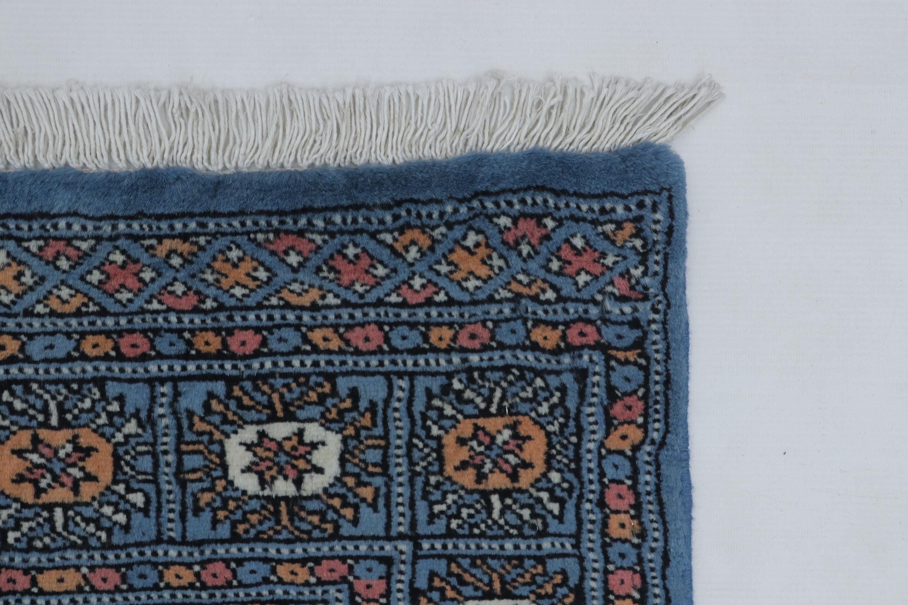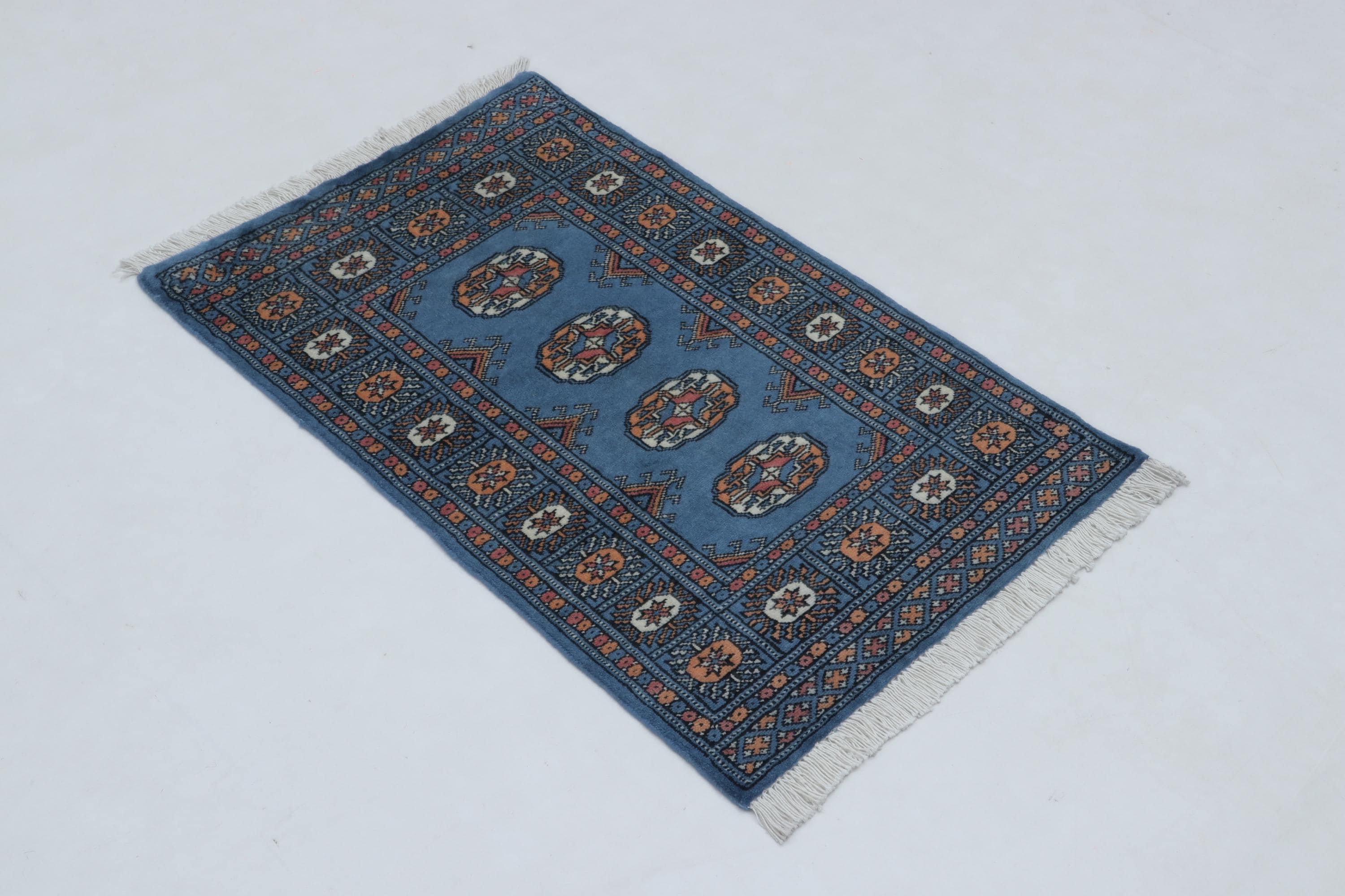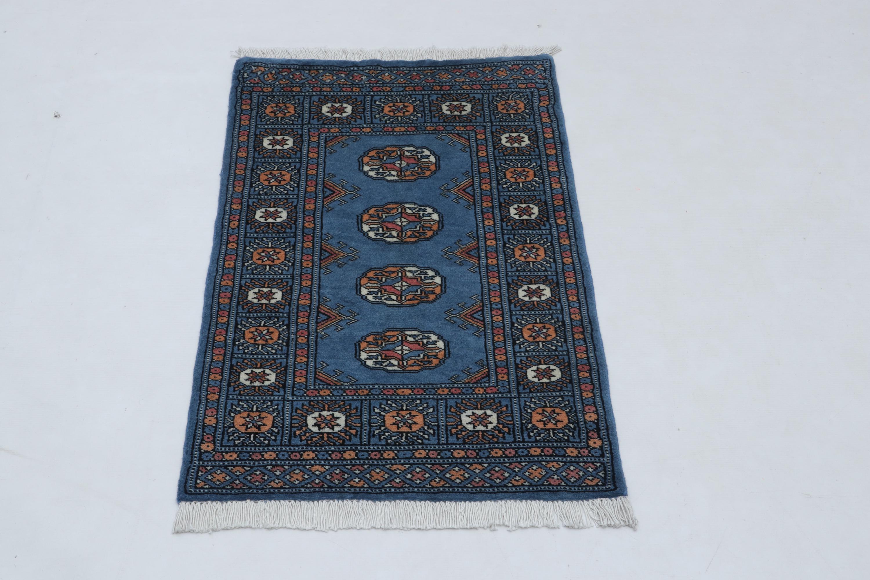 2.0 X 3.1 ft large Mori Bokhara rug, handmade veg dyes Cotton and Wool Rug, Pakhtaun Tribal rug in Blue - Rugs for Living Room