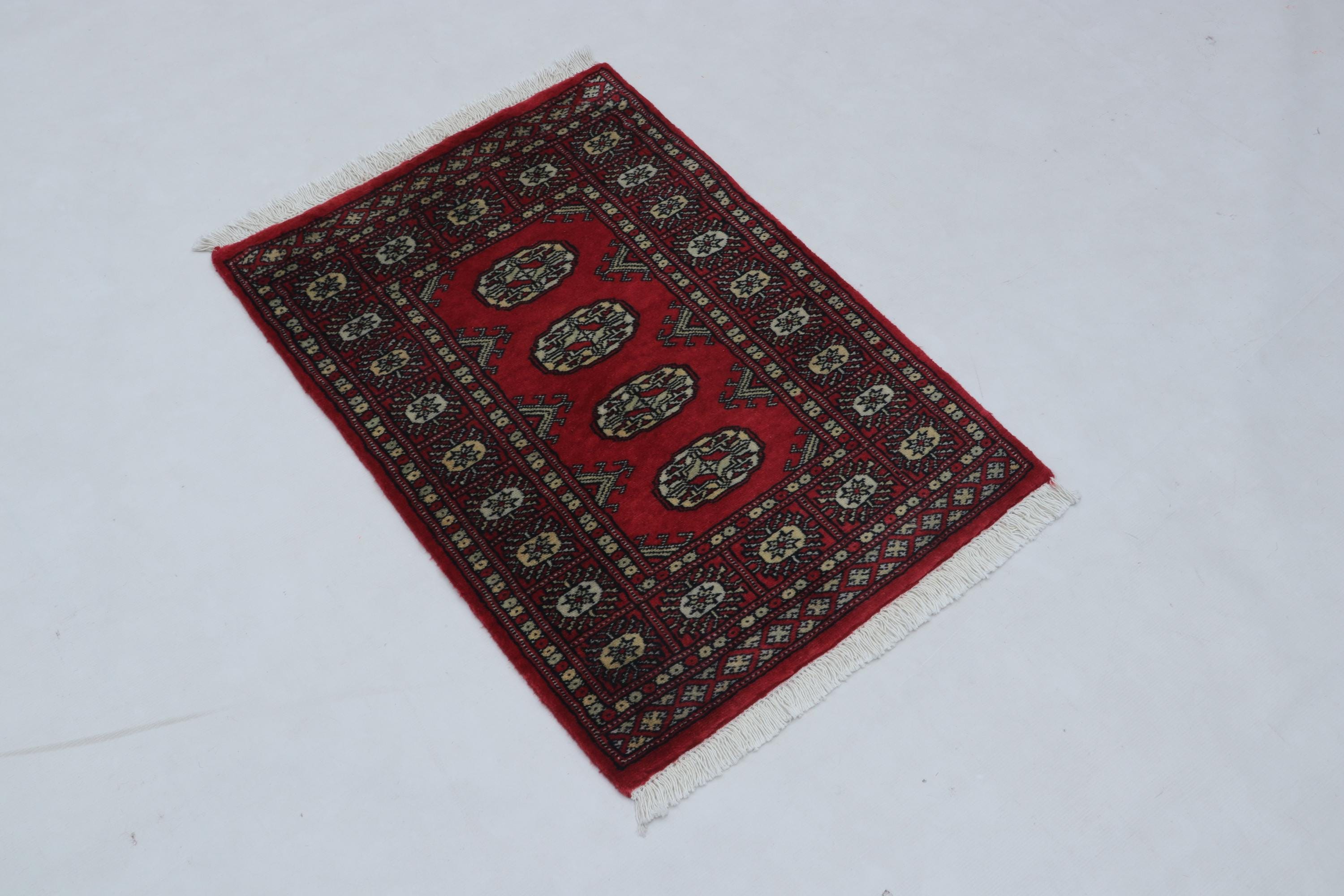 2.1 X 2.11 ft large Mori Bokhara rug, handmade veg dyes Cotton and Wool Rug, Pakhtaun Tribal rug in Red - Rugs for Living Room