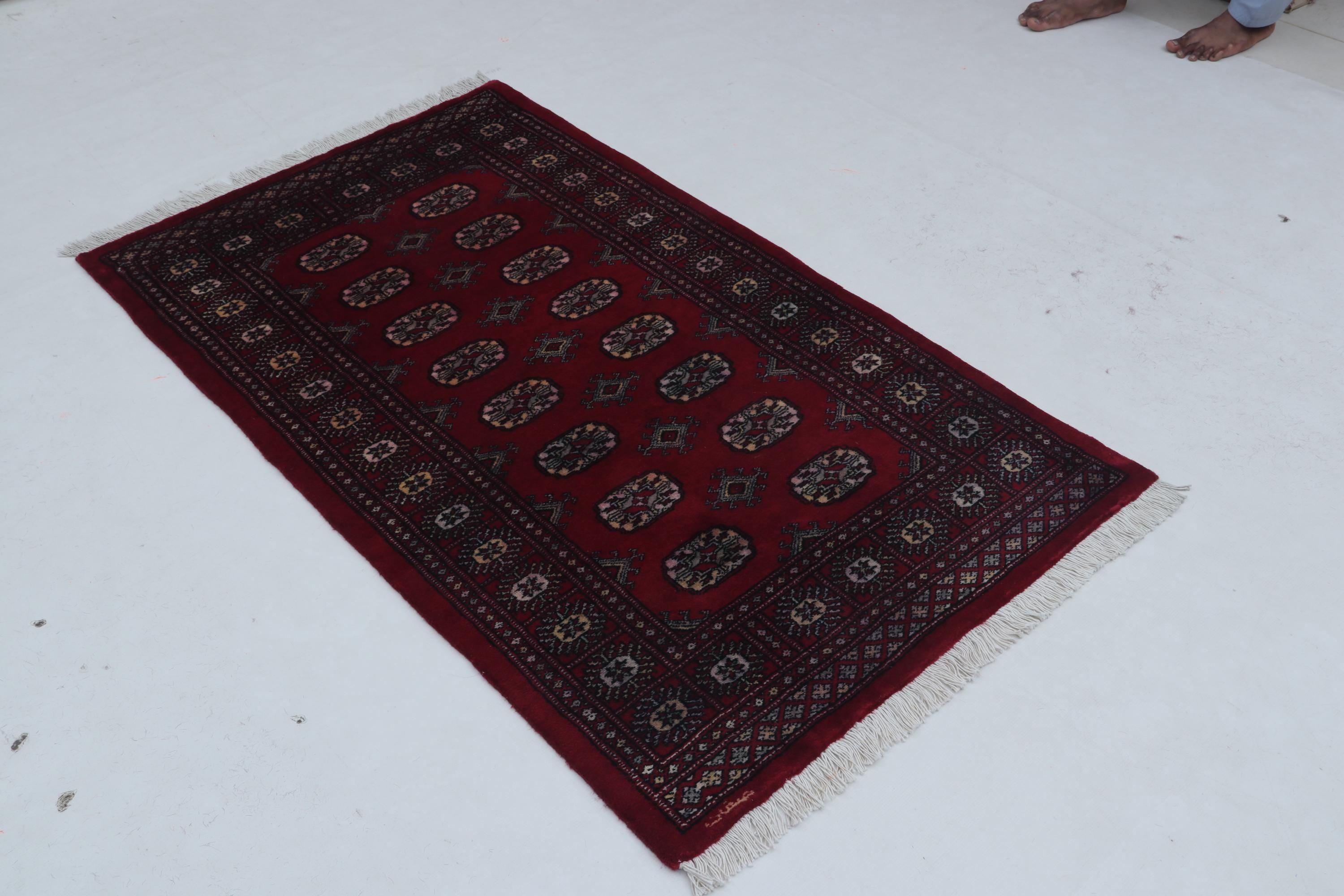 3.1 X 5.1 ft large Mori Bokhara rug, handmade veg dyes Cotton and Wool Rug, Pakhtaun Tribal rug in Red - Rugs for Living Room