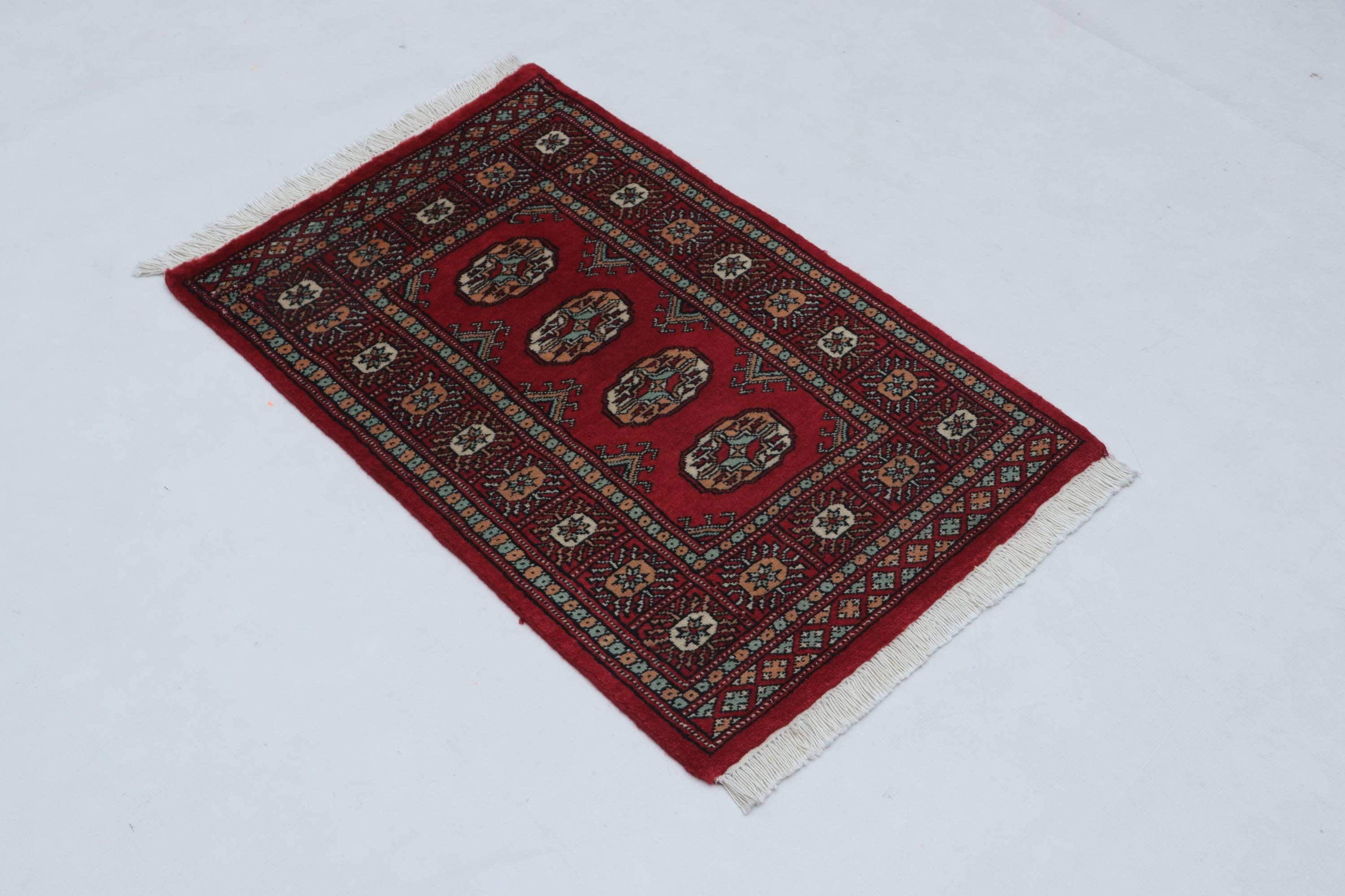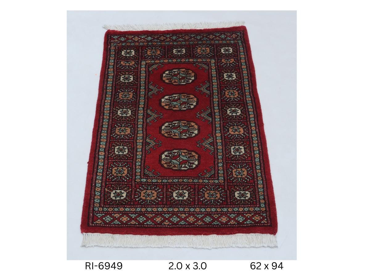 2.0 X 3.0 ft large Mori Bokhara rug, handmade veg dyes Cotton and Wool Rug, Pakhtaun Tribal rug in Red - Rugs for Living Room