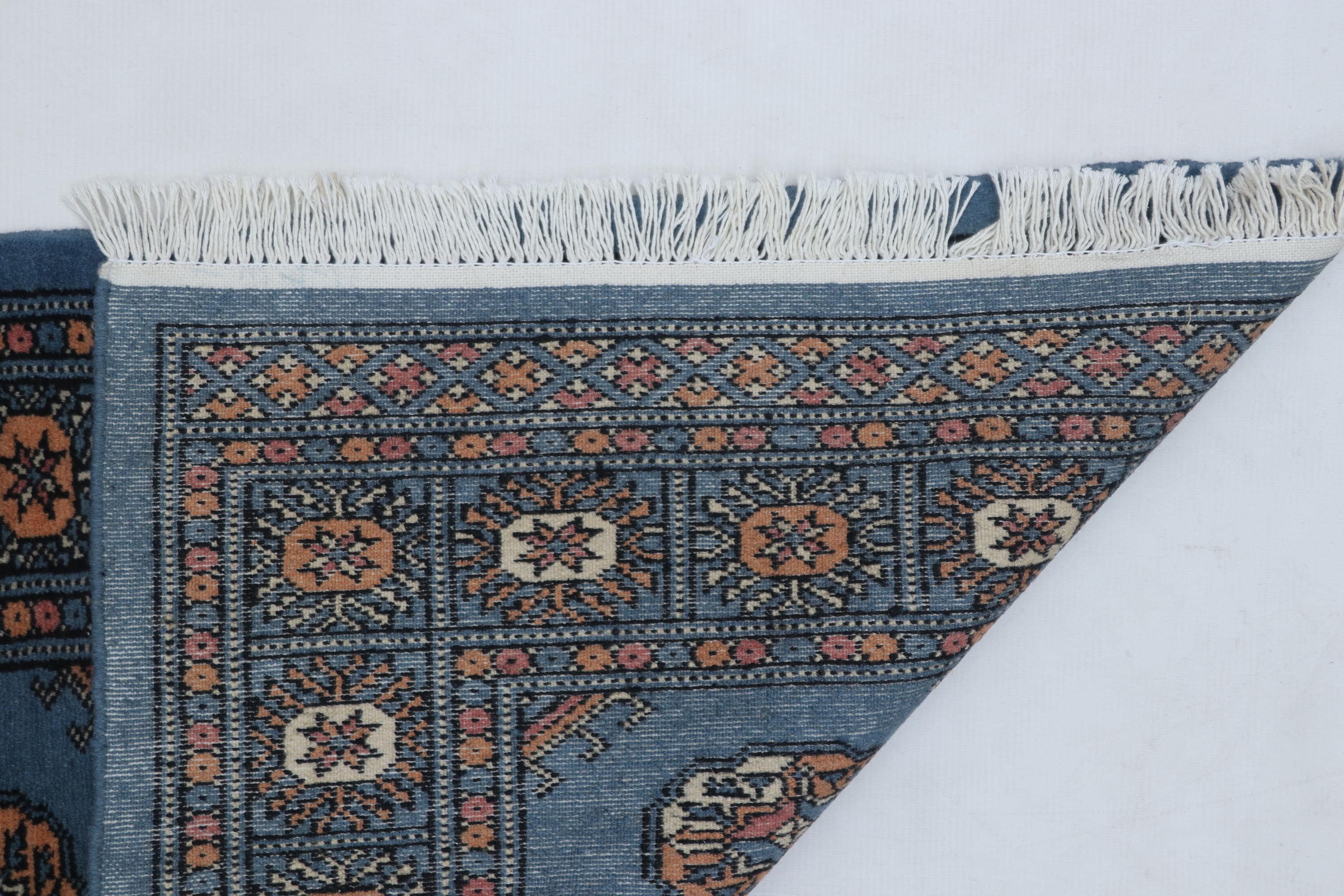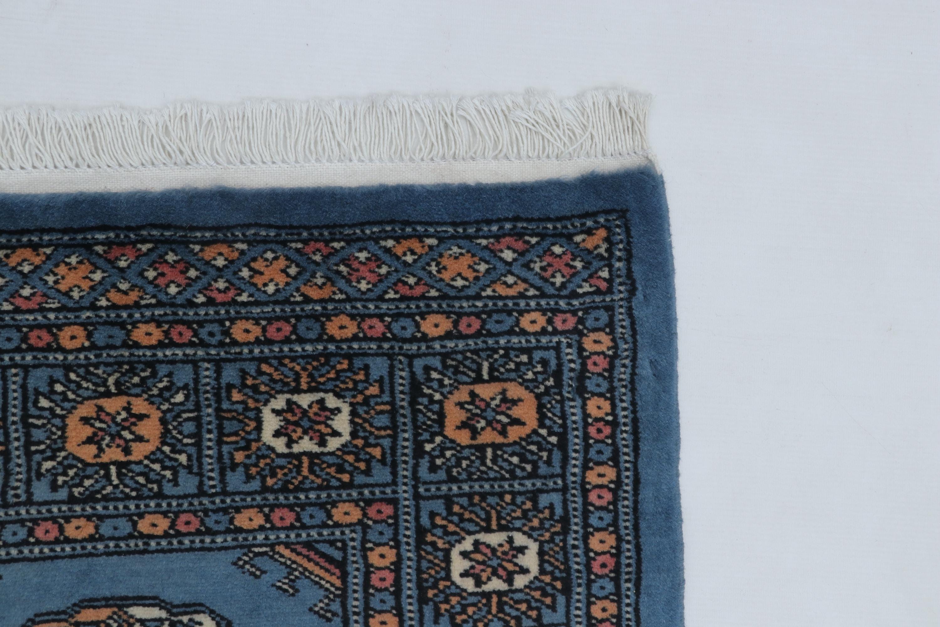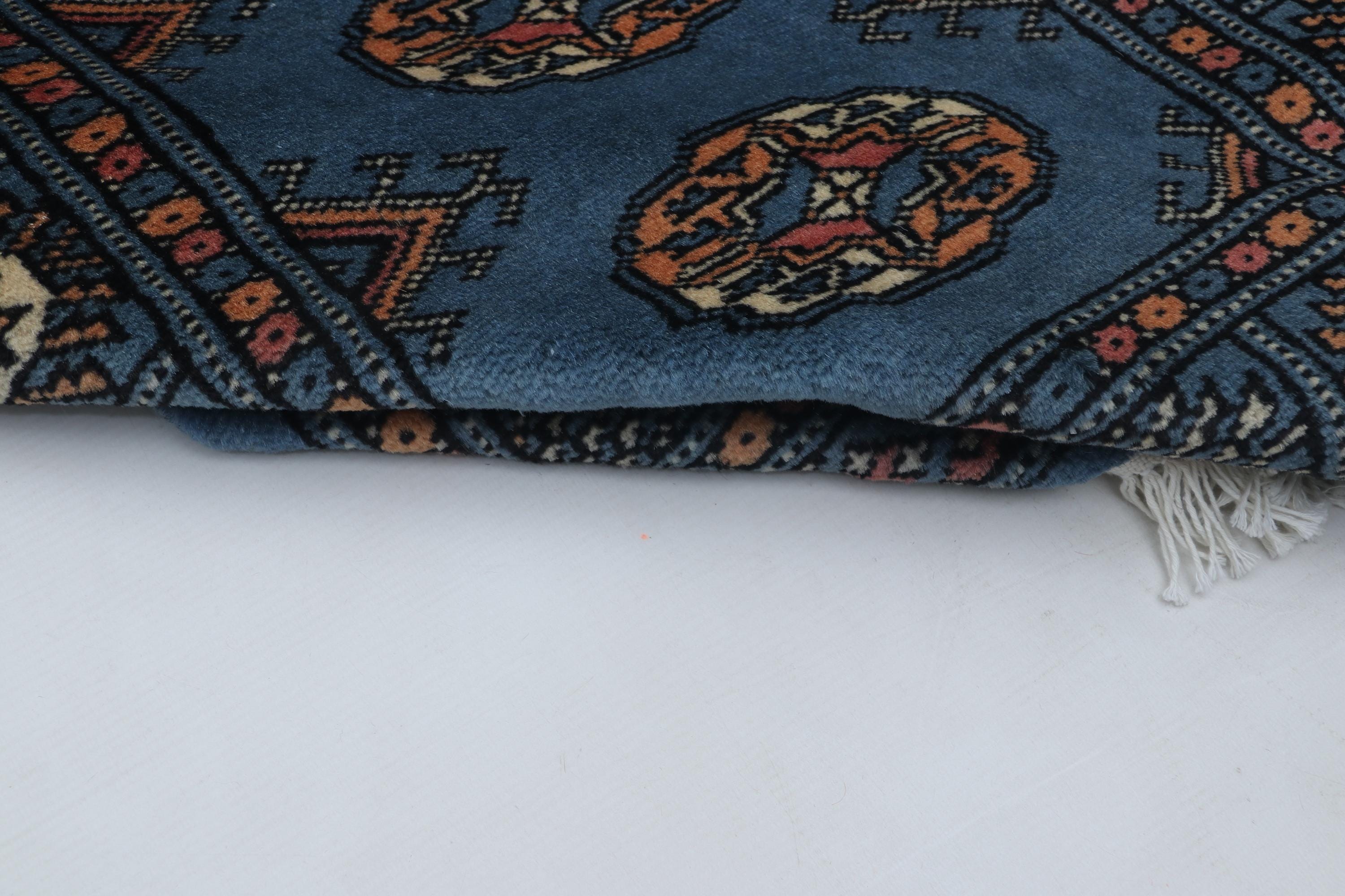 2.2 X 3.1 ft large Mori Bokhara rug, handmade veg dyes Cotton and Wool Rug, Pakhtaun Tribal rug in Blue - Rugs for Living Room