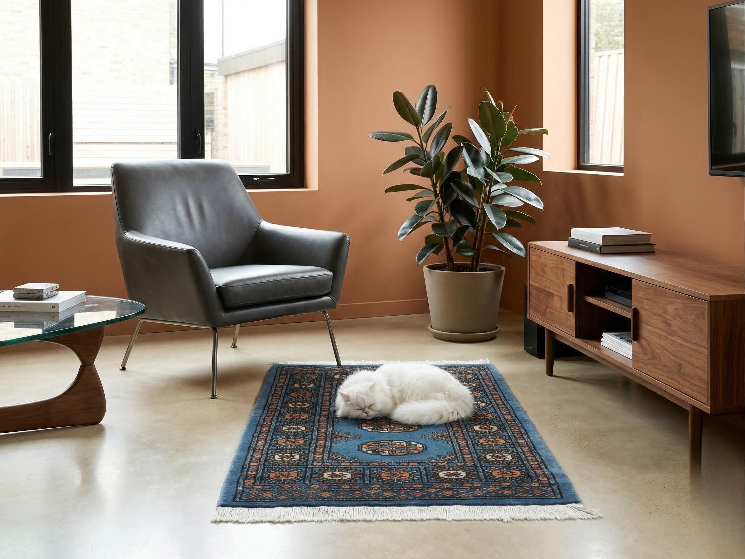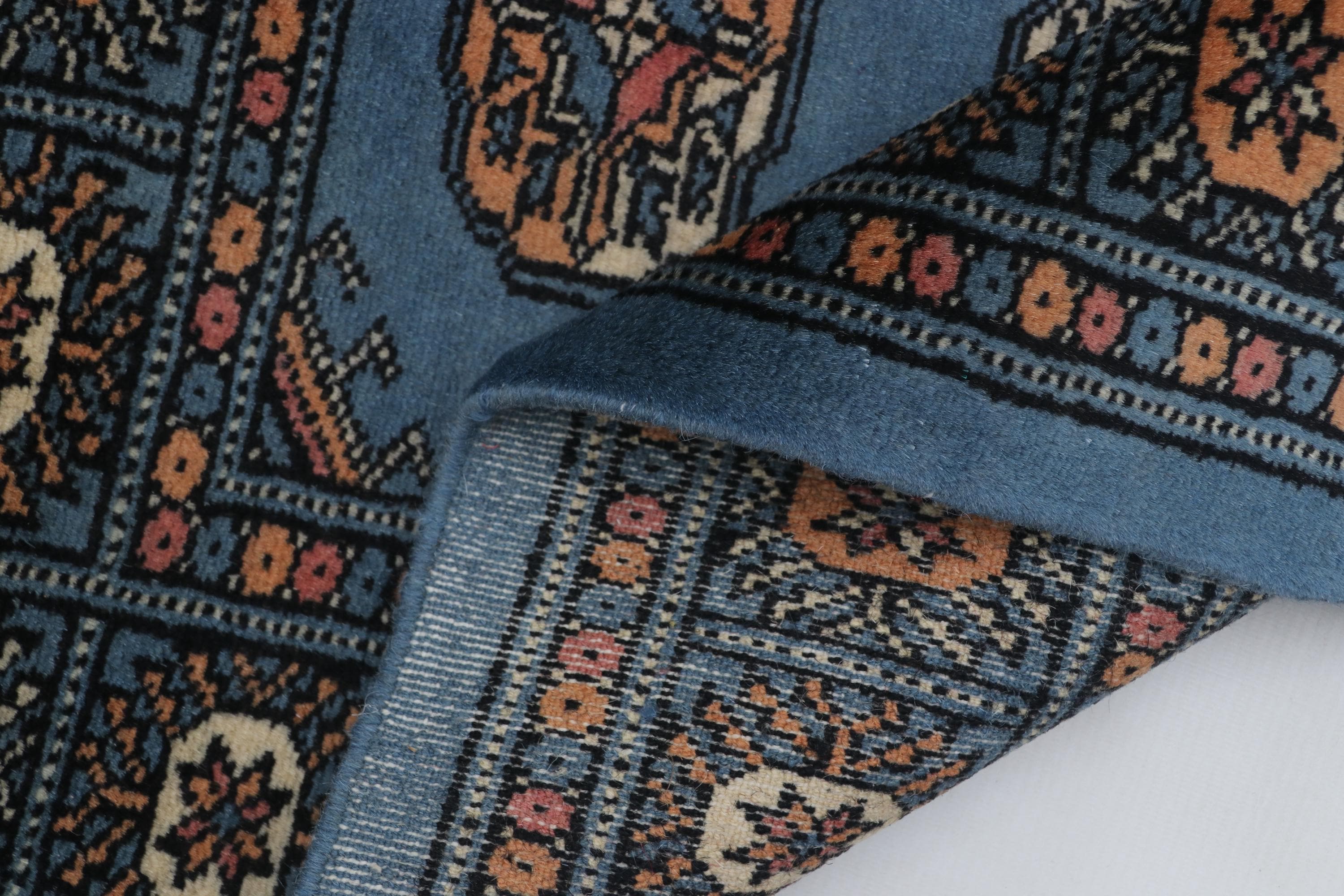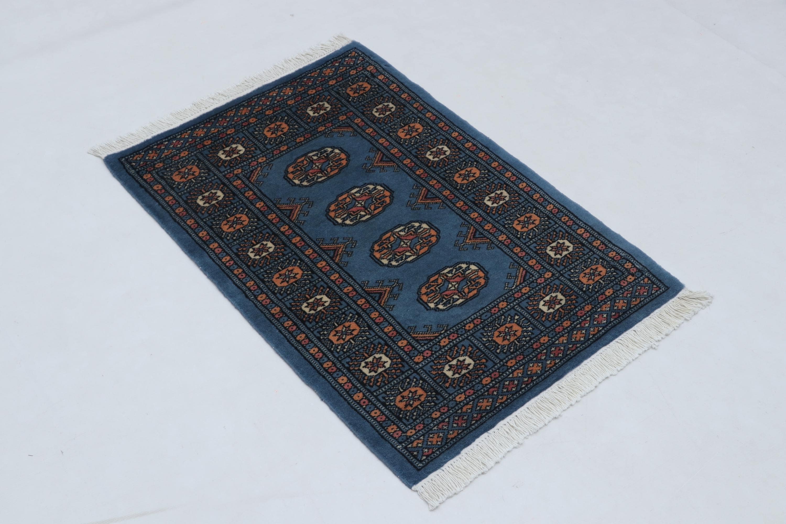 2.2 X 3.1 ft large Mori Bokhara rug, handmade veg dyes Cotton and Wool Rug, Pakhtaun Tribal rug in Blue - Rugs for Living Room