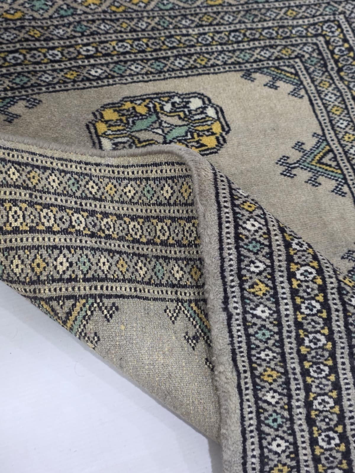 2.0 X 3.0 ft large Mori Bokhara rug, handmade veg dyes Cotton and Wool Rug, Pakhtaun Tribal rug in Gray - Rugs for Living Room