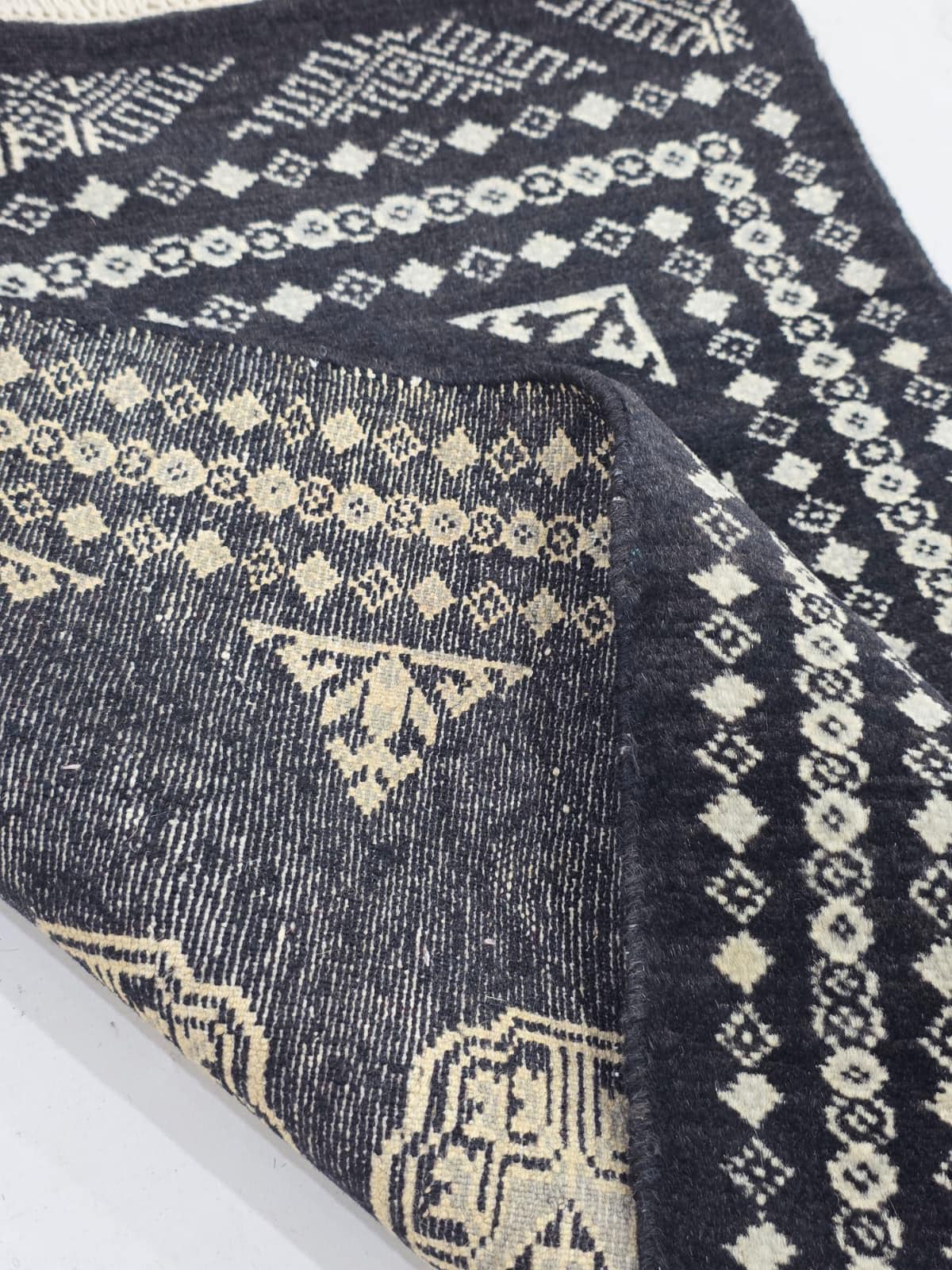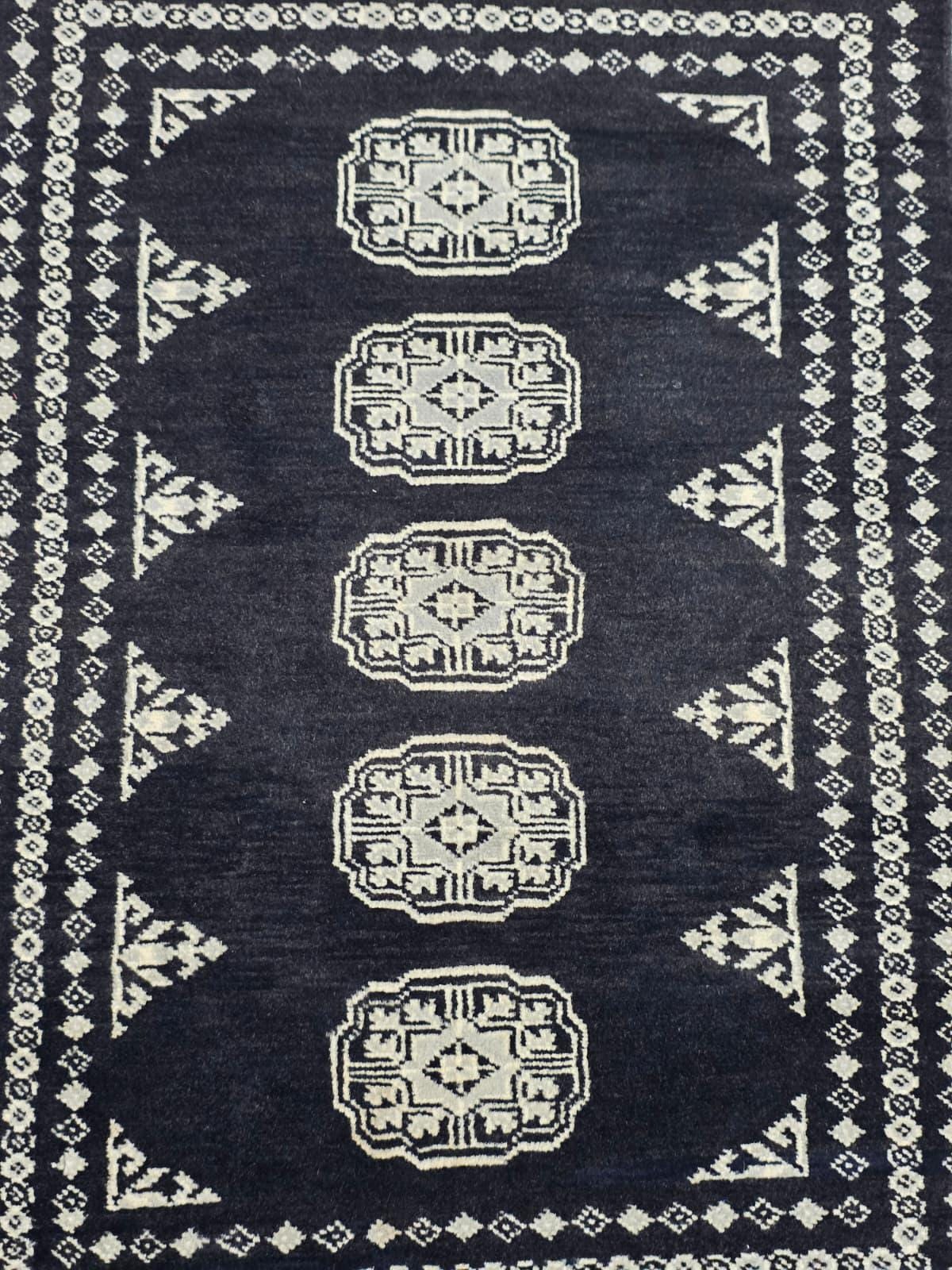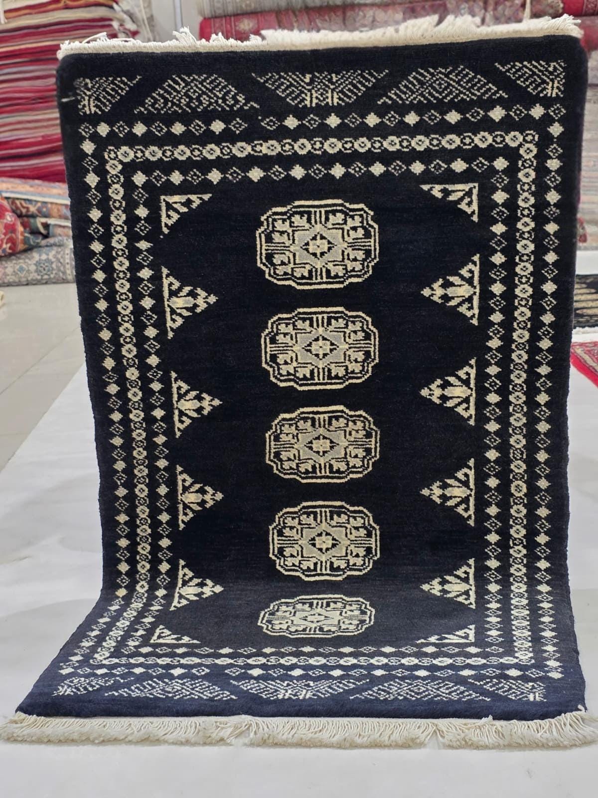 2.0 x 3.3 ft large Mori Bokhara rug, handmade veg dyes Cotton and Wool Rug, Pakhtaun Tribal rug in Black - Rugs for Living Room