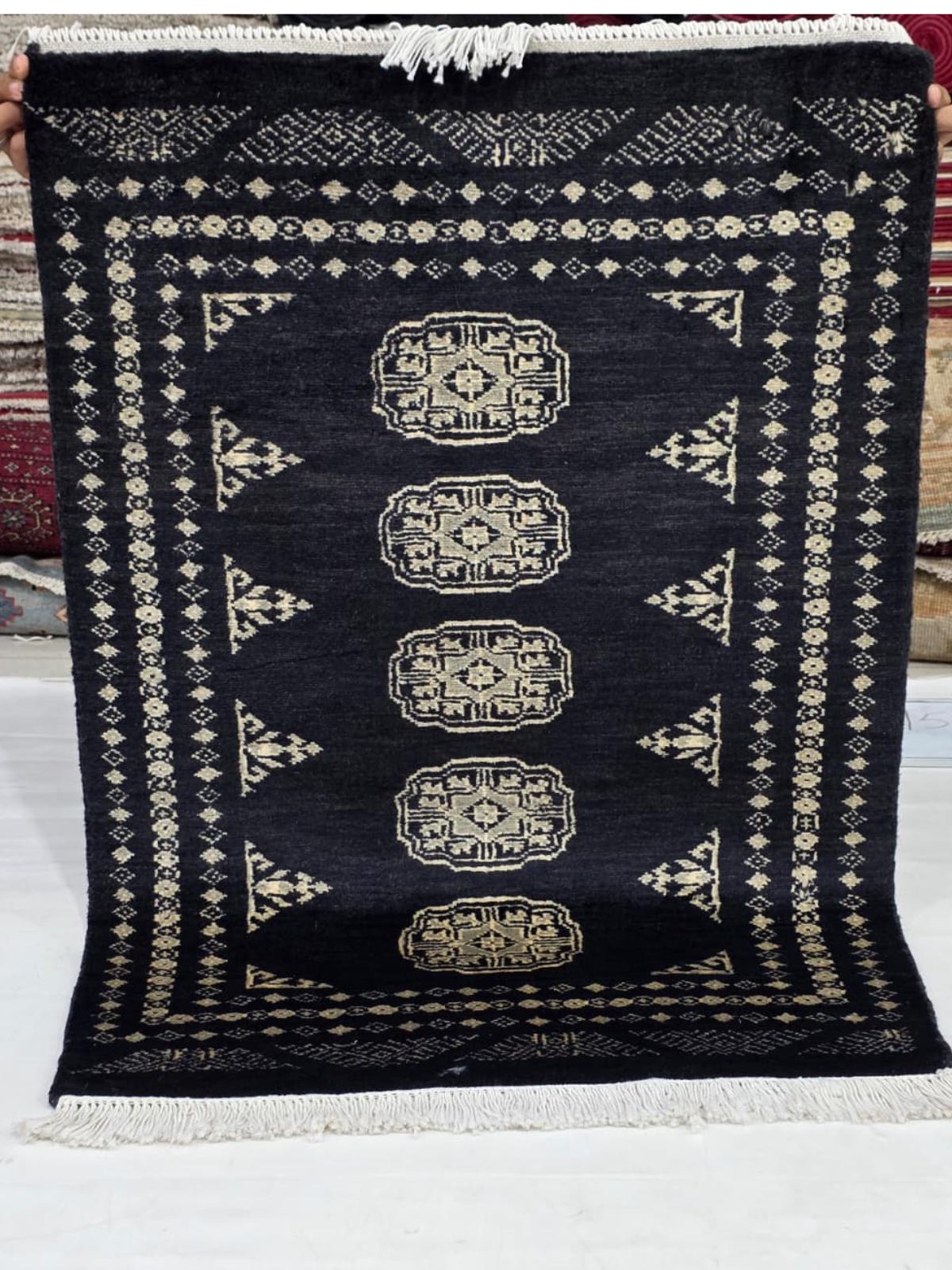 2.3 X 3.2 ft large Mori Bokhara rug, handmade veg dyes Cotton and Wool Rug, Pakhtaun Tribal rug in Black - Rugs for Living Room