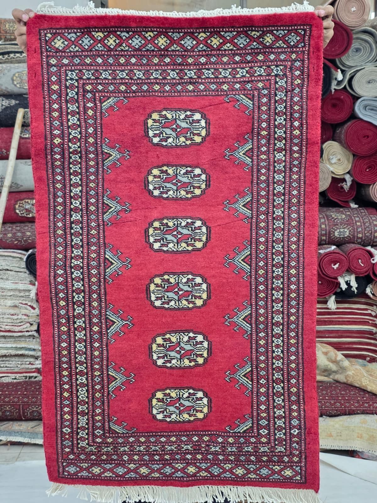 2.0 x 3.5 ft large Mori Bokhara rug, handmade veg dyes Cotton and Wool Rug, Pakhtaun Tribal rug in Red - Rugs for Living Room