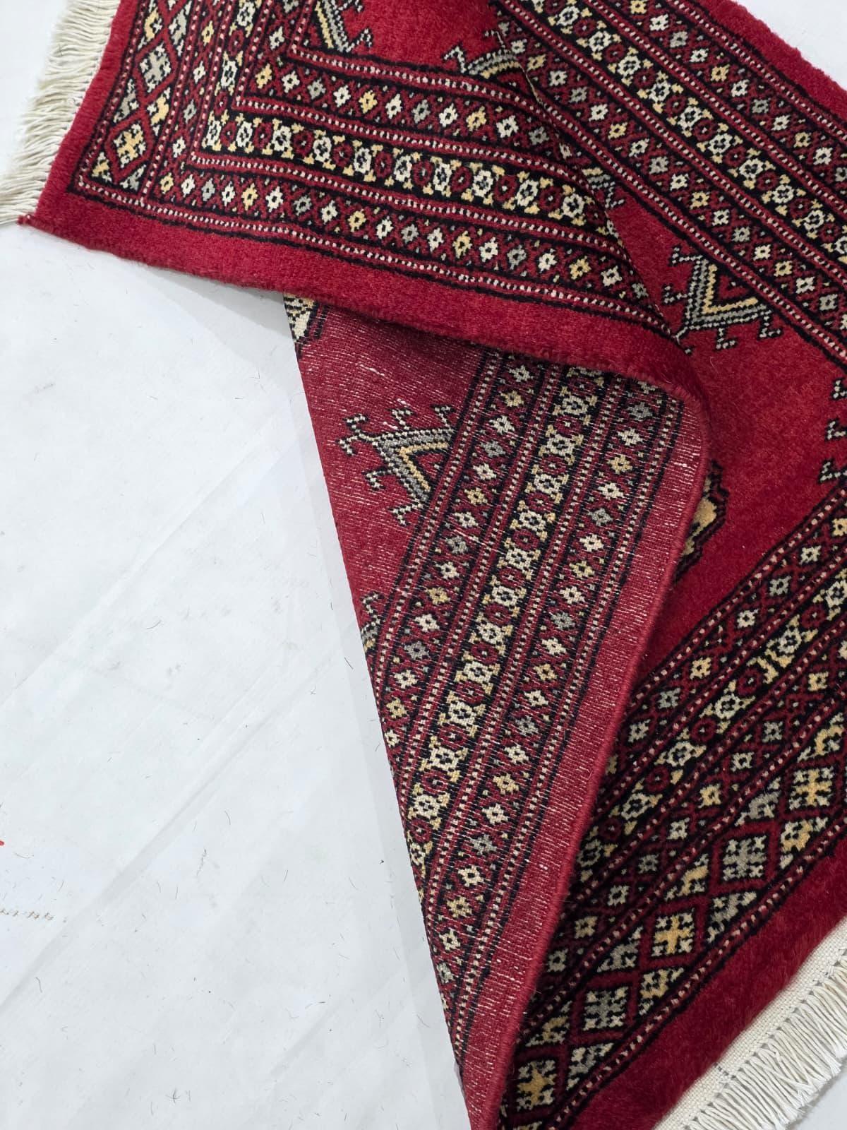 2.0 X 3.0 ft large Mori Bokhara rug, handmade veg dyes Cotton and Wool Rug, Pakhtaun Tribal rug in Red - Rugs for Living Room