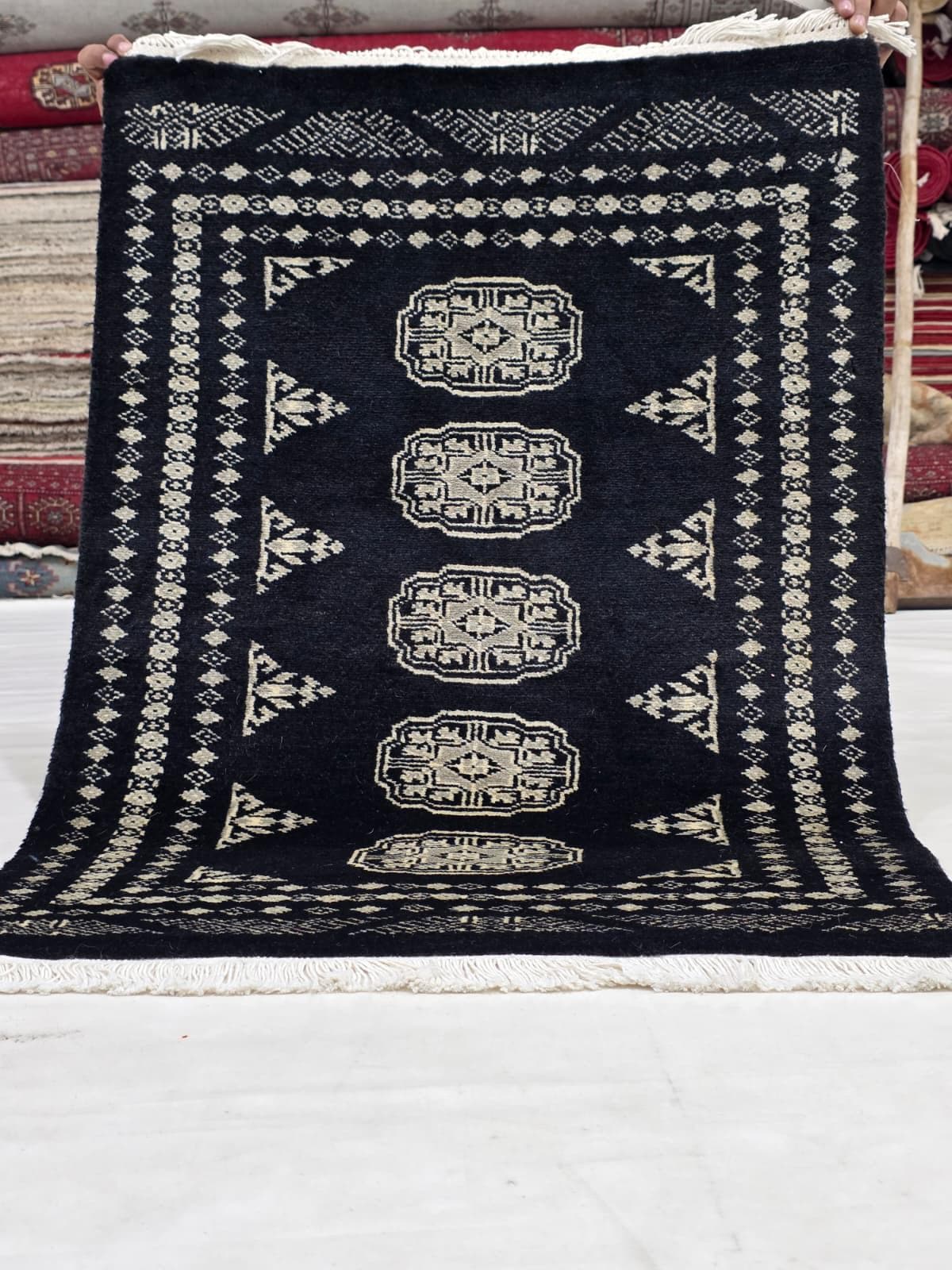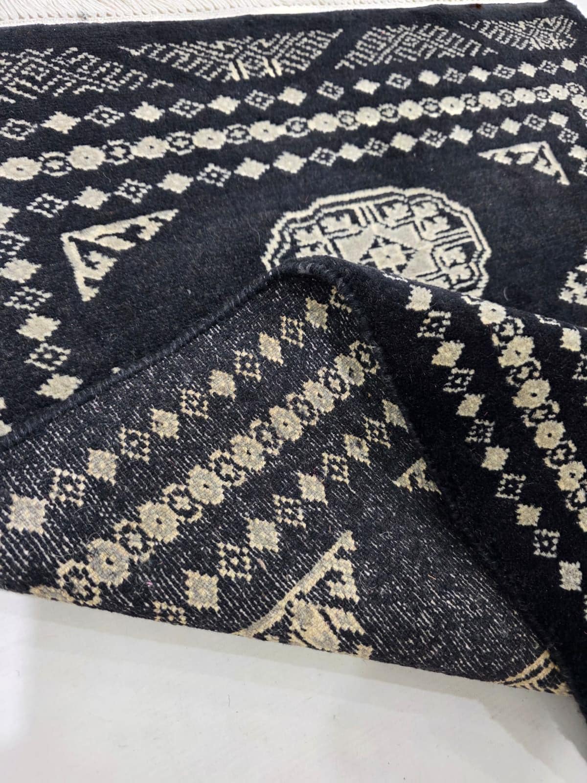 2.1 X 3.0 ft large Mori Bokhara rug, handmade veg dyes Cotton and Wool Rug, Pakhtaun Tribal rug in Black - Rugs for Living Room