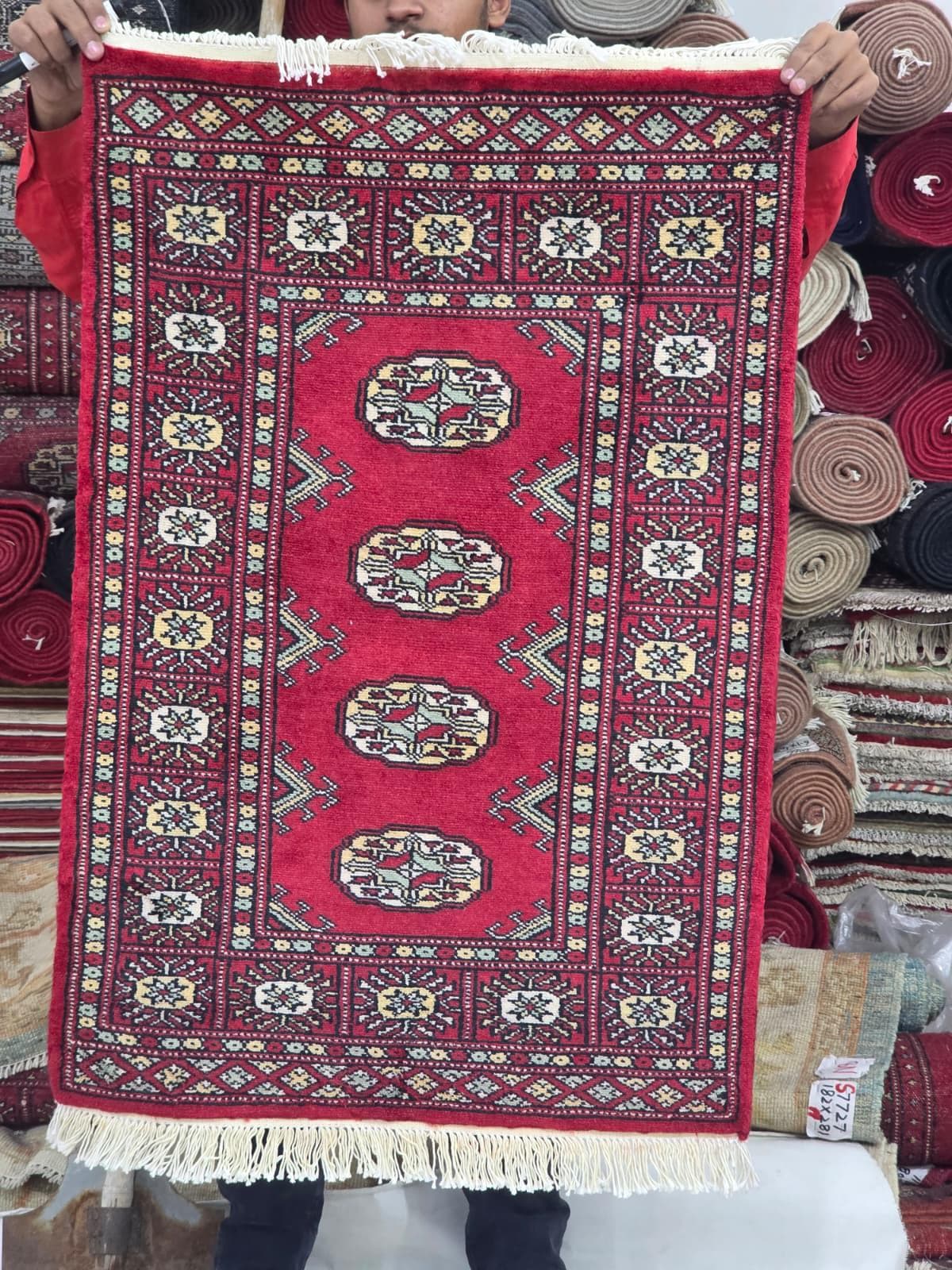 2.0 X 3.0 ft large Mori Bokhara rug, handmade veg dyes Cotton and Wool Rug, Pakhtaun Tribal rug in Red - Rugs for Living Room