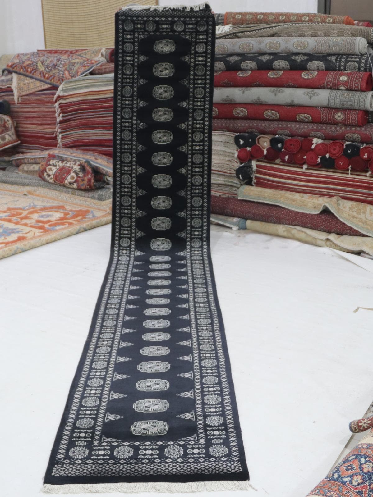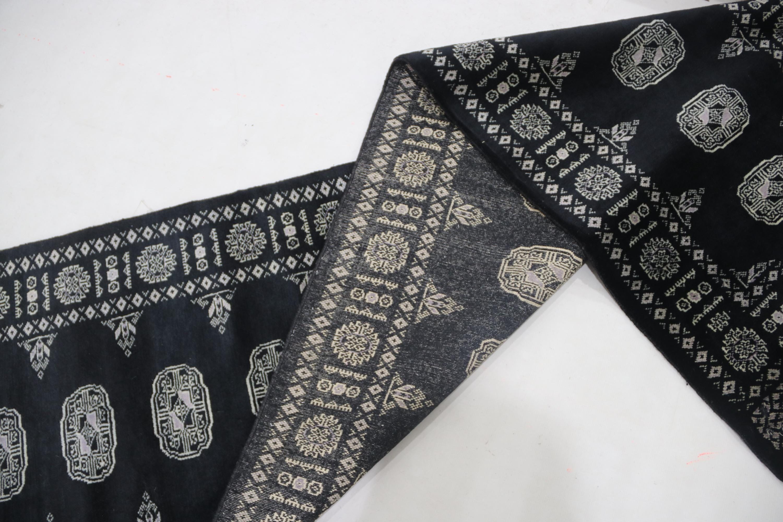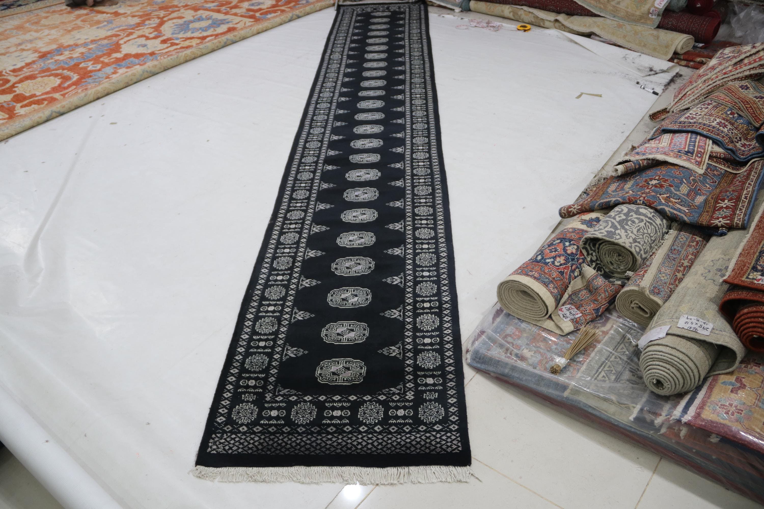 3 X 16 ft large Mori Bokhara rug, handmade veg dyes Cotton and Wool Rug, Pakhtaun Tribal rug in Black - Rugs for Living Room