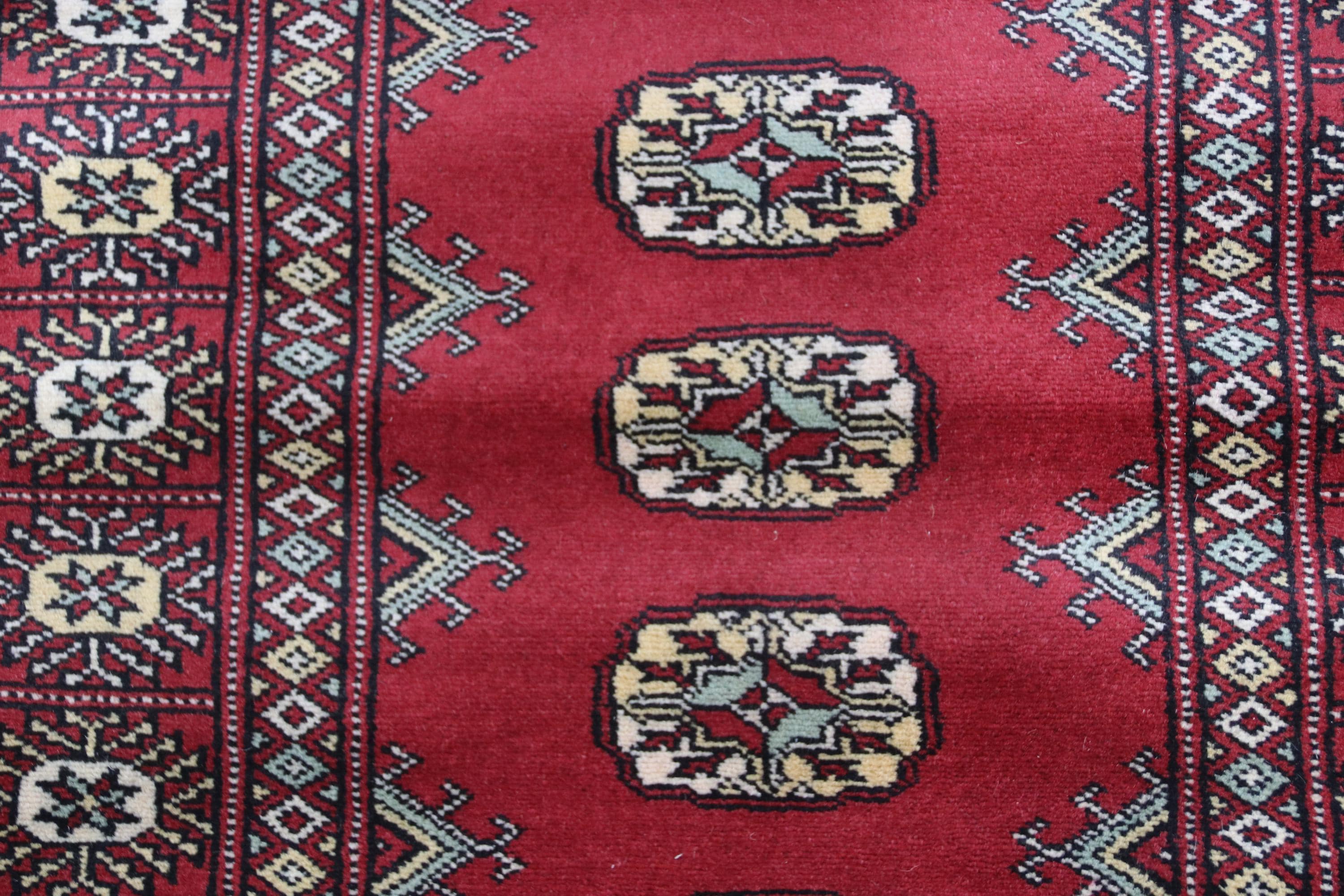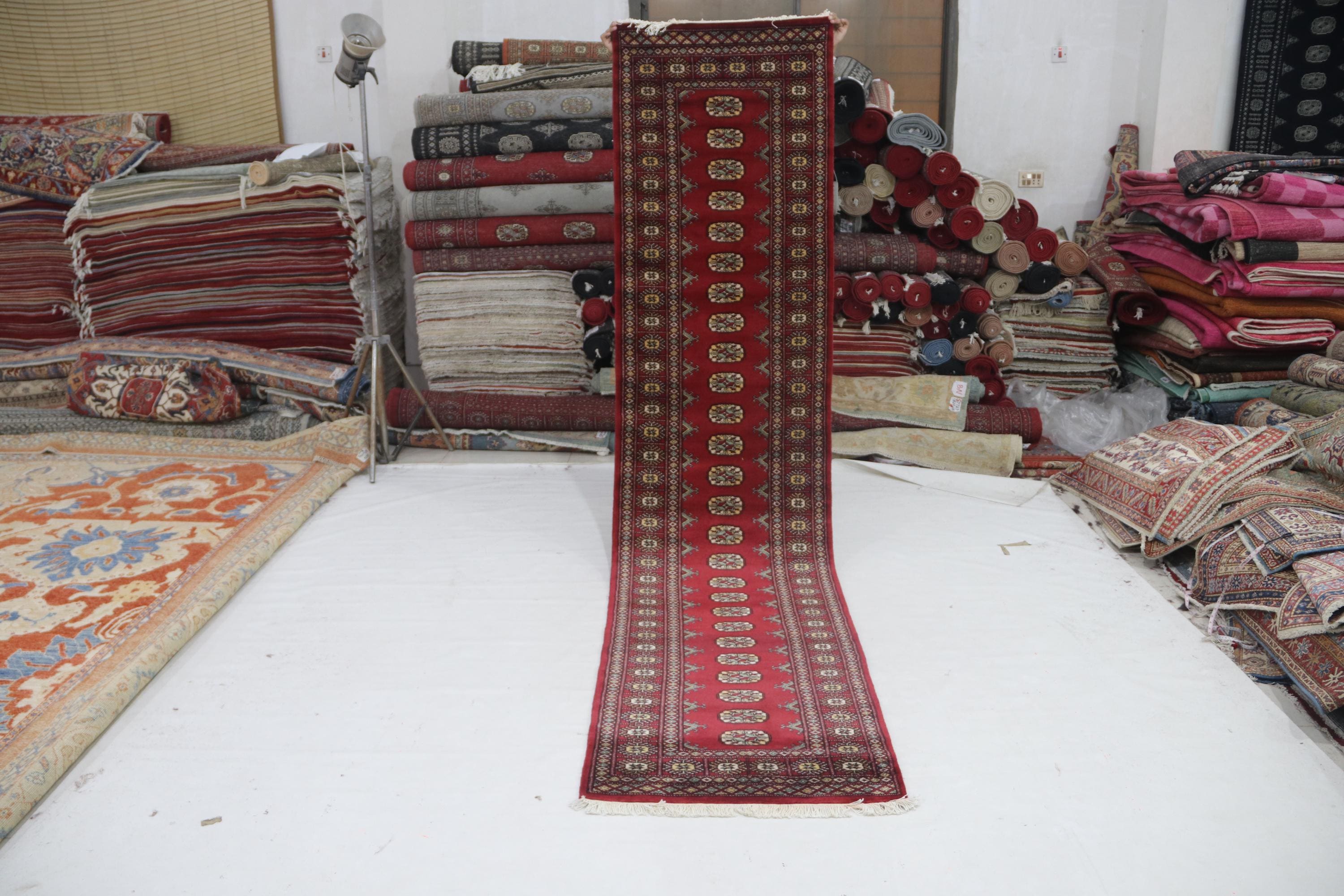 2.7 X 11.1 ft large Mori Bokhara rug, handmade veg dyes Cotton and Wool Rug, Pakhtaun Tribal rug in Red - Rugs for Living Room
