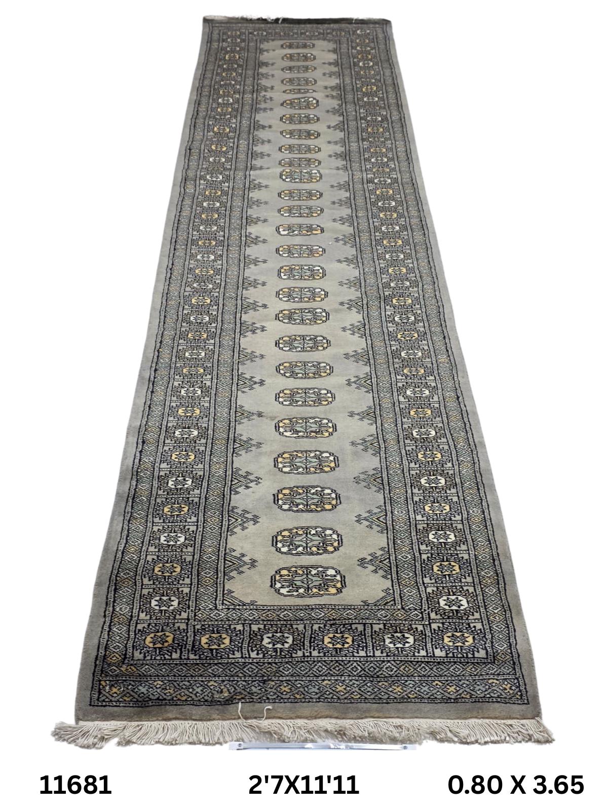 2.7 X 11.11 ft large Mori Bokhara rug, handmade veg dyes Cotton and Wool Rug, Pakhtaun Tribal rug in Gray - Rugs for Living Room
