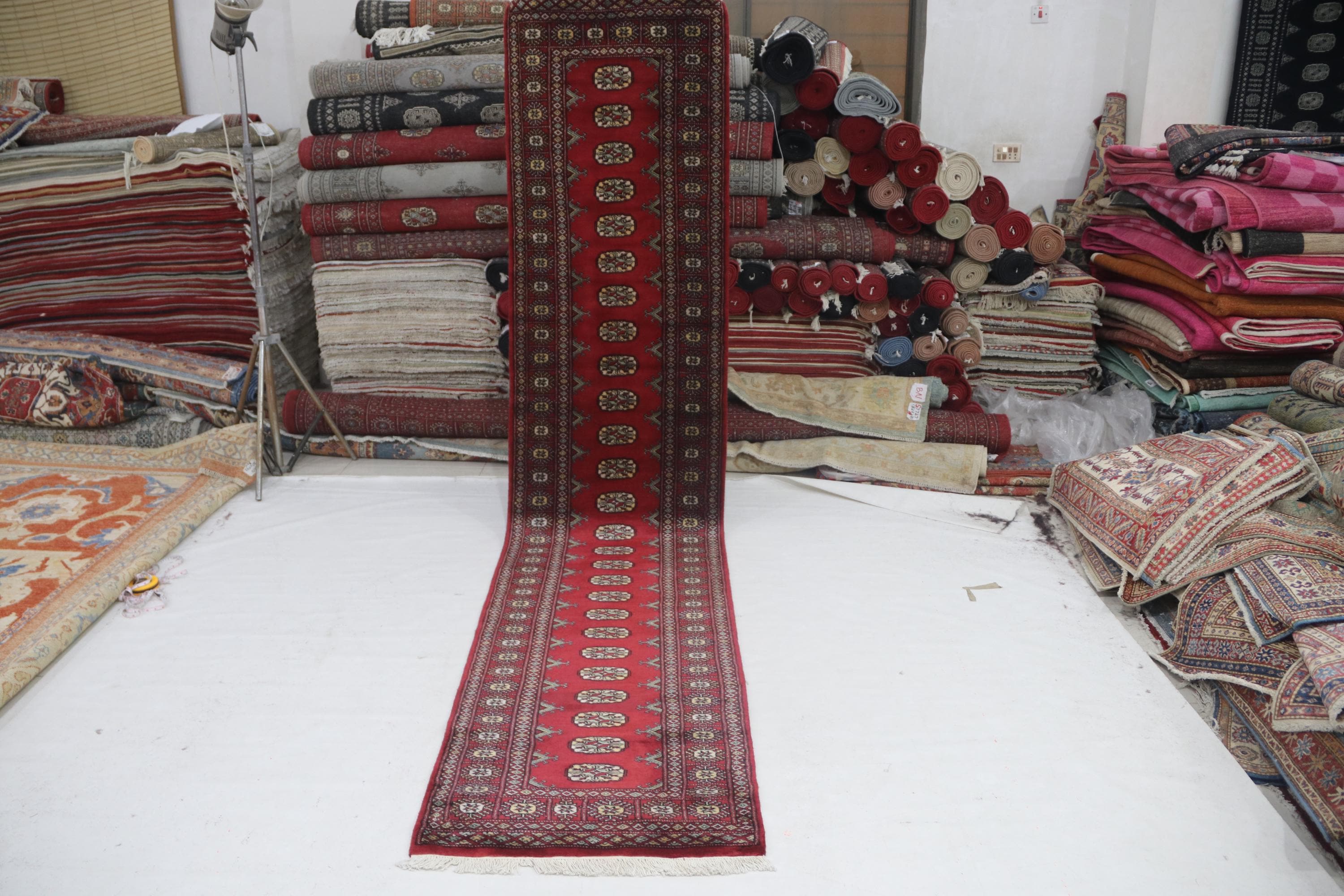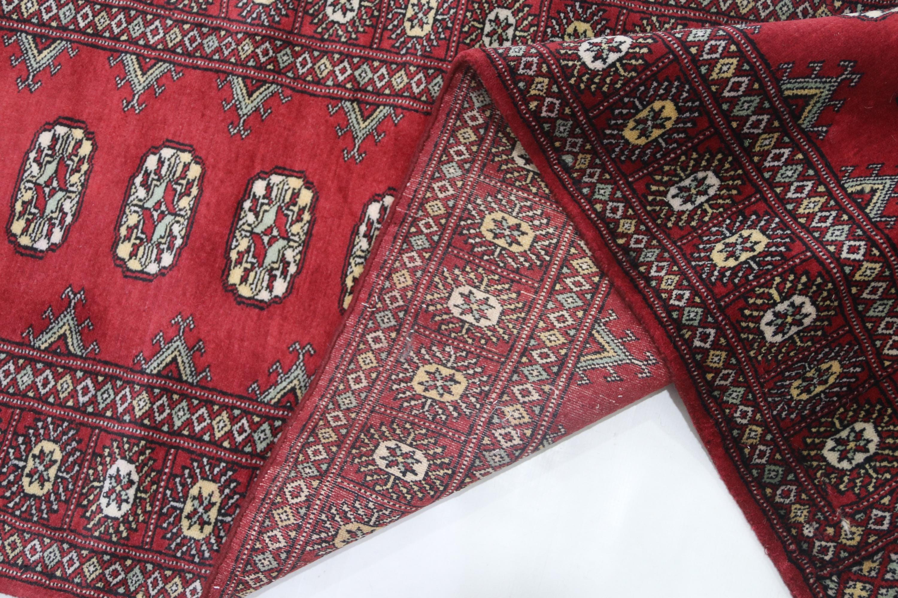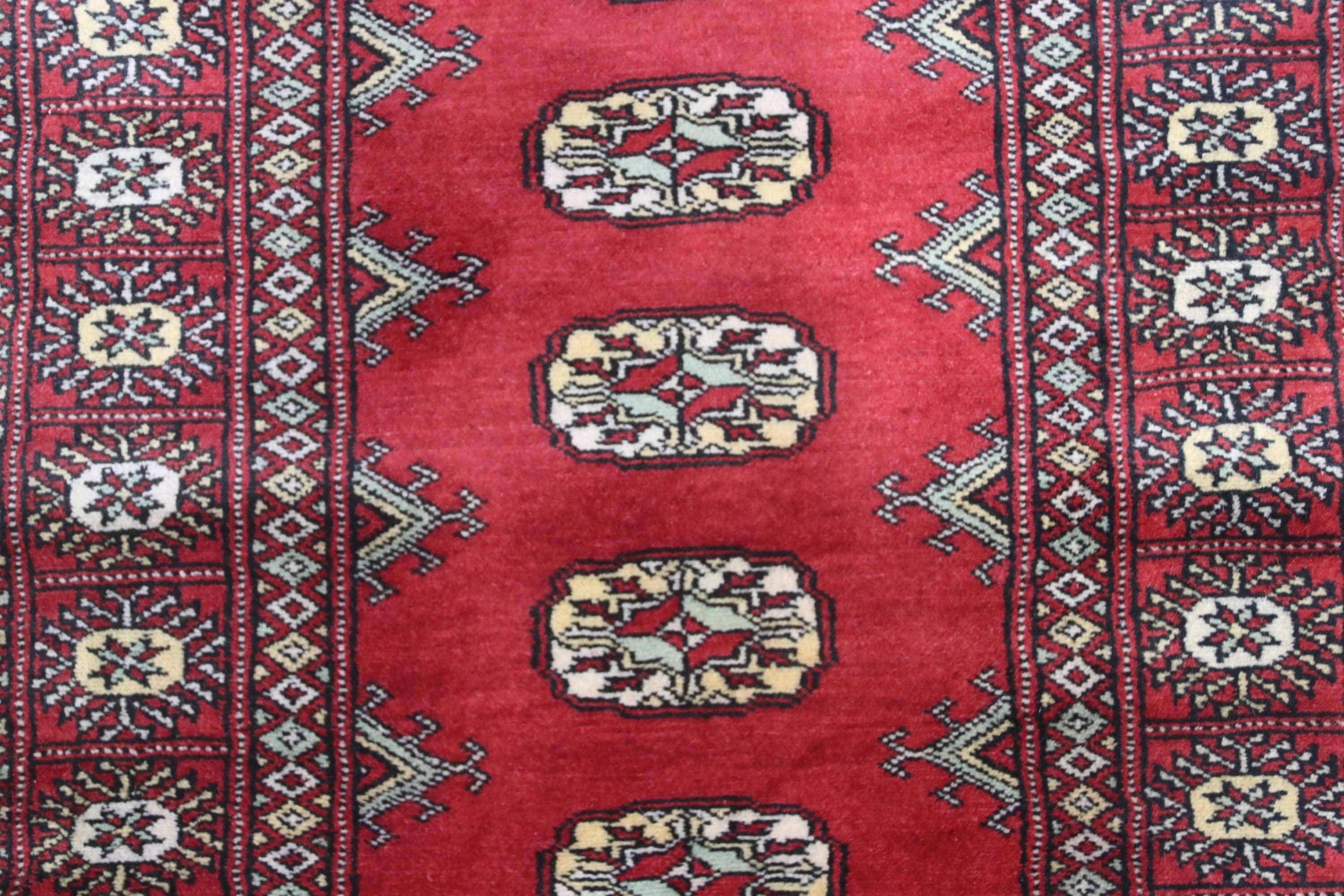 2.7 X 12.0 ft large Mori Bokhara rug, handmade veg dyes Cotton and Wool Rug, Pakhtaun Tribal rug in Red - Rugs for Living Room