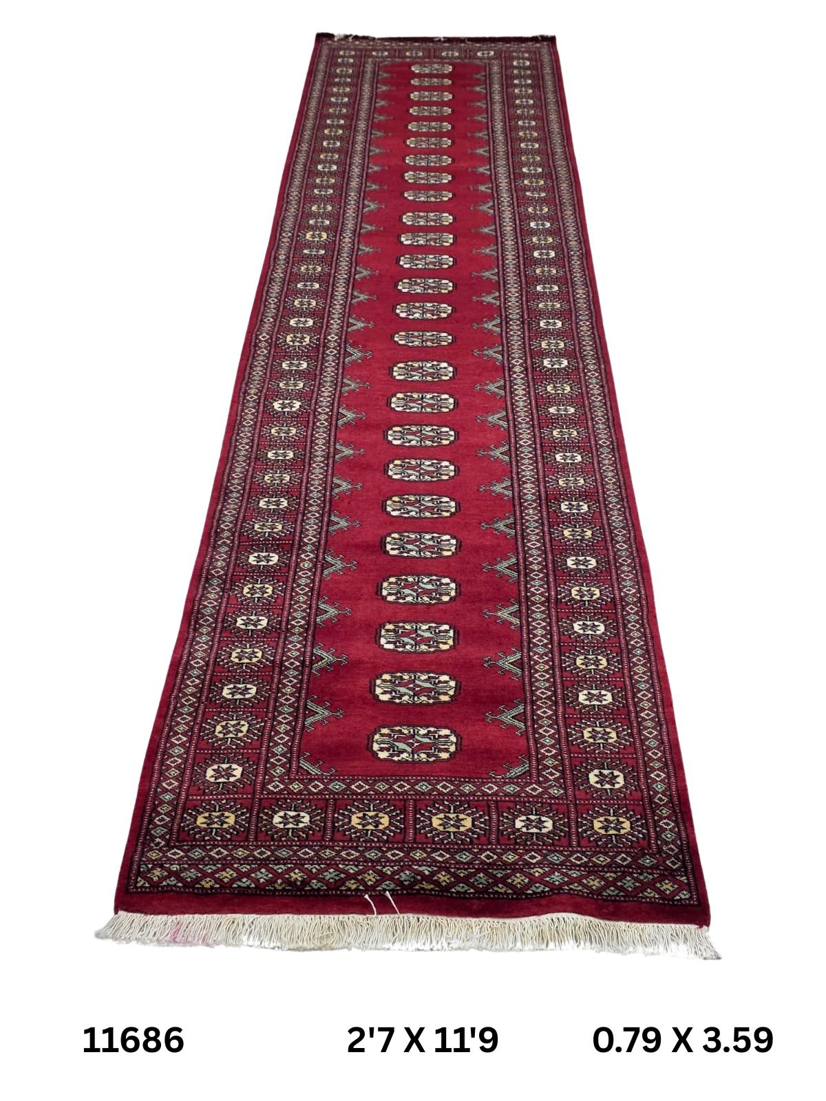 2.7 X 11.9 ft large Mori Bokhara rug, handmade veg dyes Cotton and Wool Rug, Pakhtaun Tribal rug in Red - Rugs for Living Room