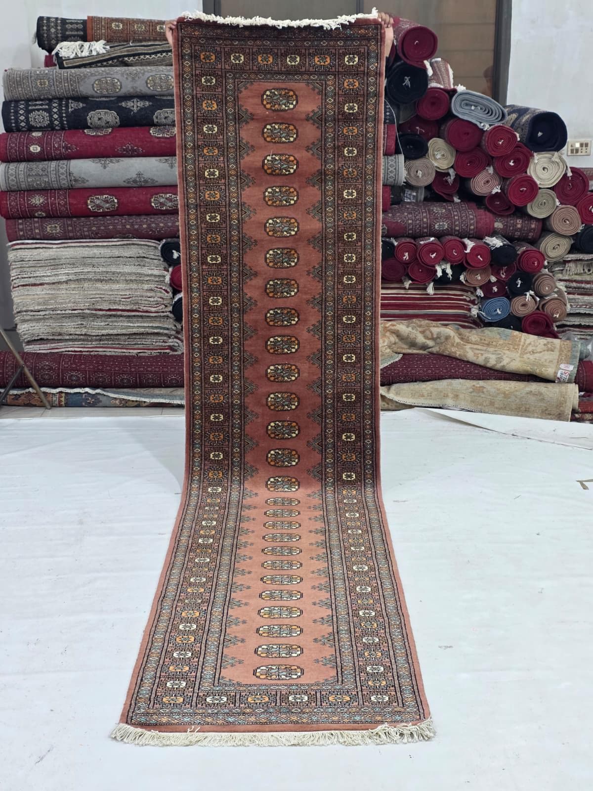 2.7 X 10.5 ft large Mori Bokhara rug, handmade veg dyes Cotton and Wool Rug, Pakhtaun Tribal rug in Copper - Rugs for Living Room